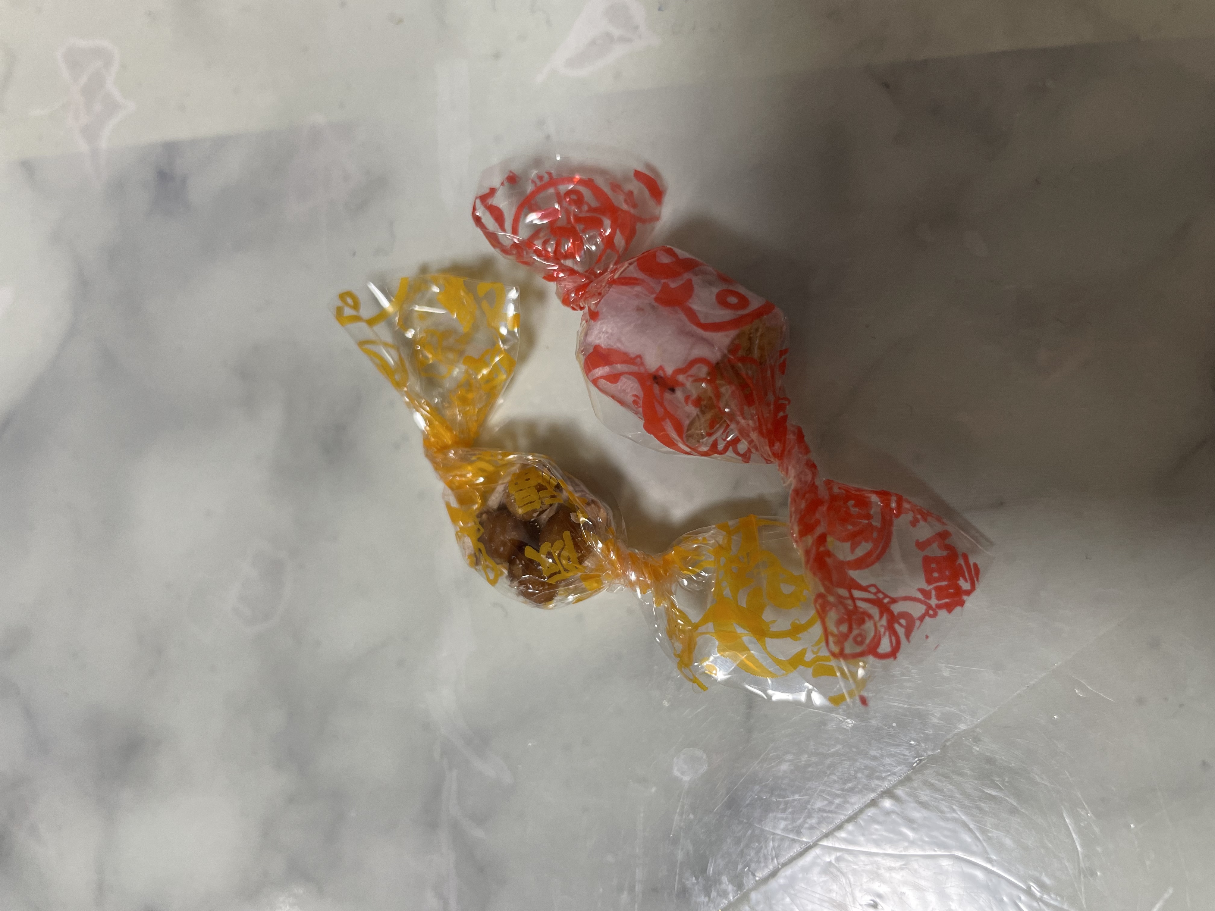 中にはキャンディー包みされた三種類の「かりんぽい」が。