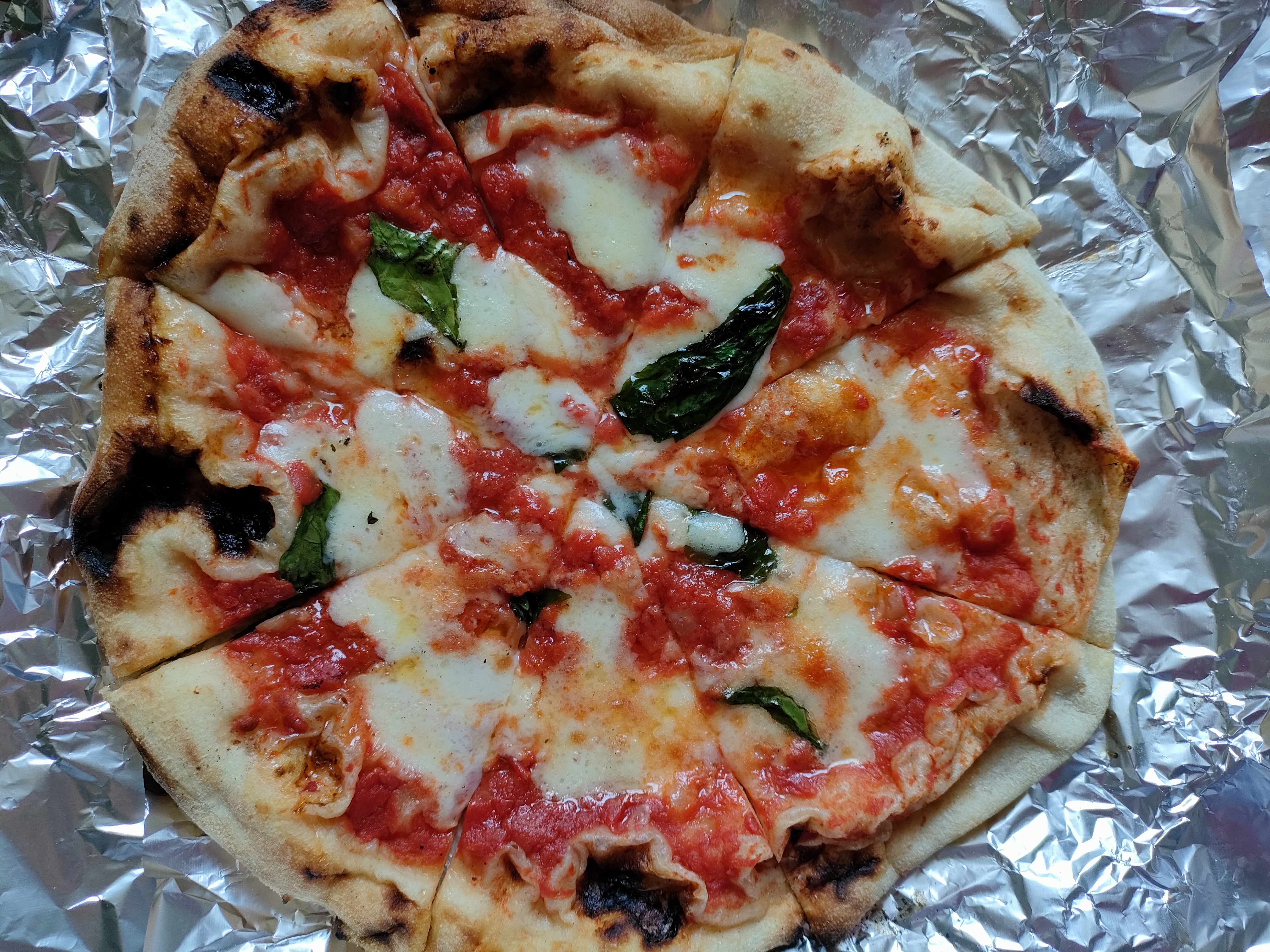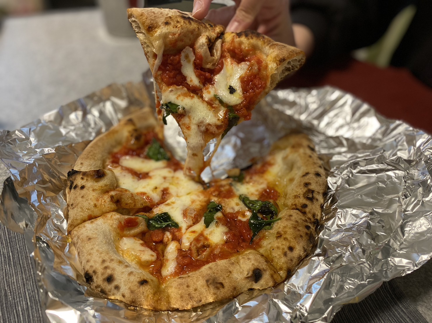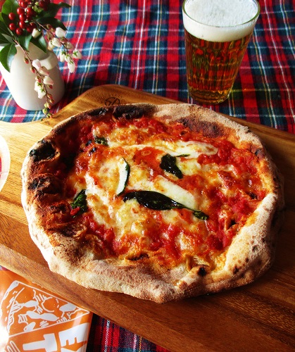 ピザ生地の端に焦げ目があるからこそ楽しめる窯焼きのピザ。