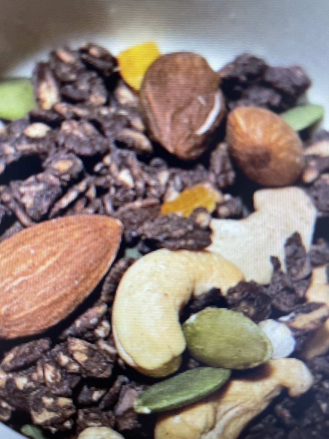 見た目からチョコの雰囲気が感じられ、カシューナッツ、アーモンドかぼちゃの種がごろっと入っていて嬉しいです。