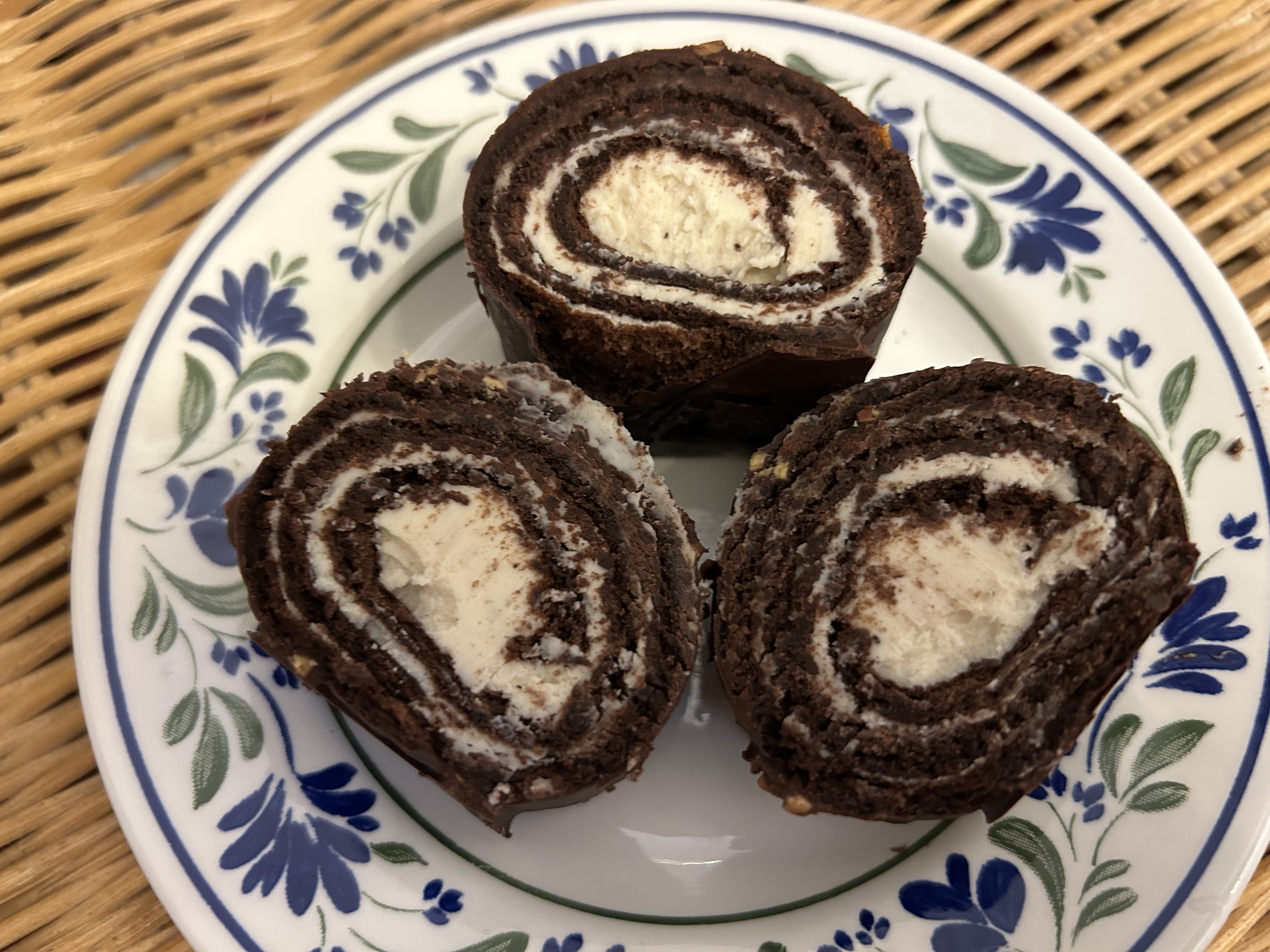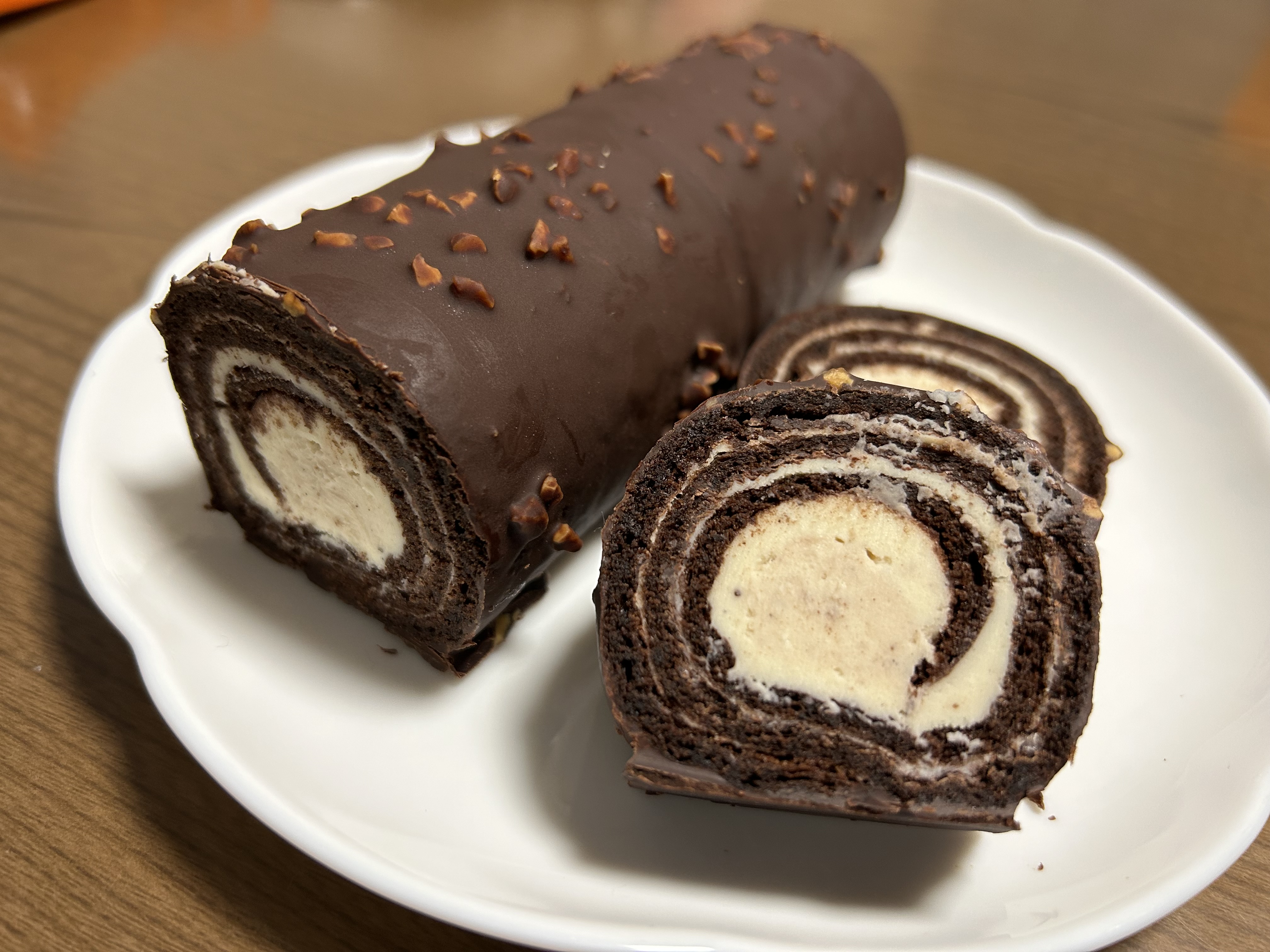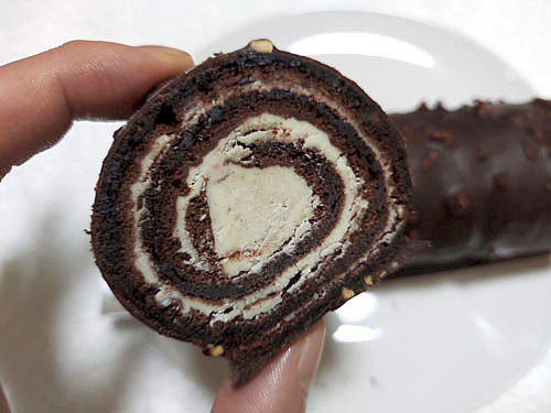 断面はココア部分と白いチョコ部分がくるくると渦巻のようにきれいな模様になっていました。