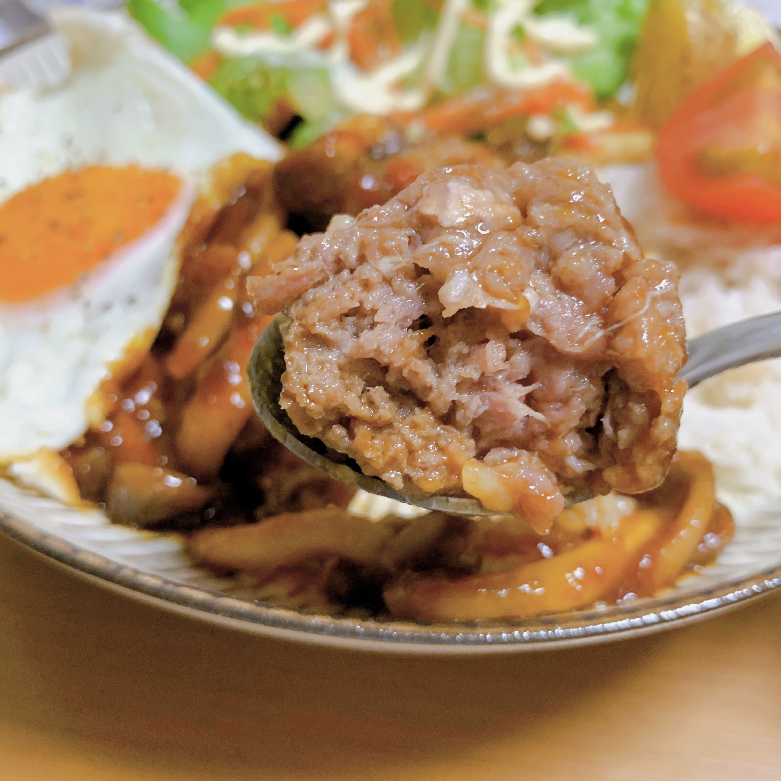 粗挽きなんだけど、お肉同士がしっかり詰まっているからか、なんだかきめ細かくも感じるお肉。