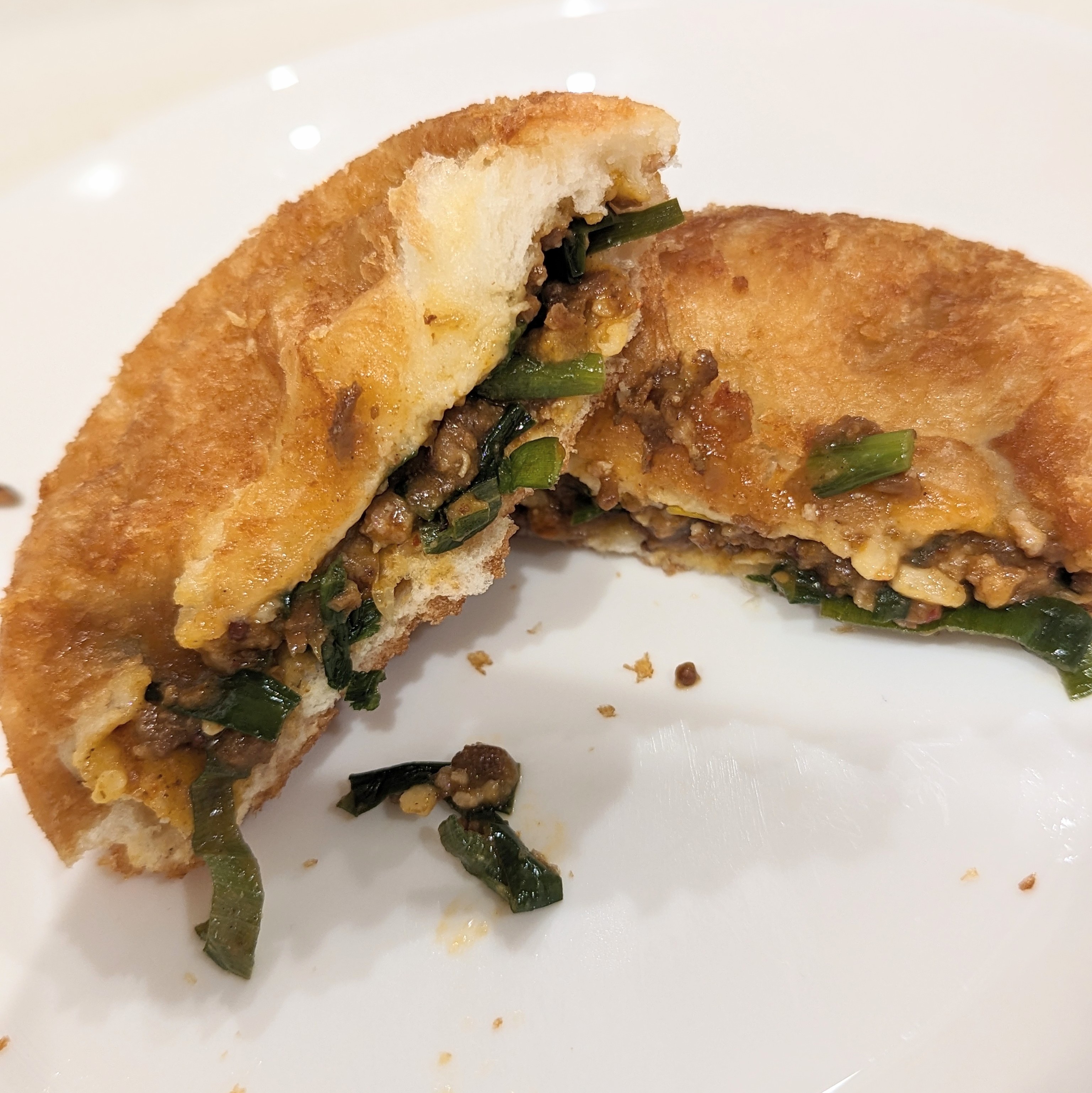 ピリ辛ミンチと中華風の香味が際立つカレーパン。エキゾチックなスパイスと繊細な香りが融合し、口の中に残る辛味がクセになる味。中華風味が新鮮な味わい。