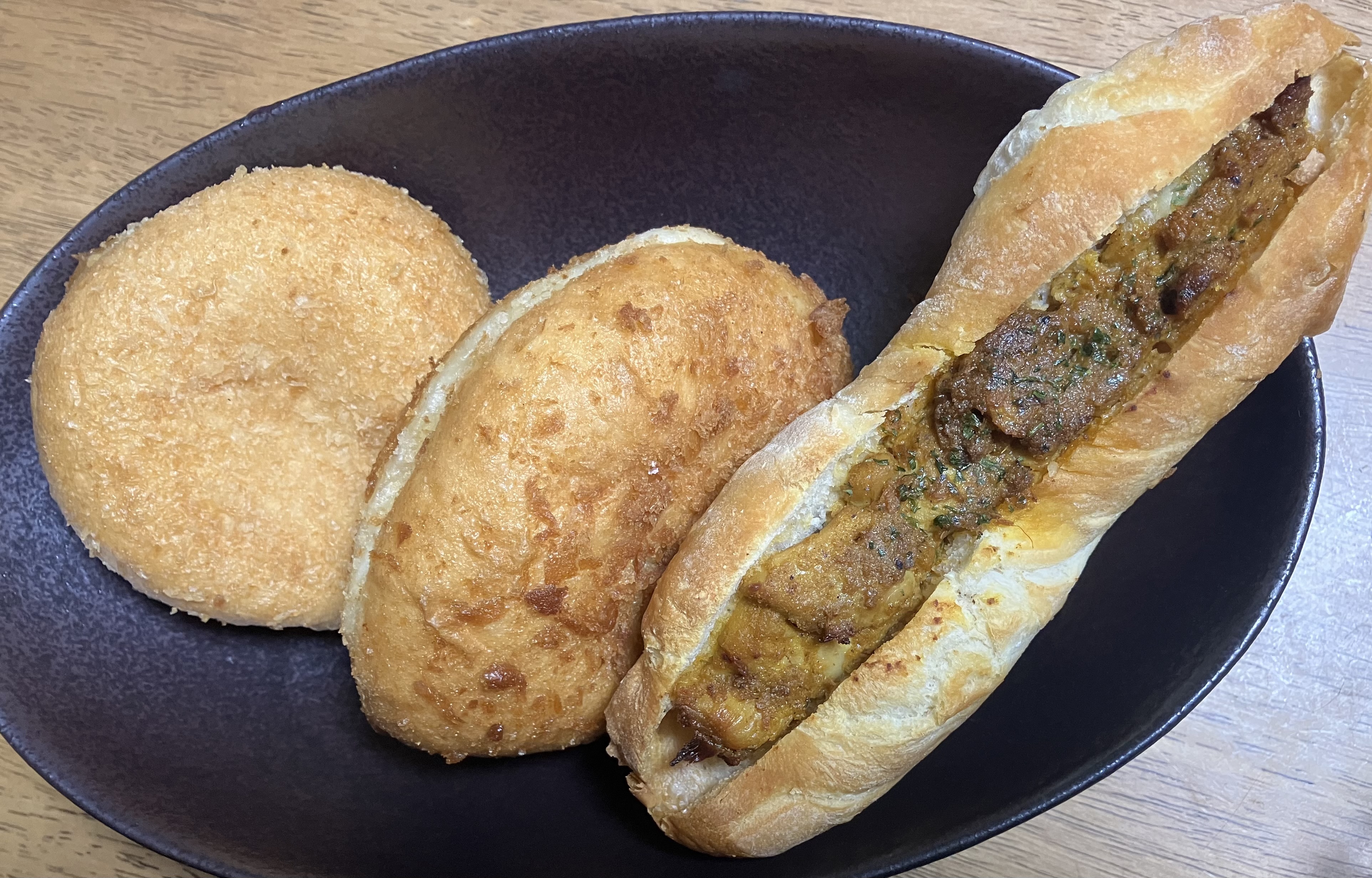 牛タン入りの贅沢な肉ゴロゴロカレーパン。