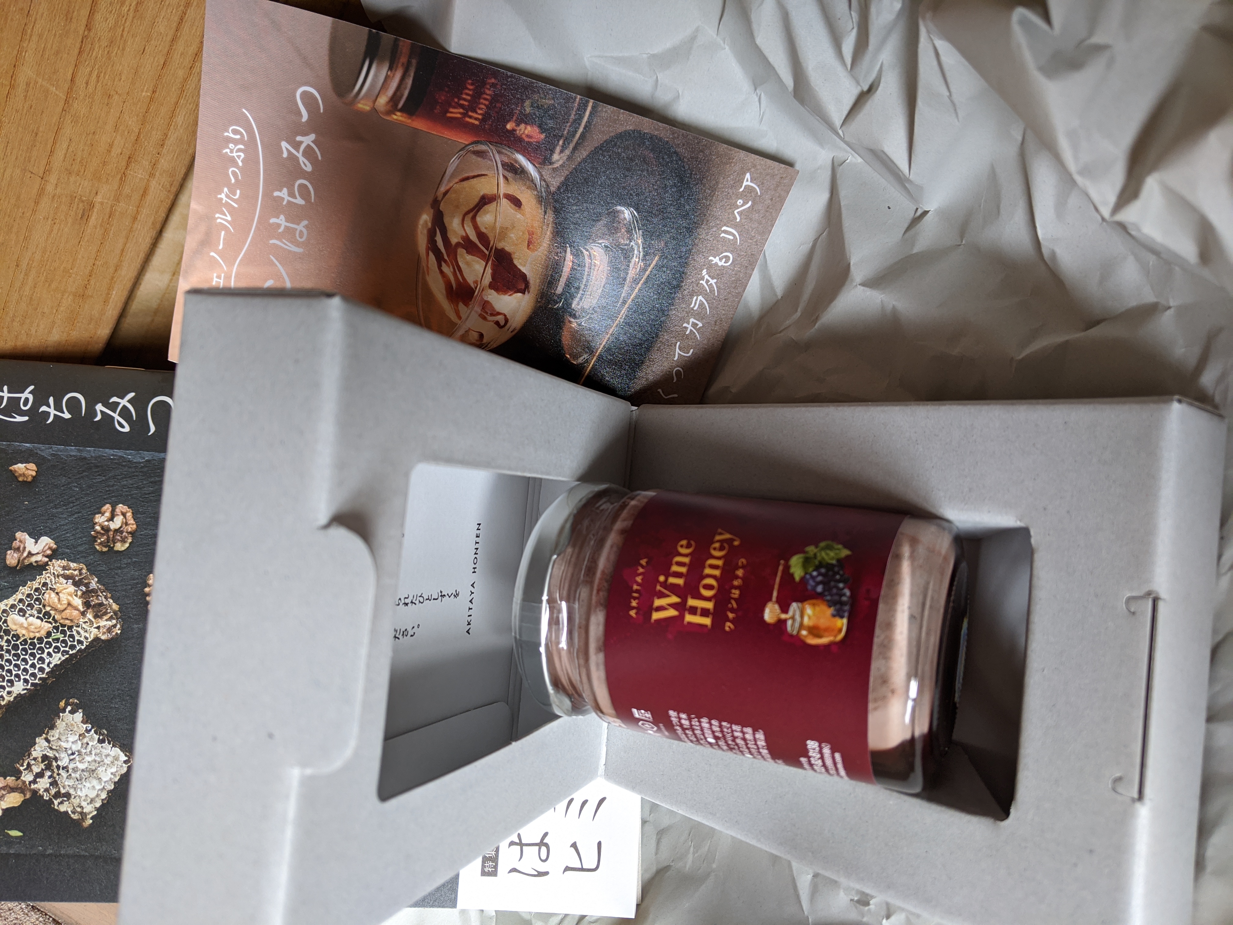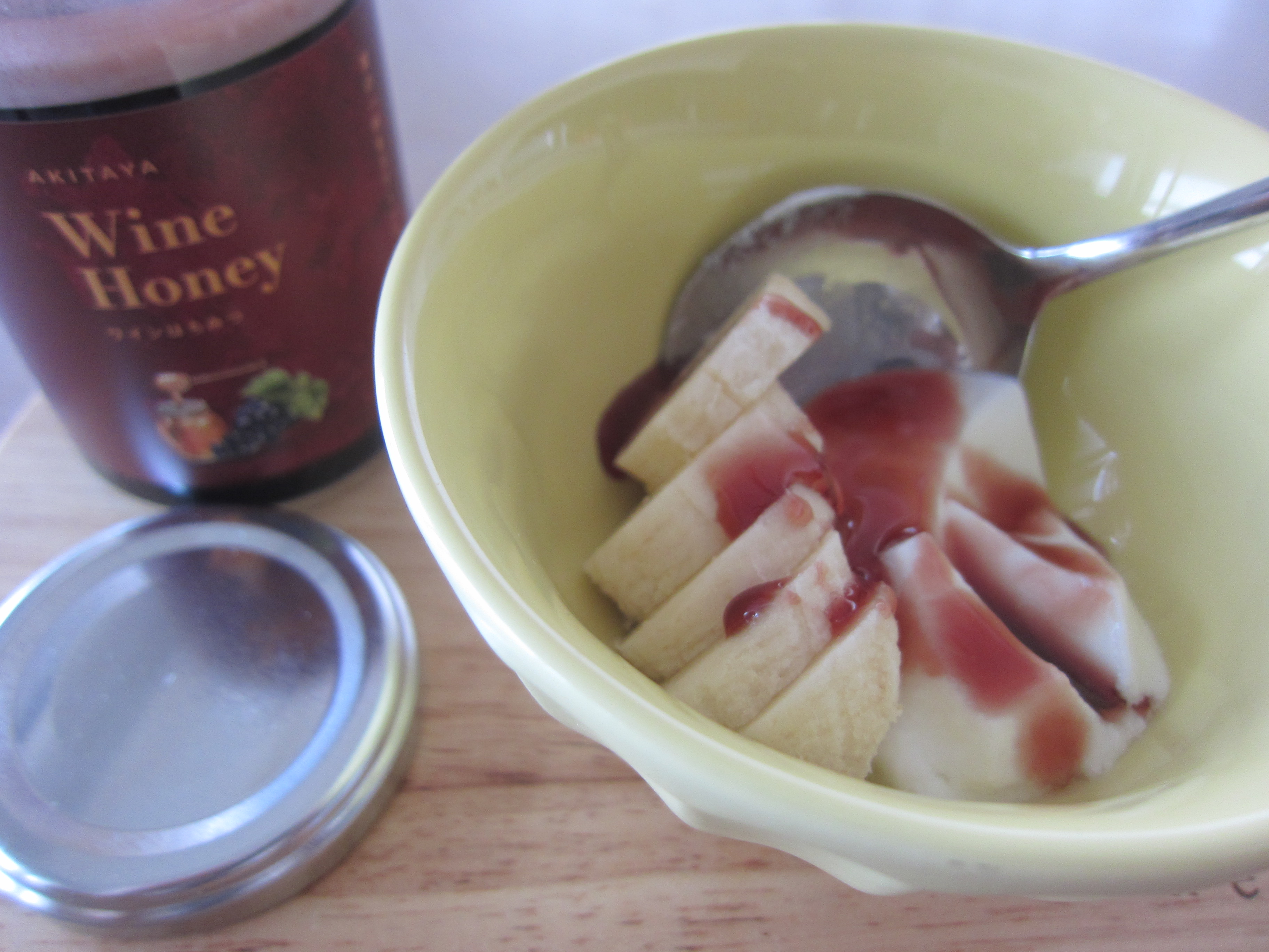 スプーン1杯でブドウ1房分のポリフェノールを含んだ「ワインはちみつ」です。果実感のあるブルガリア産チェリーはちみつに、ワイン濃縮液を加えた濃厚な甘みと、ワインの芳醇な香りが一緒に楽しめます。毎日の栄養バランスを気をつけている人にもピッタリで、寝る前の一杯や朝食のヨーグルトにかけて食べるのもオススメです。気になるアルコール量はしょうゆ小さじ1杯に含まれるアルコール度数と同程度です。