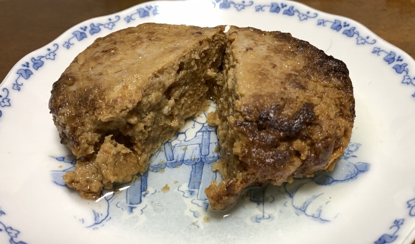 保存食としても利用できるよう作られているため若干塩味が強いですが、お肉と少量のつなぎ(玉ねぎ、鶏卵、パン粉)しか入っていないため、肉感溢れるジューシーなハンバーグとなっております。