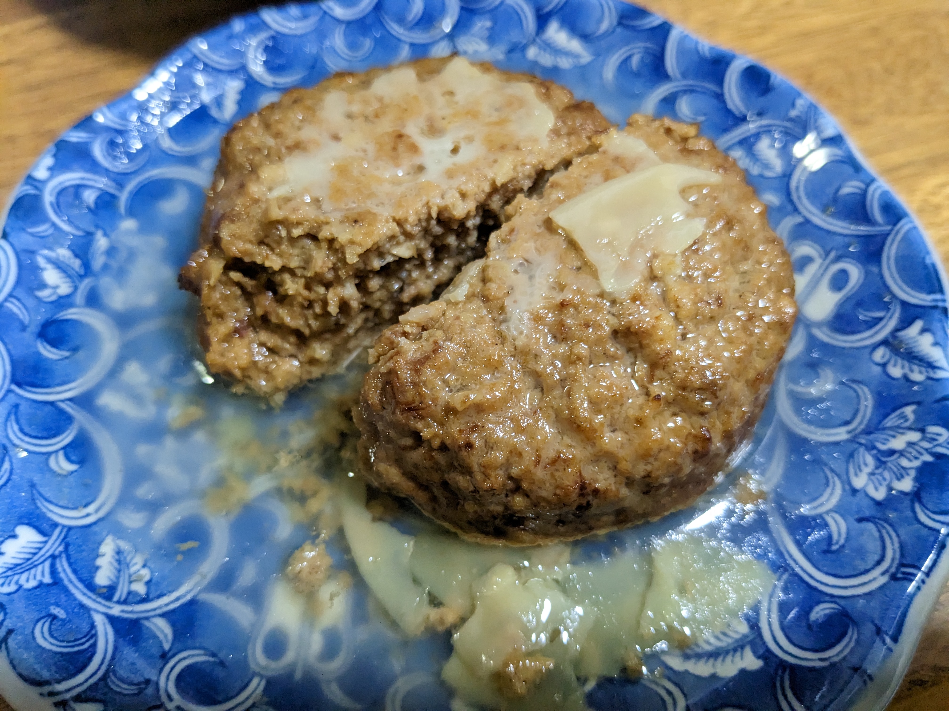 ハンバーグ自体がジューシーなため、お皿に出す時缶のオイルは捨てちゃっていいかな!好みにもよりますが!