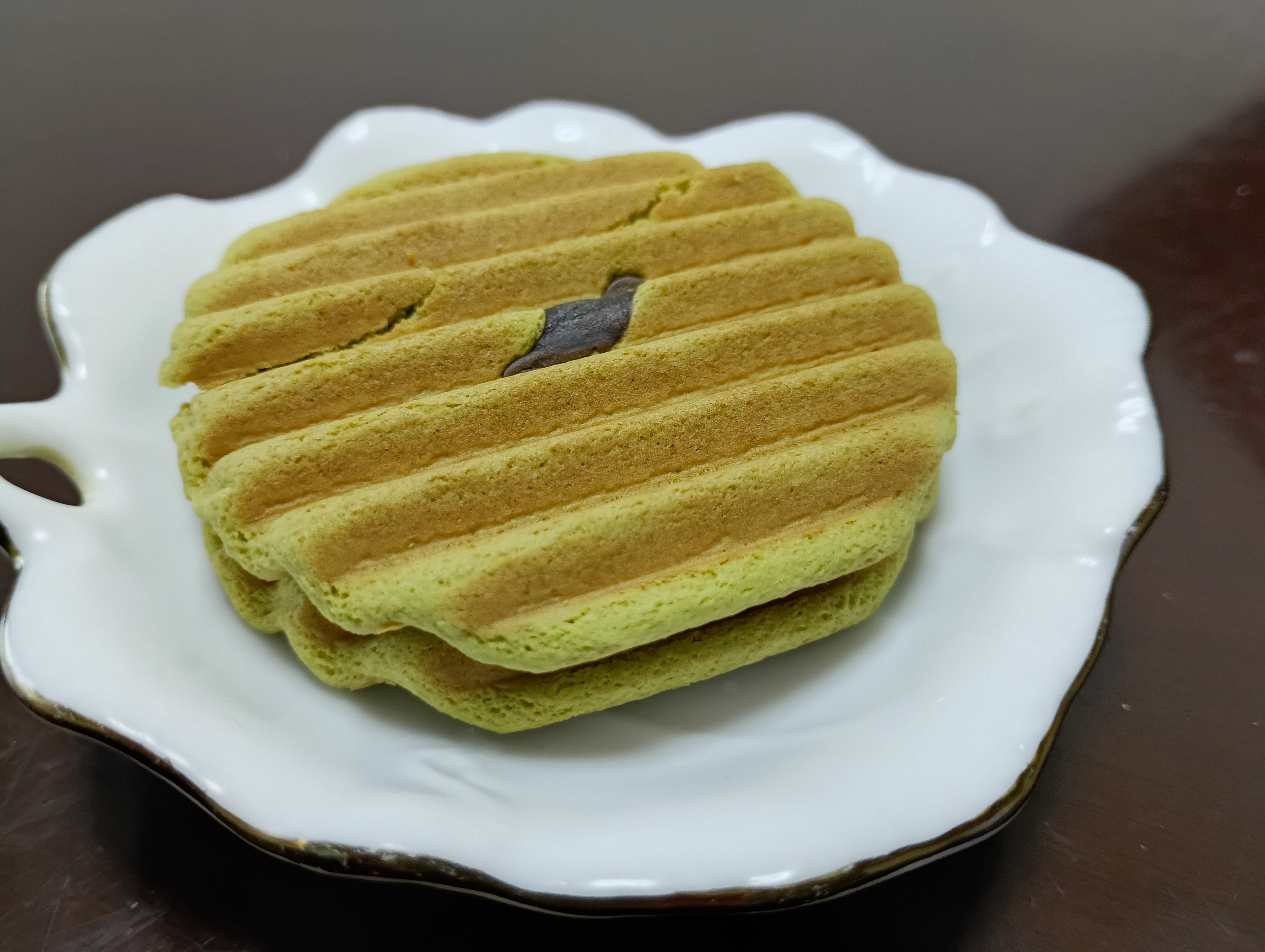 「宇治抹茶ヴァッフェル」は波を思わせるようなクッキーに薄く焼き色がついていて、その形から思わず手に取ってみたくなるお菓子です。袋を開けたらバニラのような香りを感じ、しかし味わってみるとザクッとした食感に抹茶の香りとほろ苦さが口の中に広がりました。特徴的な形状で心地よい食感が増しています。中のクリームは薄めで、食感を邪魔しませんが、クッキーのほろ苦さをフォローするように優しい甘さを添えてくれました。甘さが控えめなので甘いものが苦手でも美味しく味わえそうです。個人的にはこのセットの中で一番好きな逸品です。