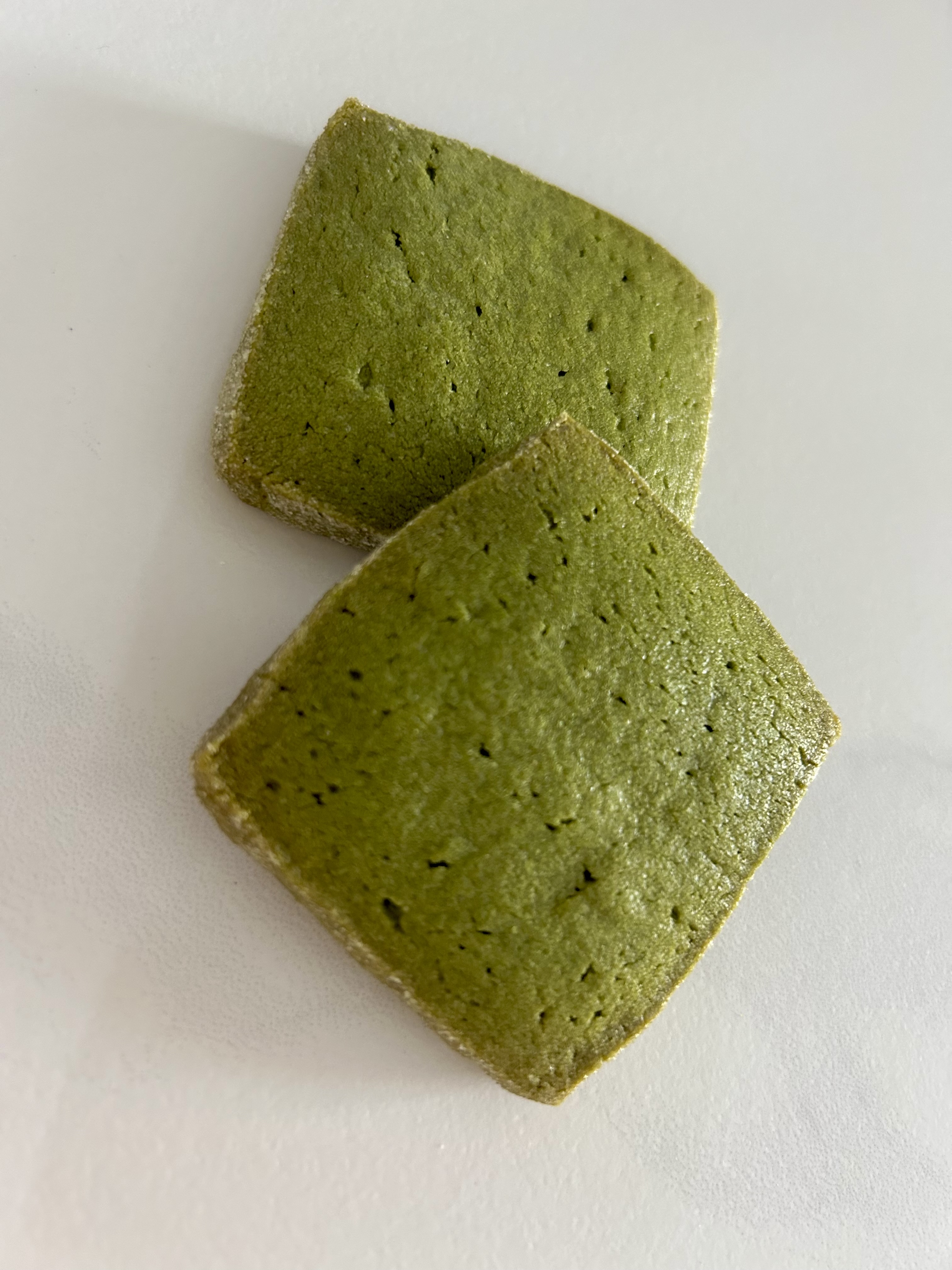 「宇治抹茶クッキー」は端正な四角形で、見ただけでそのきめ細かさがわかります。色もこの箱の中で一番わかりやすく美しい抹茶の緑でした。歯応えもサクッと弾ける割には口の中で優しく解け、抹茶の程よい苦味と縁についた砂糖と生地自体の甘味が広がります。これぞ抹茶クッキー、クセになる甘さとサクッとした食感というクッキーの良さがありつつその中に抹茶の良さである香りと苦味が溶け込んでいるお菓子です。