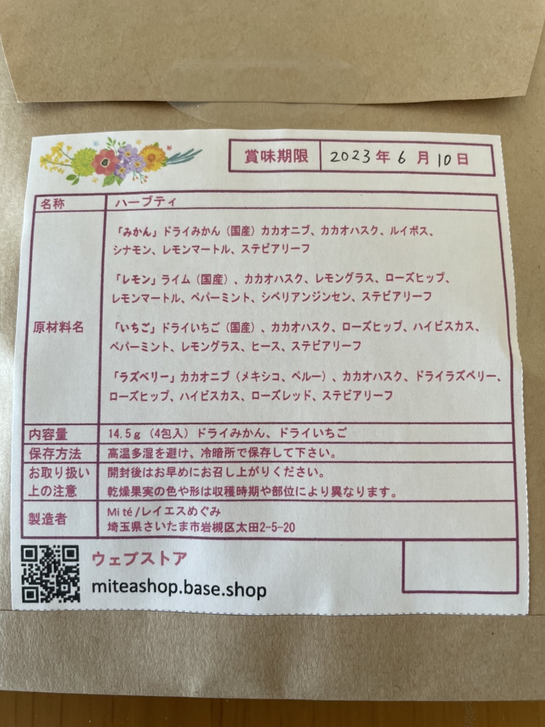 →ティーバッグの中にお花が入っているのかと思うくらい華やかで綺麗。味は意外に甘味を感じて美味しい!