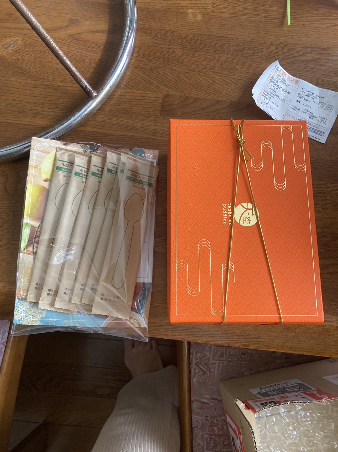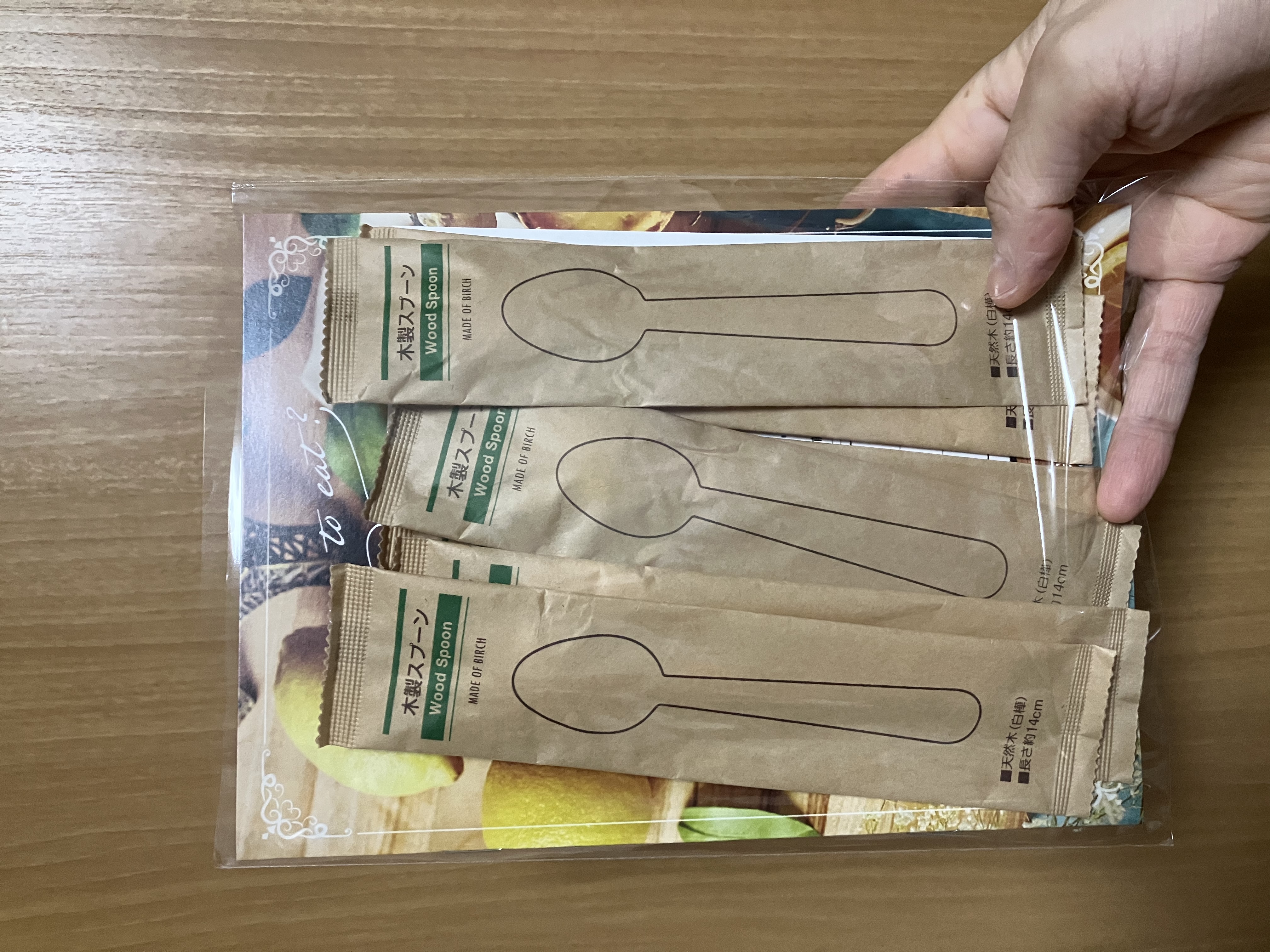 木のスプーンが付属していて、最近のプラスチッ削減問題を意識して配慮されているのかな?と思いました。オシャレで長さもあり食べる時の気分がさらに上がって良かったです!
