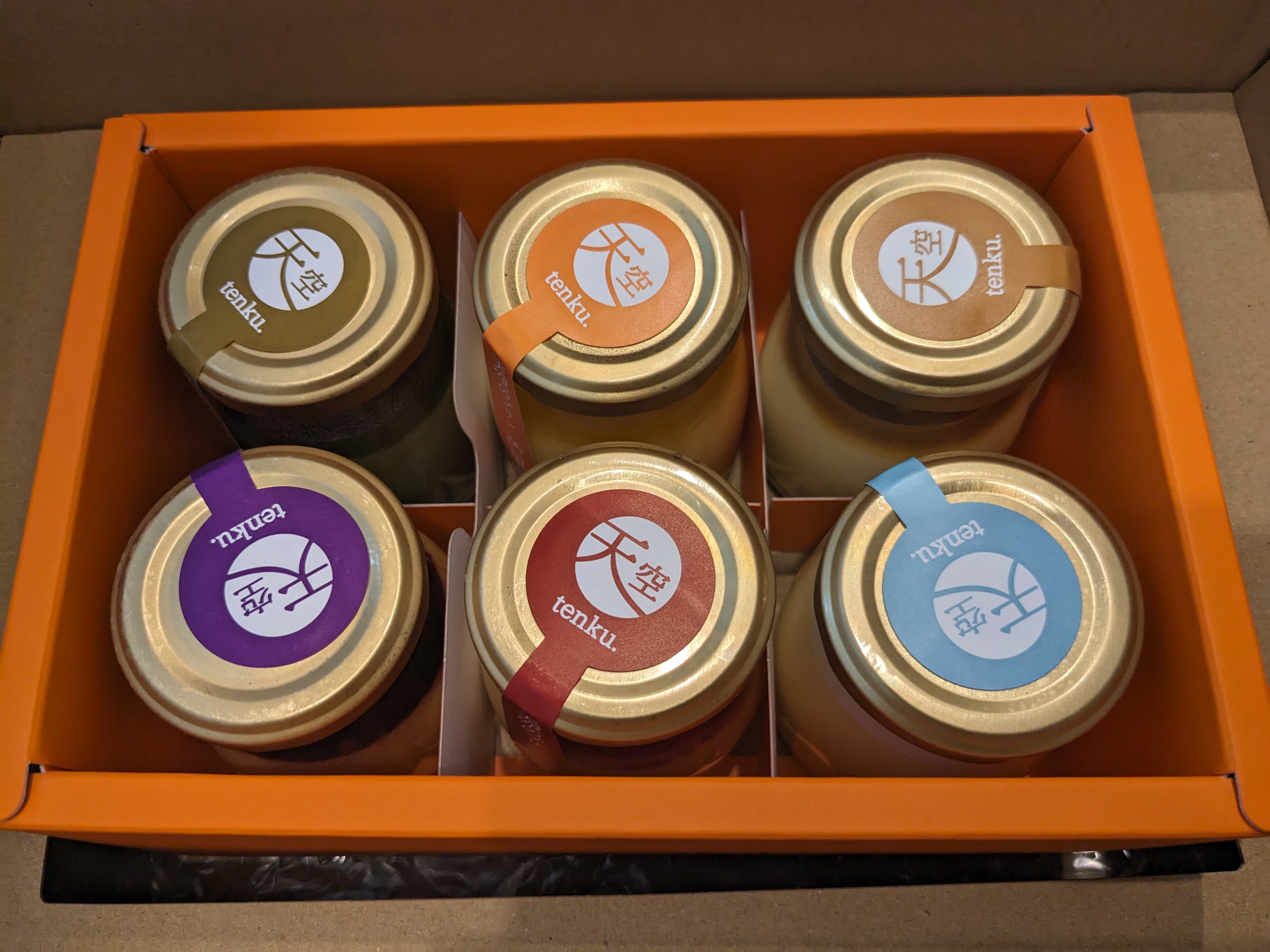 キャラメル&バニラの雅、抹茶&漉し餡の芳醇、ココナッツ&マンゴーの芒果、ラズベリー&キルシュの漿果に、濃厚なバニラ&レモン塩の潮とクリームチーズ&ブルーベリーの藍苺の大満足の6個セット。
