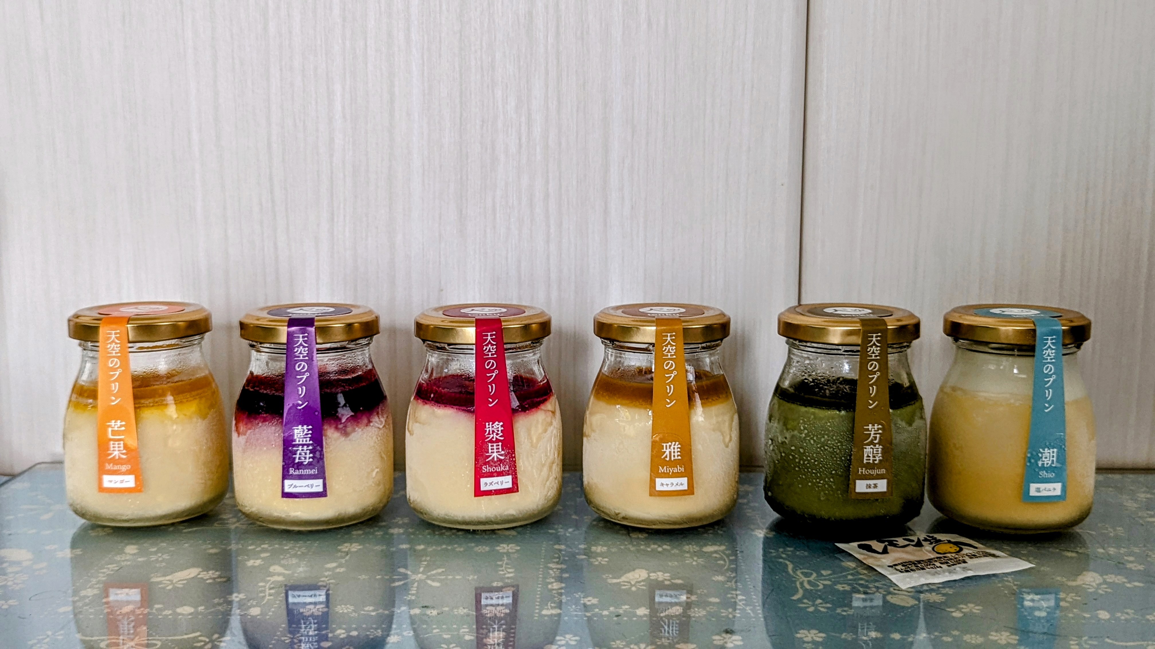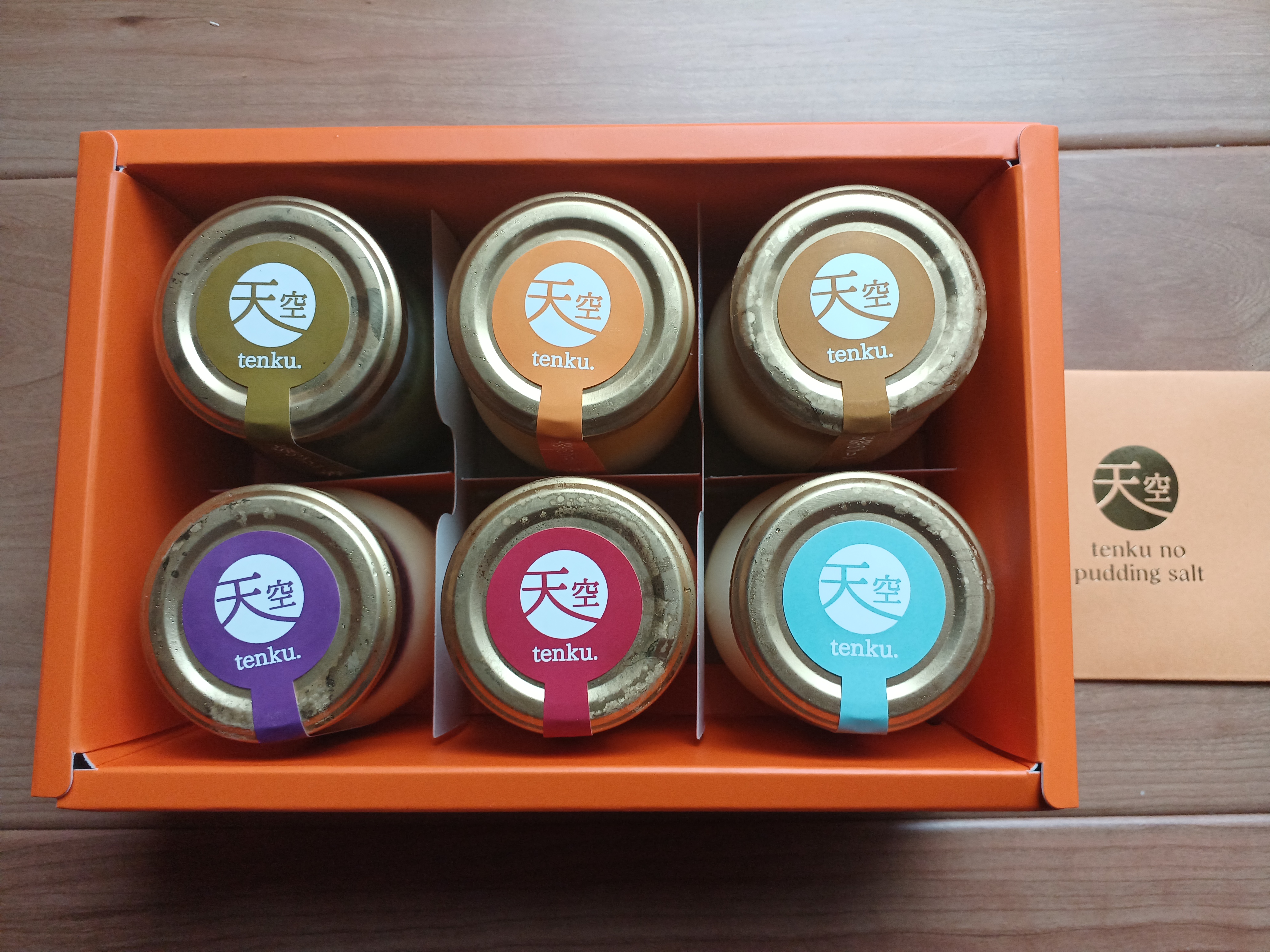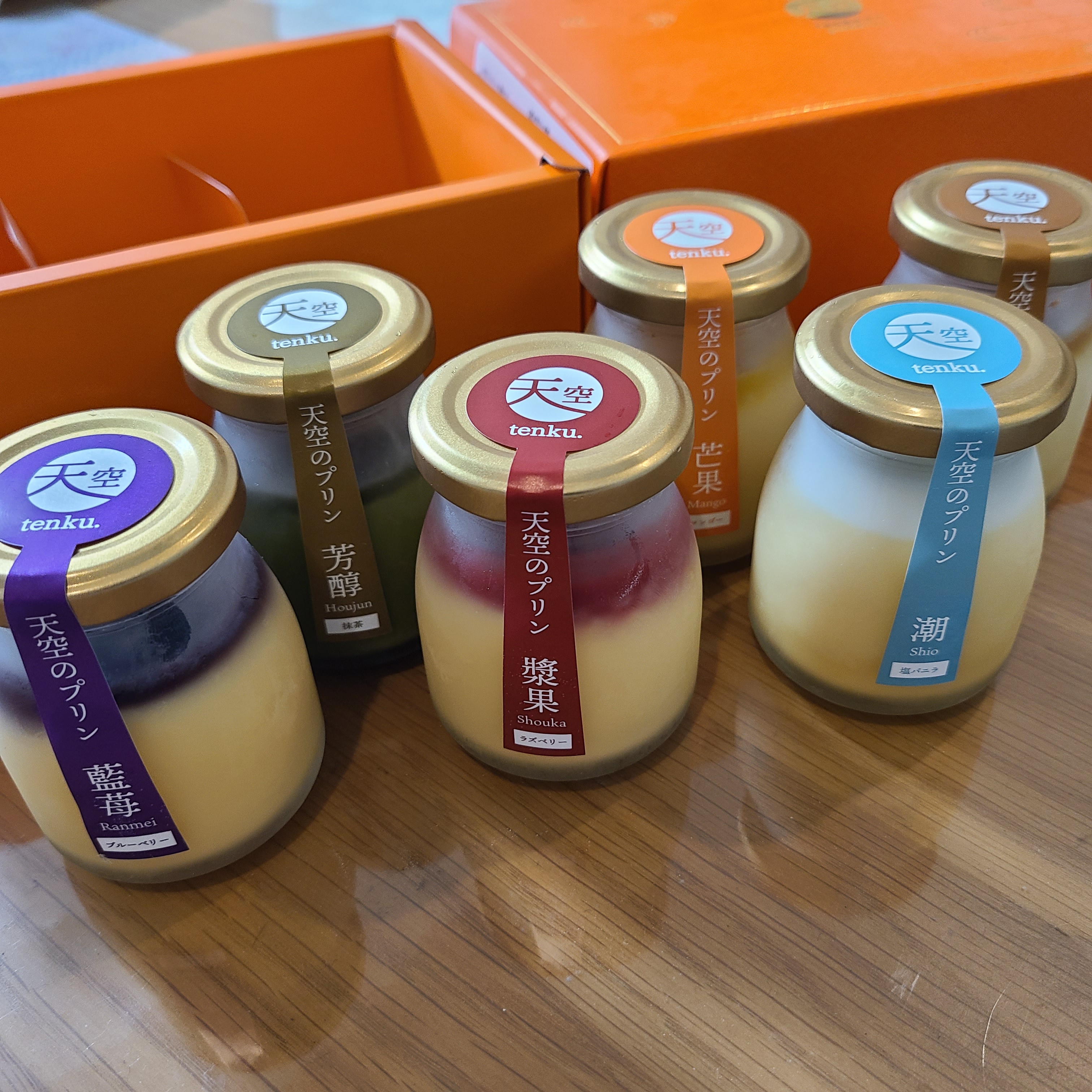 こだわり抜いた素材でパティシエが一つ一つ手作りした「プリン」セットです。キャラメルのほろ苦さ、雪塩のかすかな塩味とバニラプリンの甘味が広がる「雅」、バニラ香る生地にたっぷりのホイップクリームを合わせた「潮(塩バニラ)」、ブルーベリーソースの酸味と風味が生地を引き立たせる「藍苺(ブルーベリー)」、静岡の茶園で育てられた抹茶の芳醇な香りと生クリームの味わい「芳醇(抹茶)」、ココナッツのプリンに完熟マンゴーとパッションフルーツのゼリーを合わせた「芒果(マンゴー)」、ミルクベースの濃厚でクリーミーなプリンに甘酸っぱいラズベリー「漿果(ラズベリー)」の計6種。メディアでも多数紹介された商品なので、自宅用だけでなく贈り物にもおすすめです。