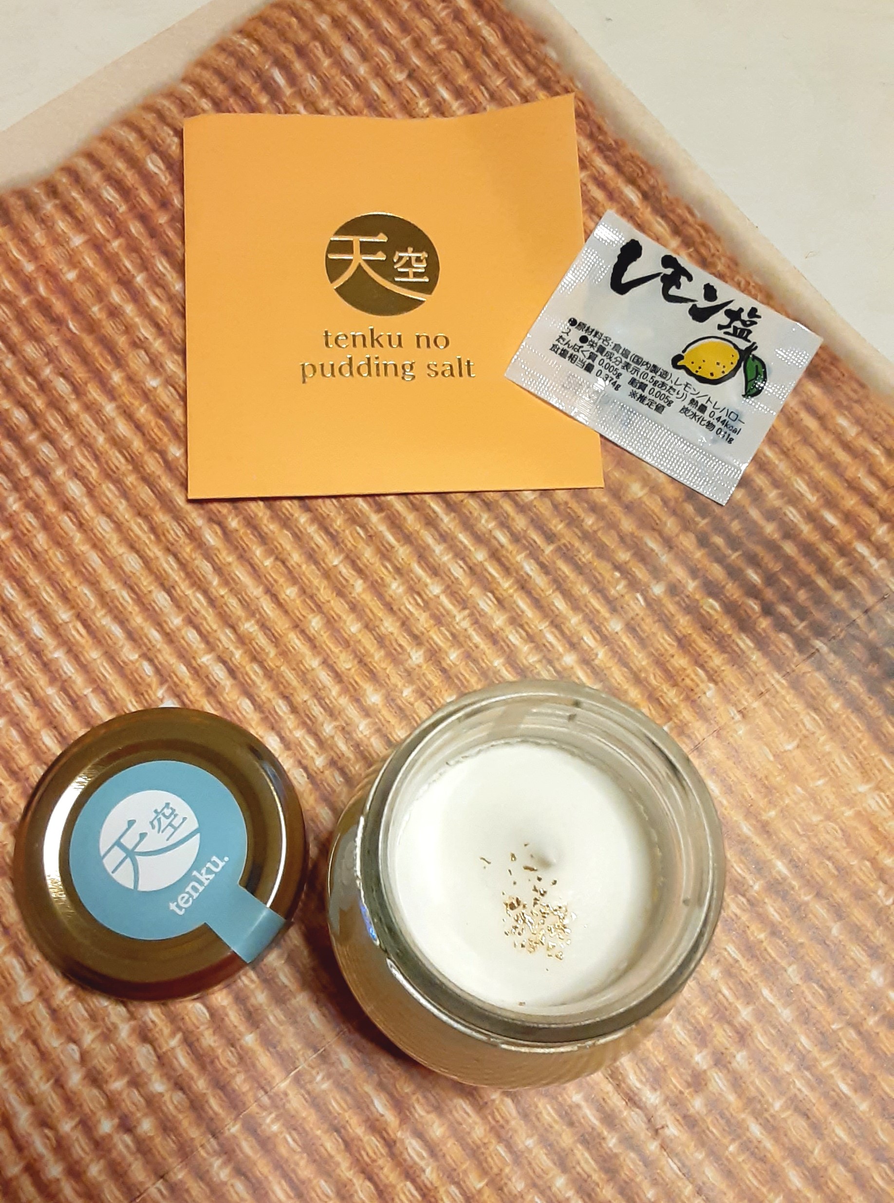塩バニラは上にのった生クリームが天空にある雲を想像させてくれます。そのままでも充分美味しいですが、付属のレモン塩をかけると塩気で甘さが引きたちます。