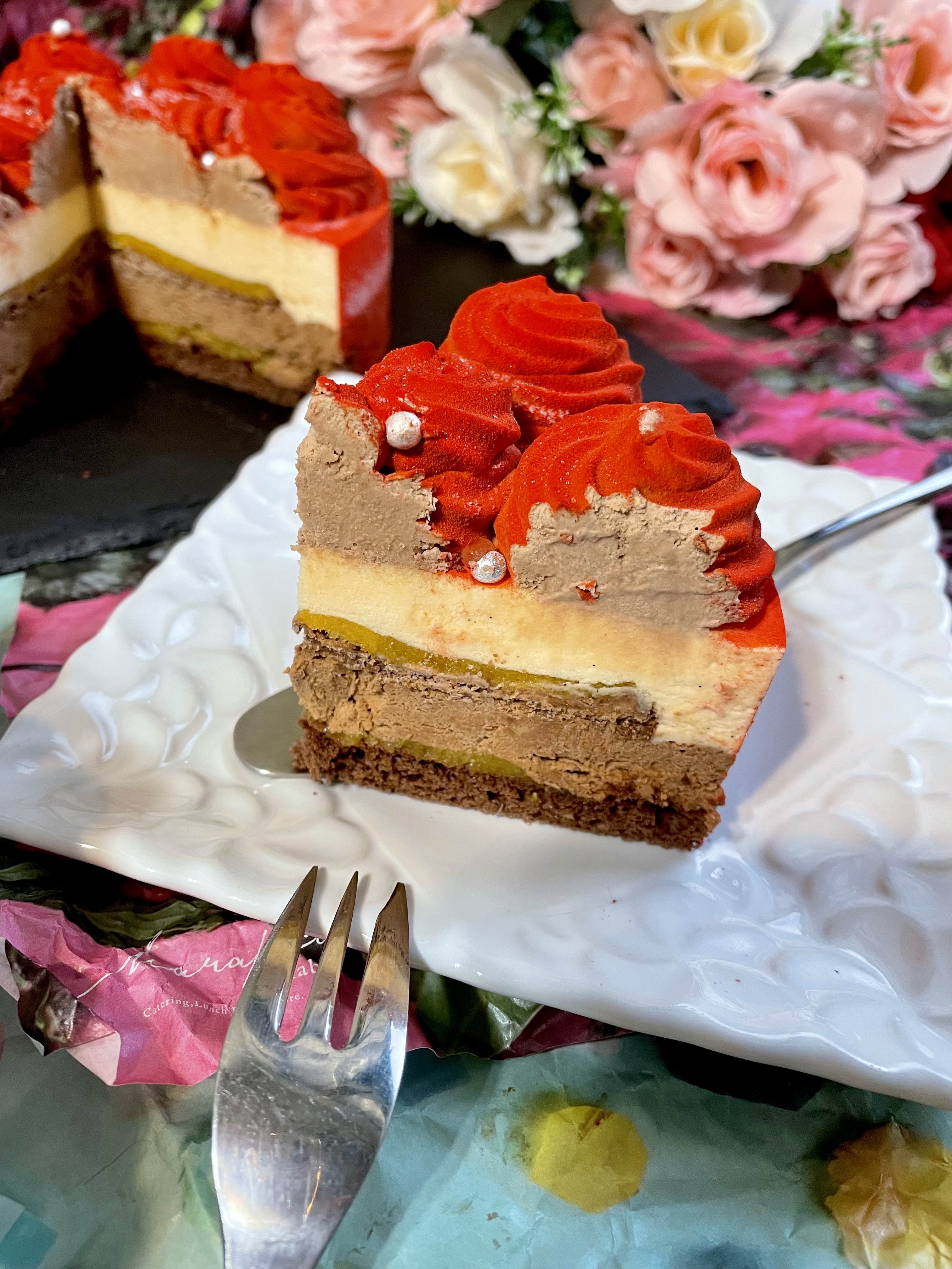 5層が一つになった時、どの味も他の味に打ち消されることが無く、むしろ、それぞれの良い部分を引き立たせられていると思いました。一層一層が、それぞれとても美味しいので、一層ずつ食べても、二層まとめて食べても、、等ゆっくりと、層を覗き込みながら食べてみても面白いかもしれません^^
