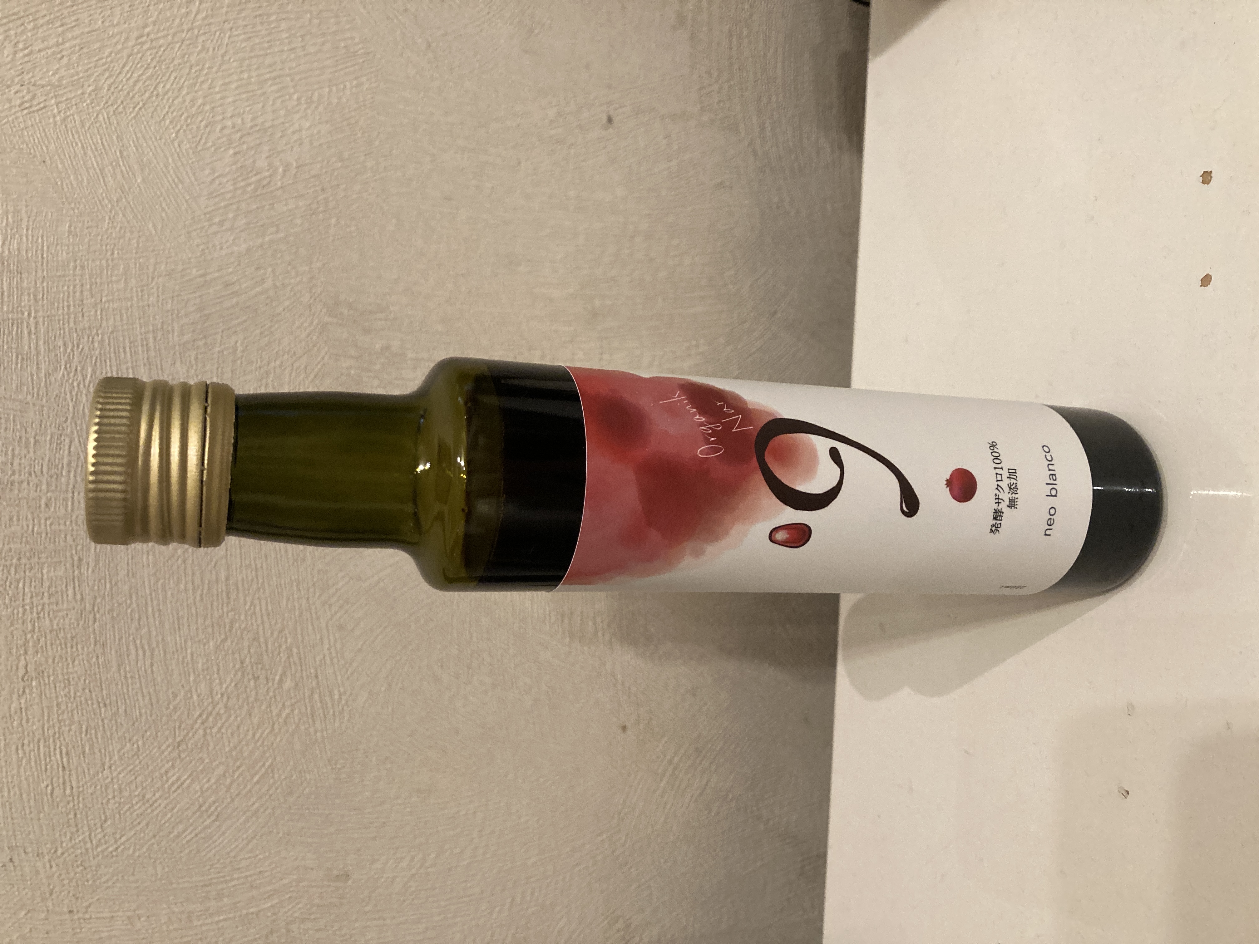 *濾過せずに丸ごとザクロ果汁100%のみを使用しているため、ワインのように底に「澱(おり)」のような濃厚なテクスチャーがある場合がございます。使用する前に瓶を傾けて中身を振ってからお使いください。