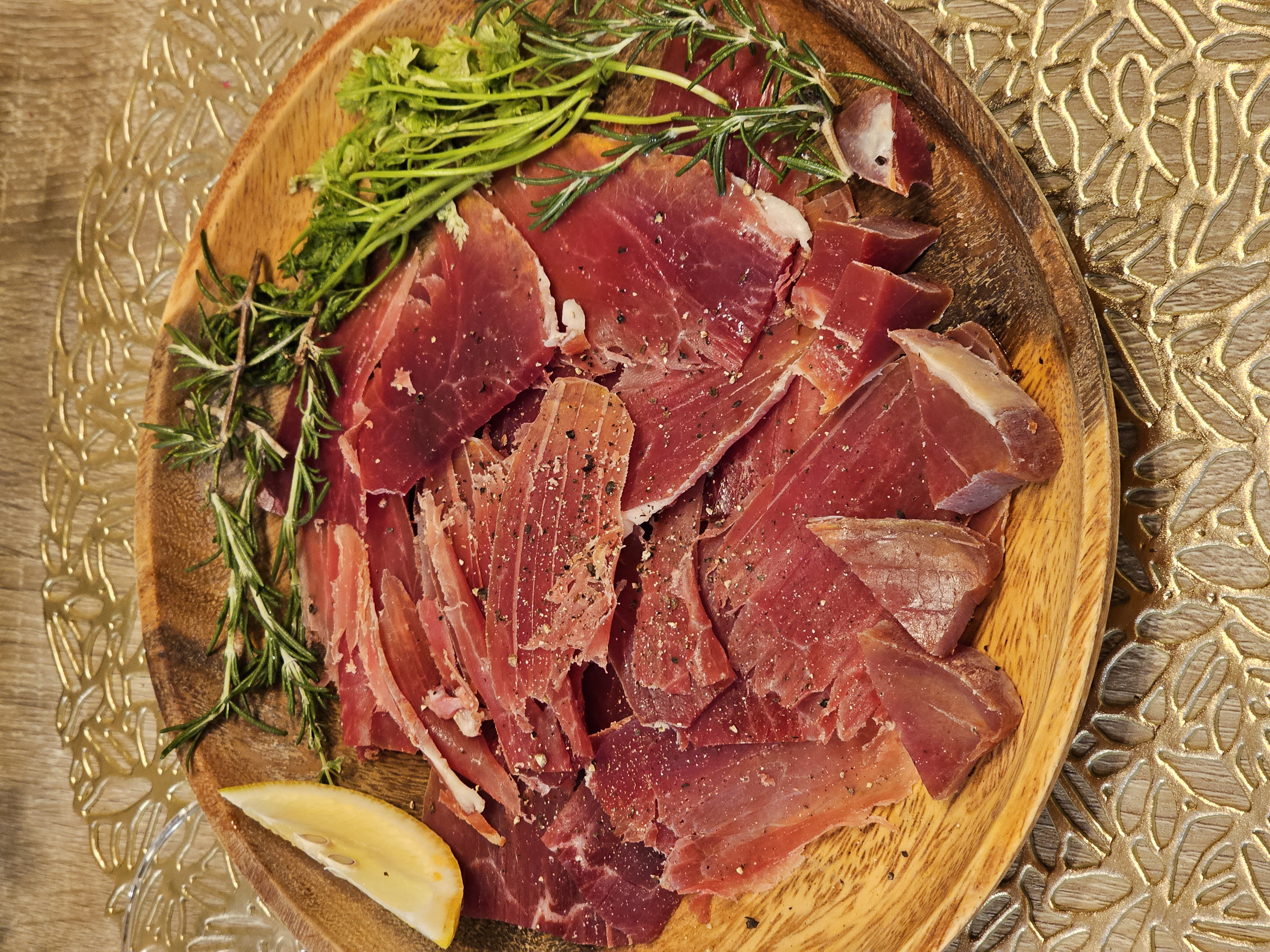 18ヶ月熟成された生肉を熟成させた「ミニ・ハモン原木(生ハム)」です。EU諸国で生産された白豚の生肉を塩漬け、乾燥、熟成して作り上げています。15ヶ月以上熟成した、レセルバ・ハモンセラーノは「グラン・レセルバ」と呼ばれ、濃厚でありながらまろやかな塩味を感じるのが特長です。280g〜350gのブロック状で届くので、必要な分だけ利用できます。切りたてのフレッシュな味を楽しむため、可能な限り薄くスライスし、一口サイズにカットするのがおすすめ。誕生日会、ギフト、家族のお祝、イベントで盛り上がること間違いなしの商品です。