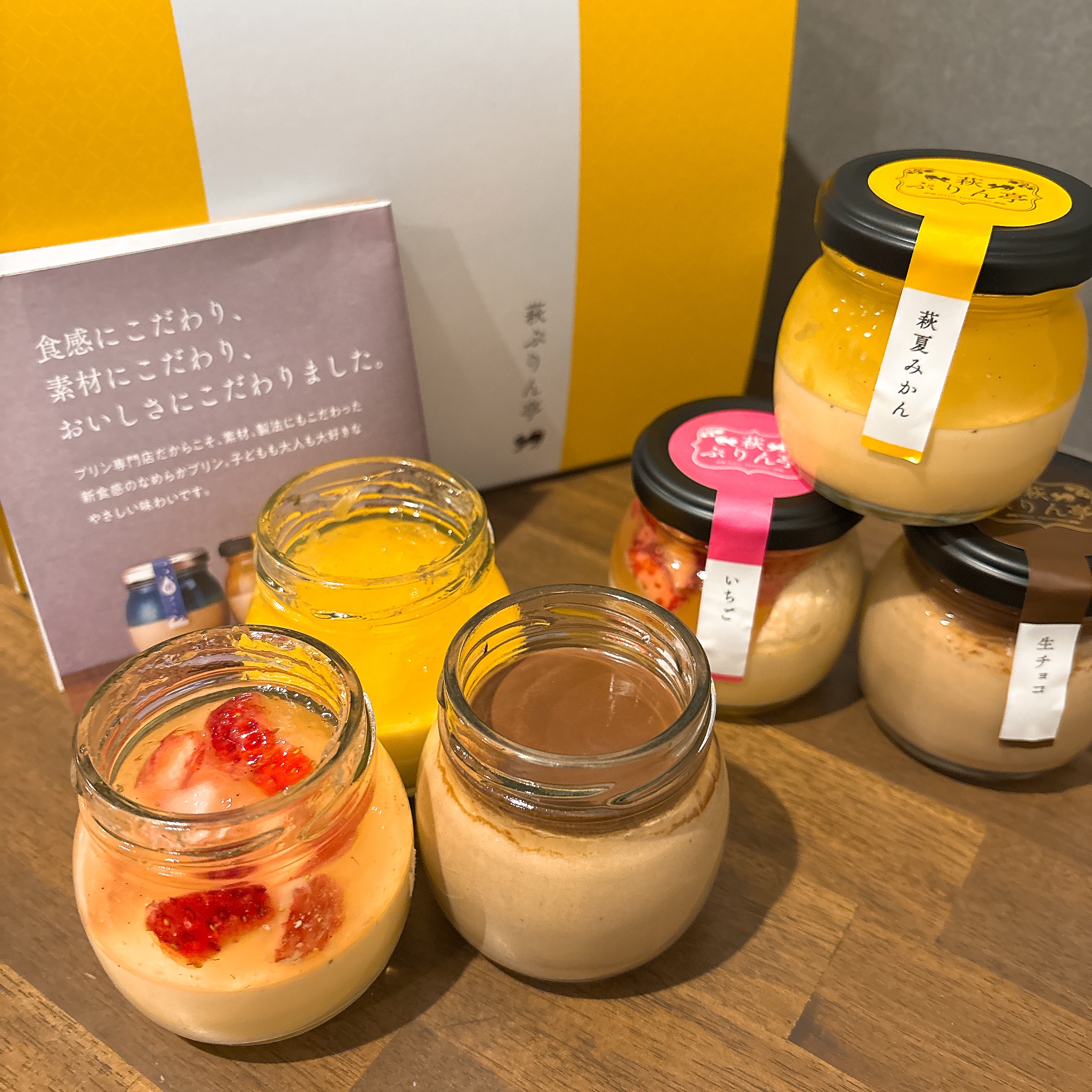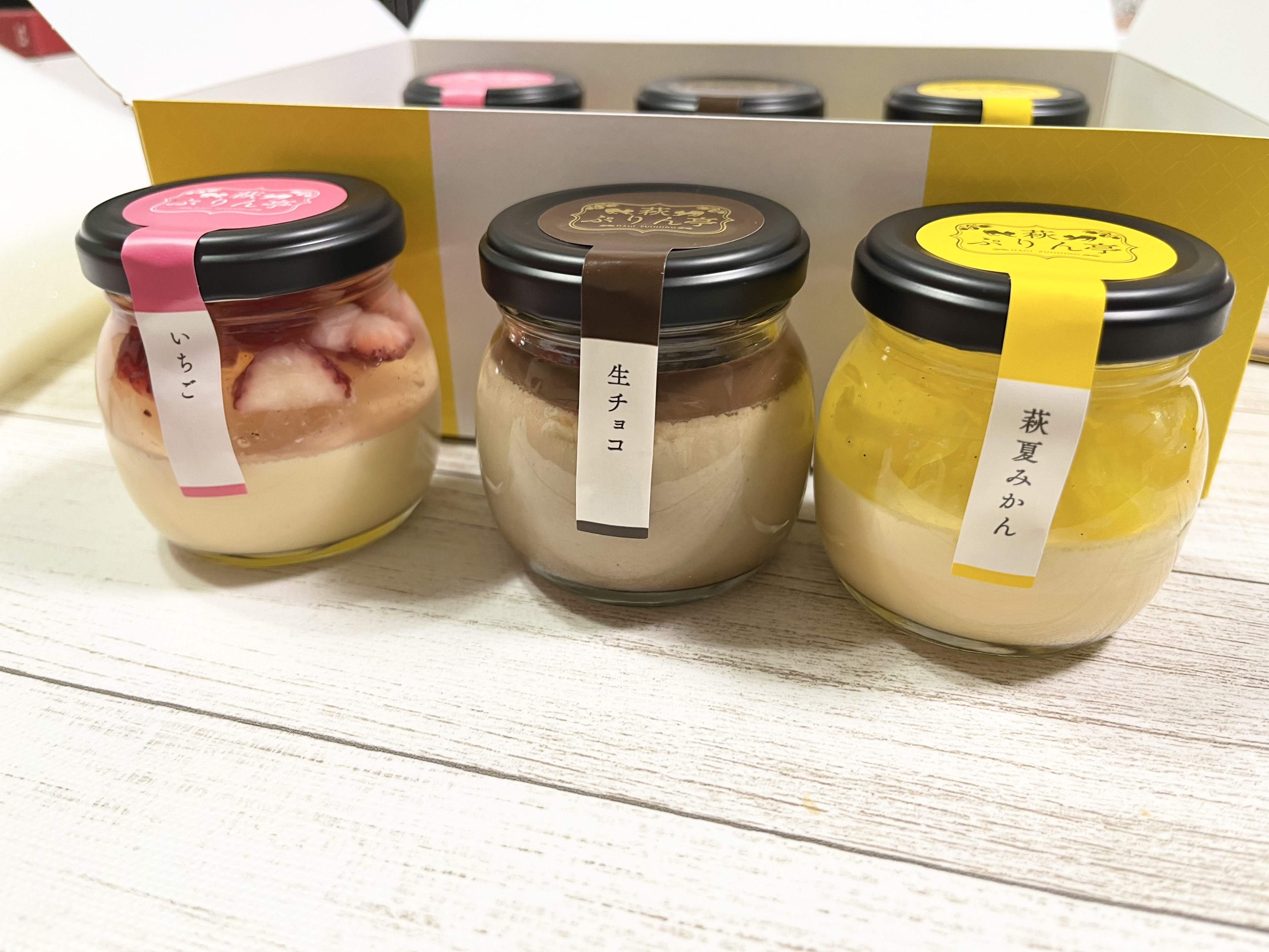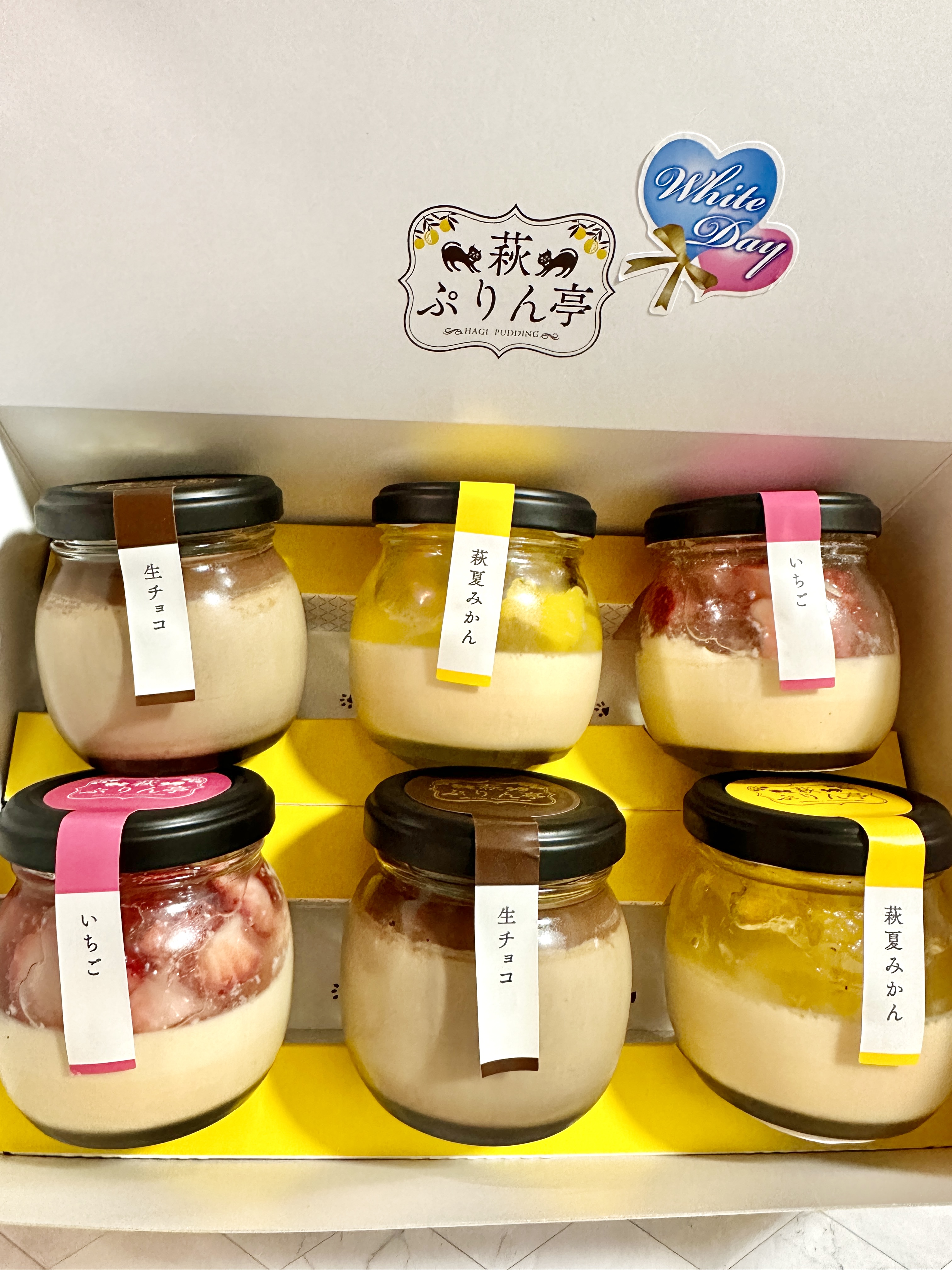 女性に人気のフレーバー、いちご、萩夏みかん、生チョコをセットにしたホワイトデーセットをプリン専門店『萩ぷりん亭』が販売開始しました。