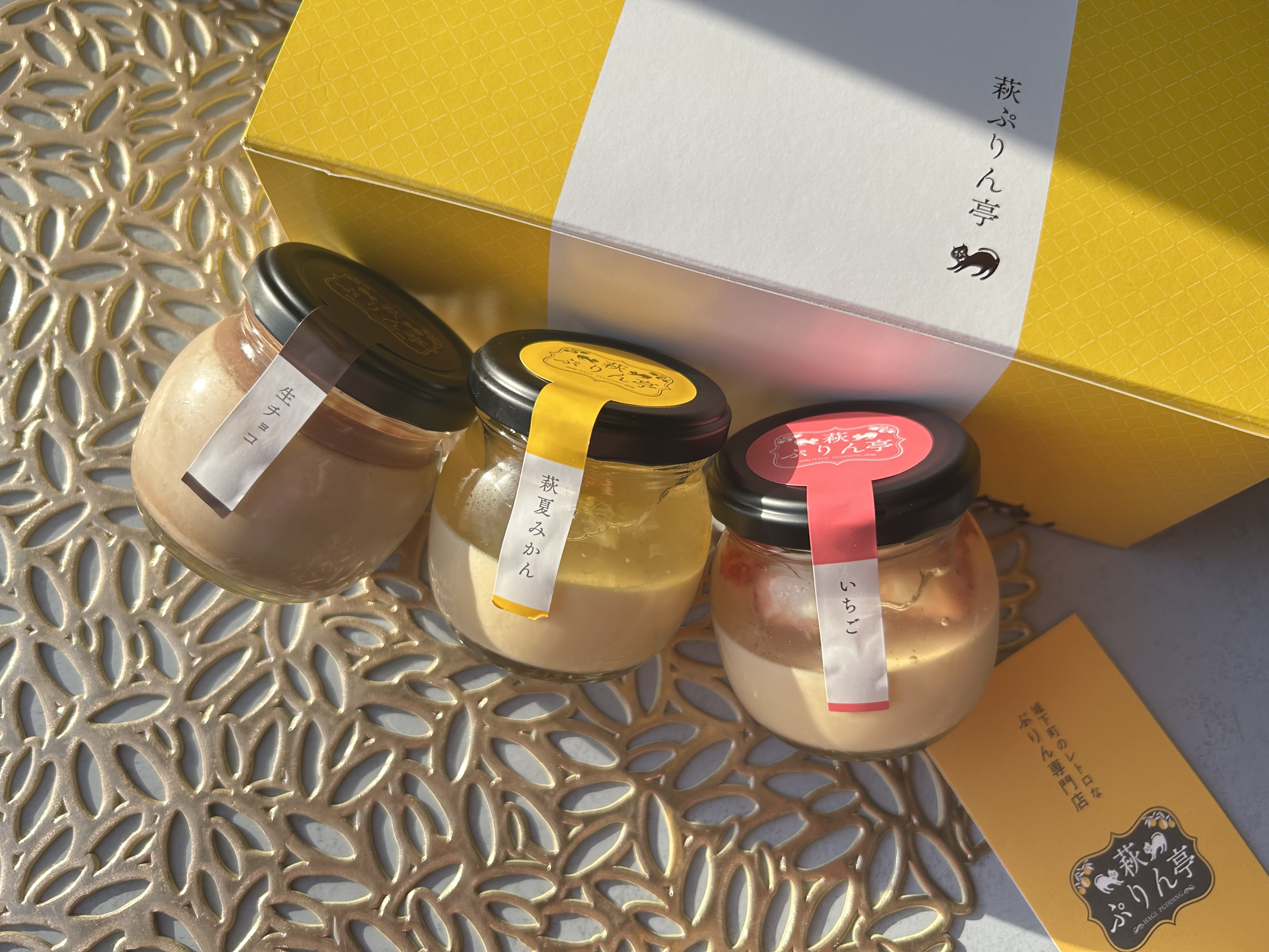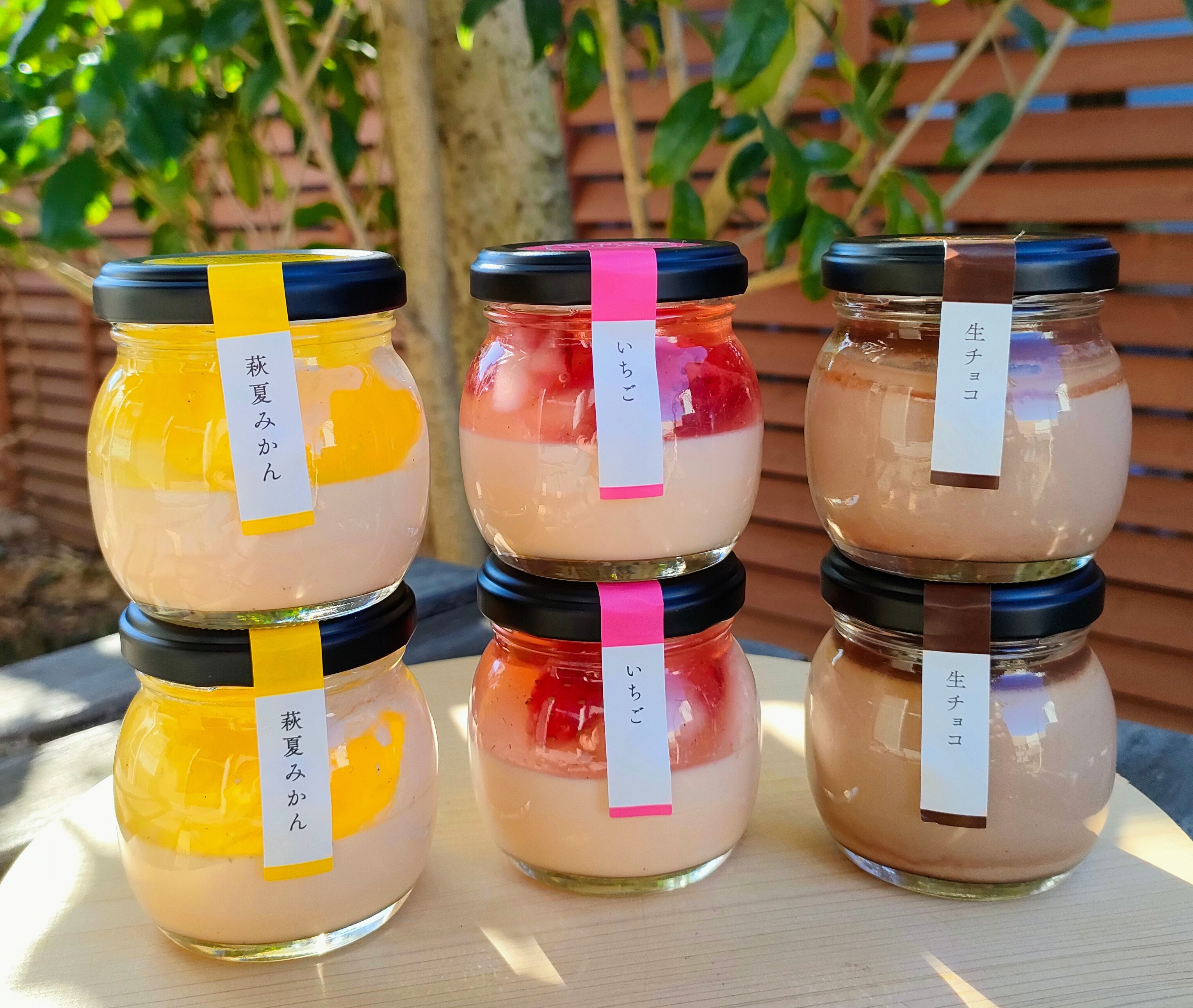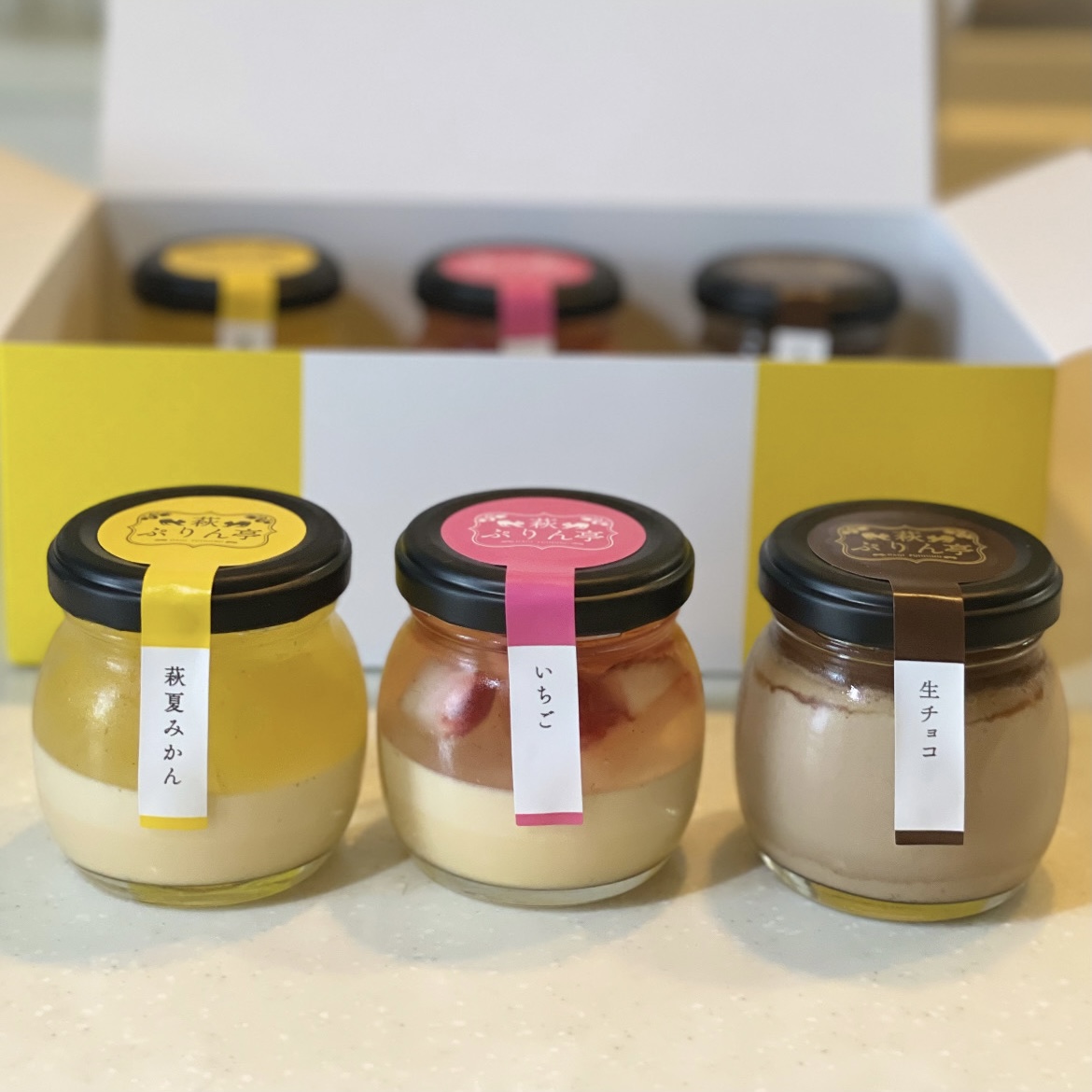 女性に人気のフレーバー、いちご、萩夏みかん、生チョコをセットにしたホワイトデーセットをプリン専門店『萩ぷりん亭』が販売開始しました。