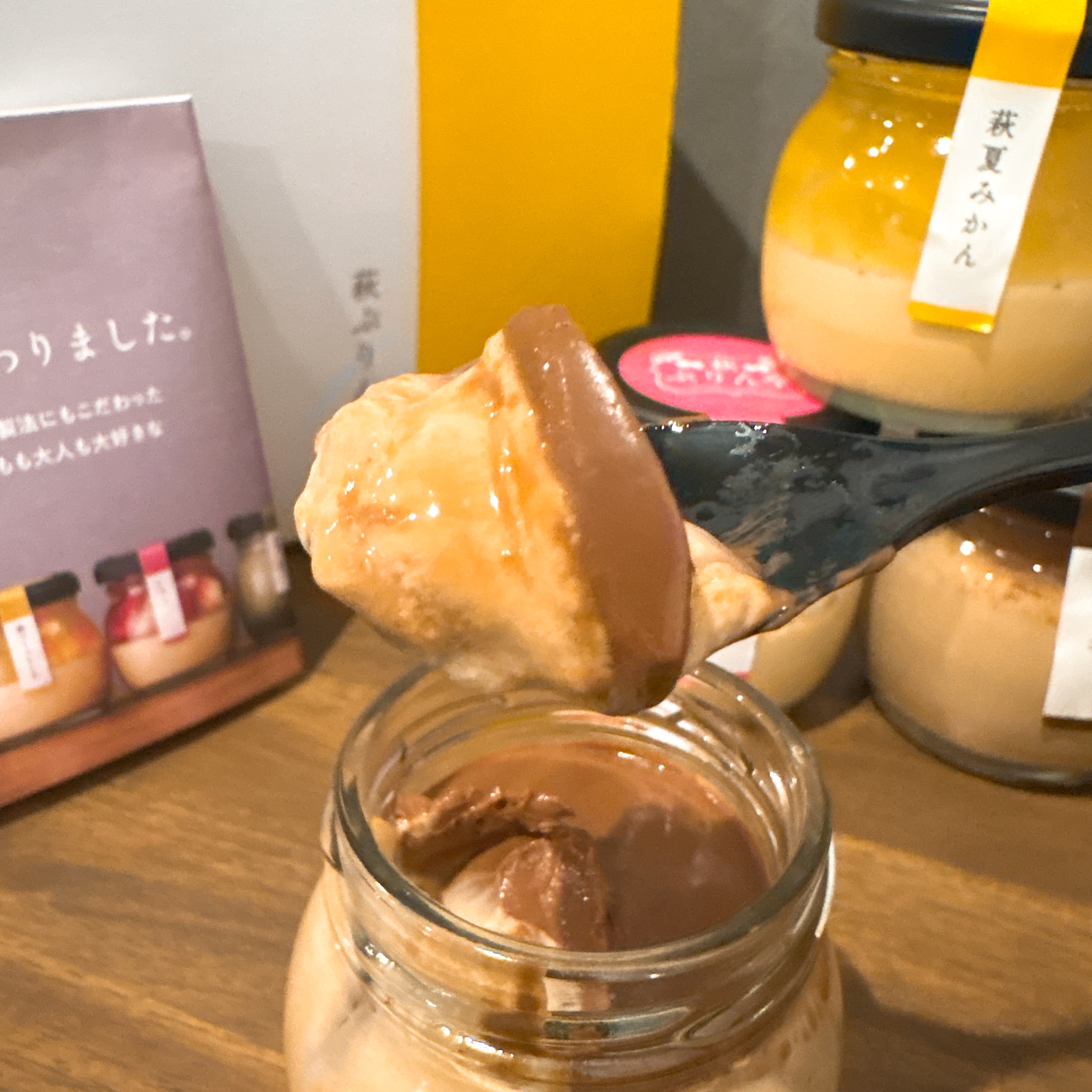 萩ぷりん亭のプリンは、とろりとしたなめらかな口どけと甘いバニラの香りが特徴のプリンです。生クリームをたっぷり使用する独自の製法が、唯一無二のなめらかな食感を引き出します。