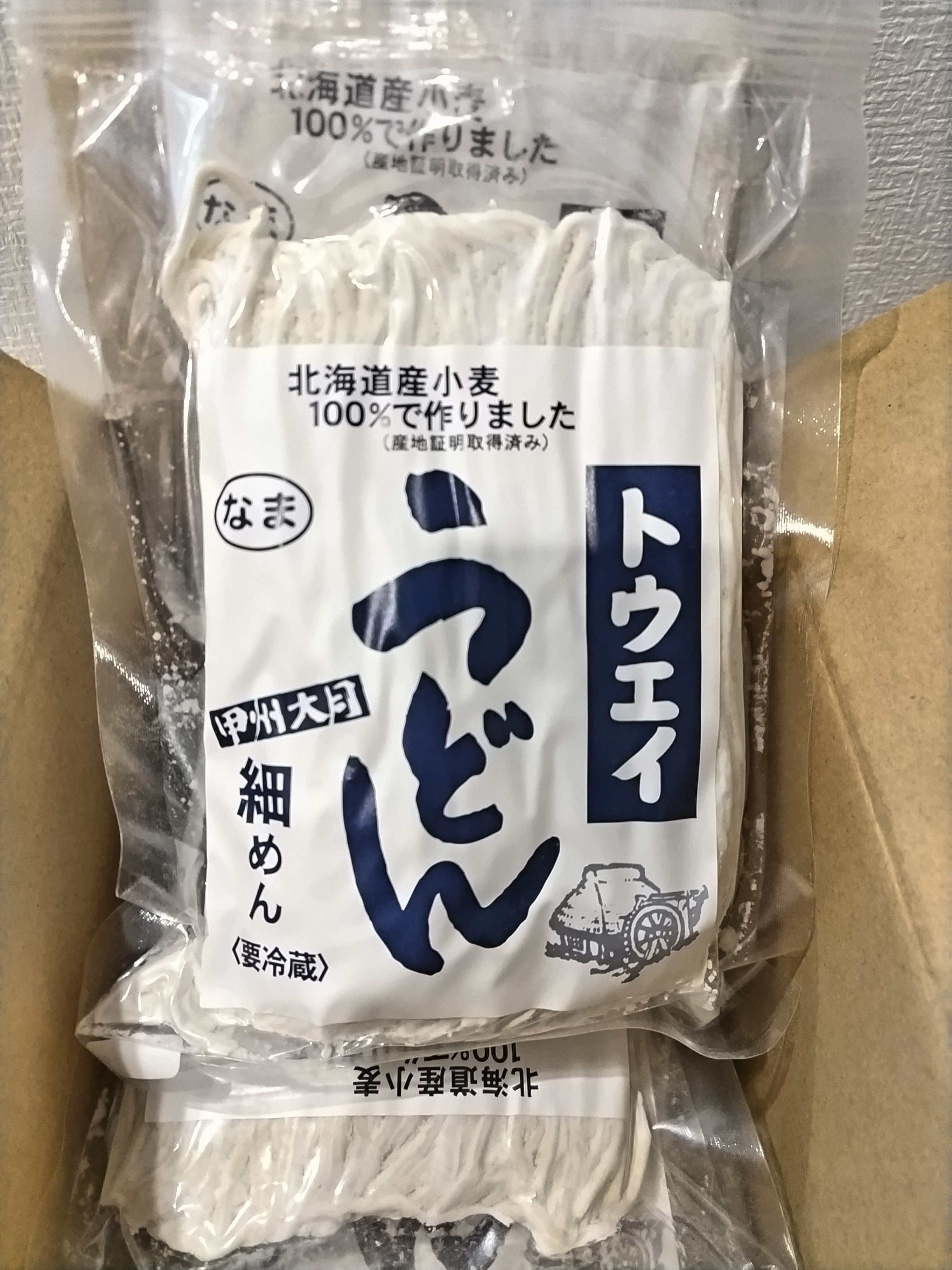 ガス真空で密封しているため、見た目はうどんなのにカチカチとなり、スーパーでよく見る生うどんのような美味しそうな見た目ではありませんが、これこそ添加物は必要最低限で、保存料を使っていないなによりの証拠なのです。