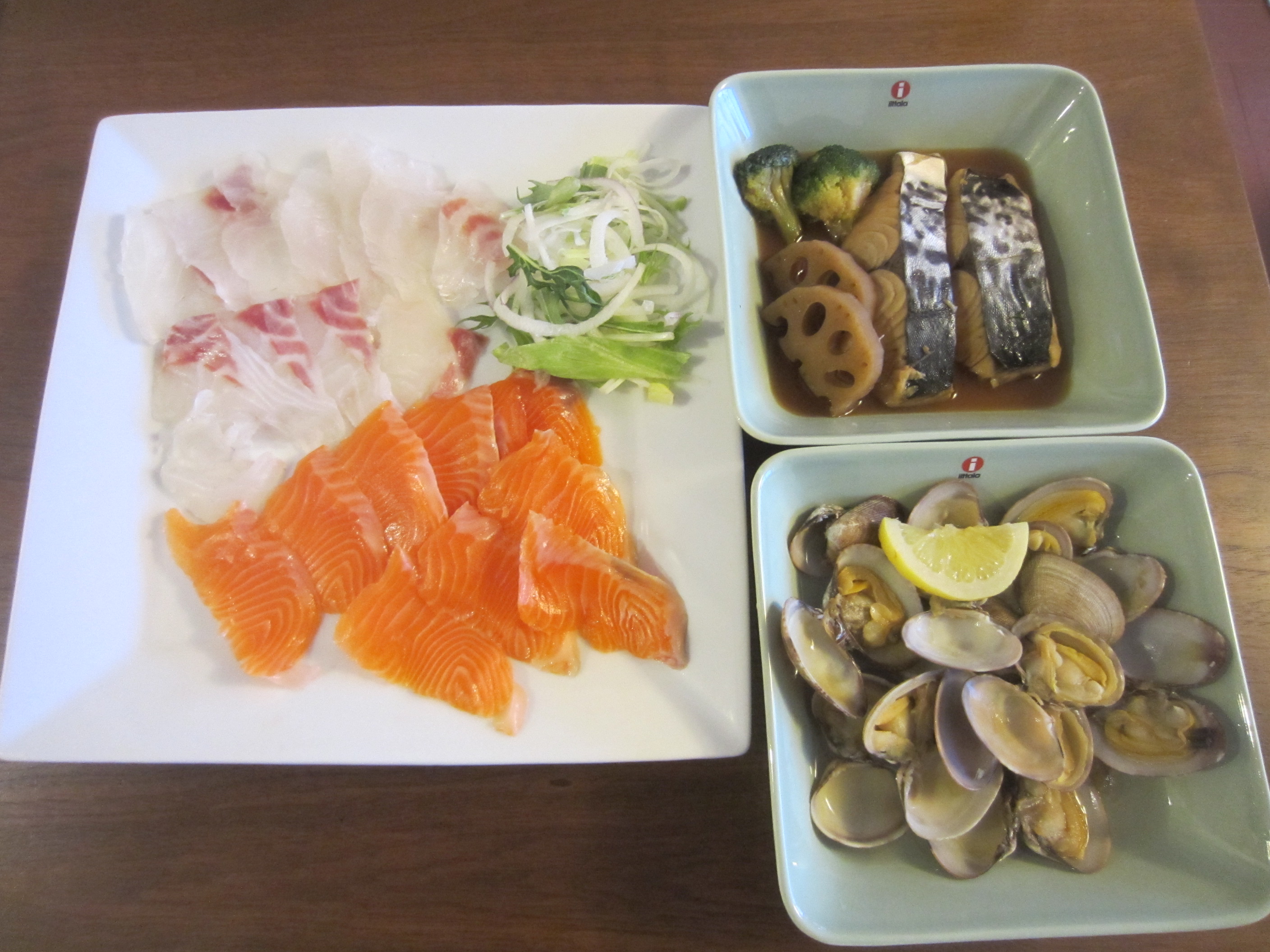 パックの様子は鰆2切れとレンコン・ブロッコリーが各2個づつ、きれいに並べられて、真空パックされていました。