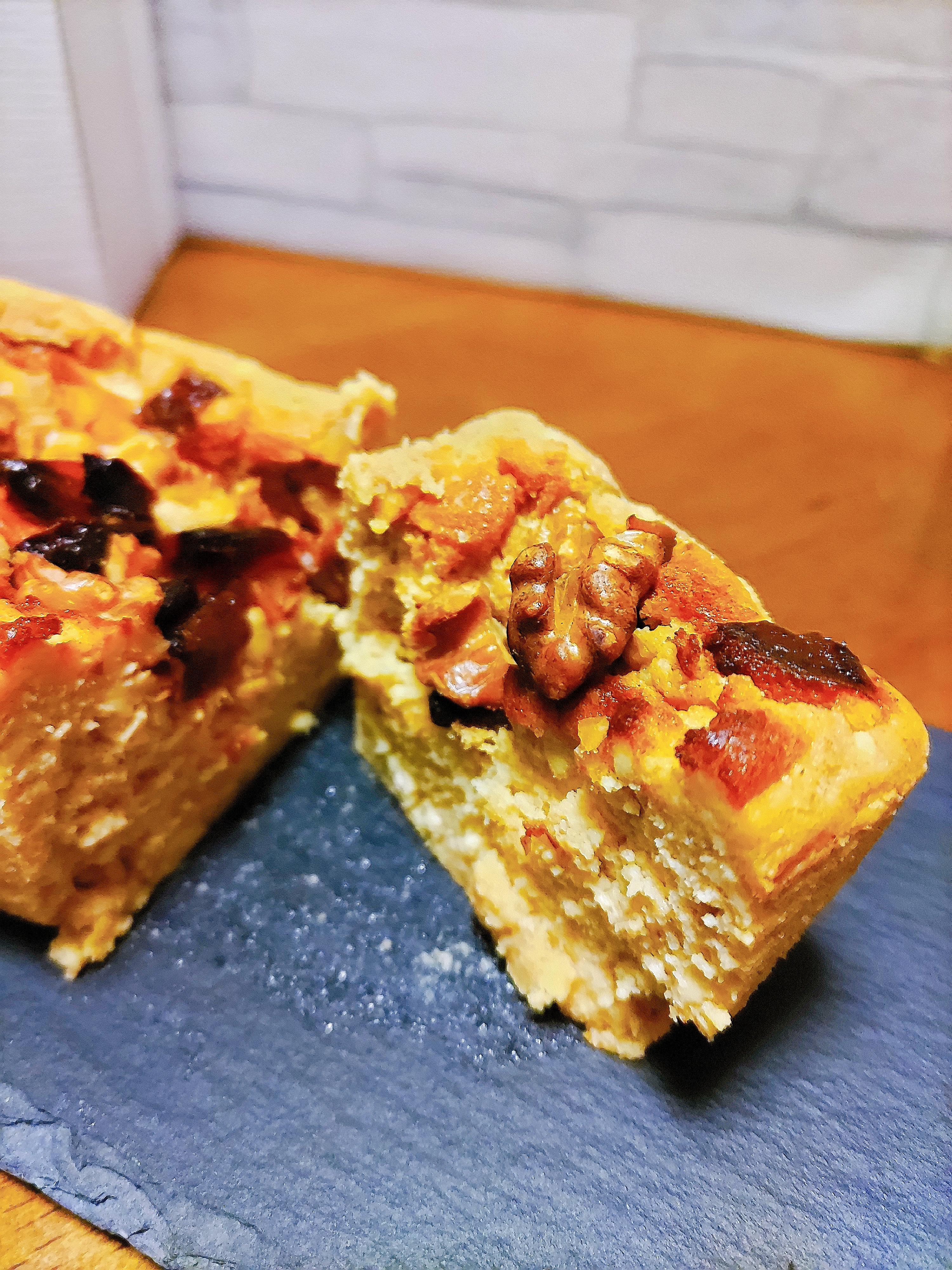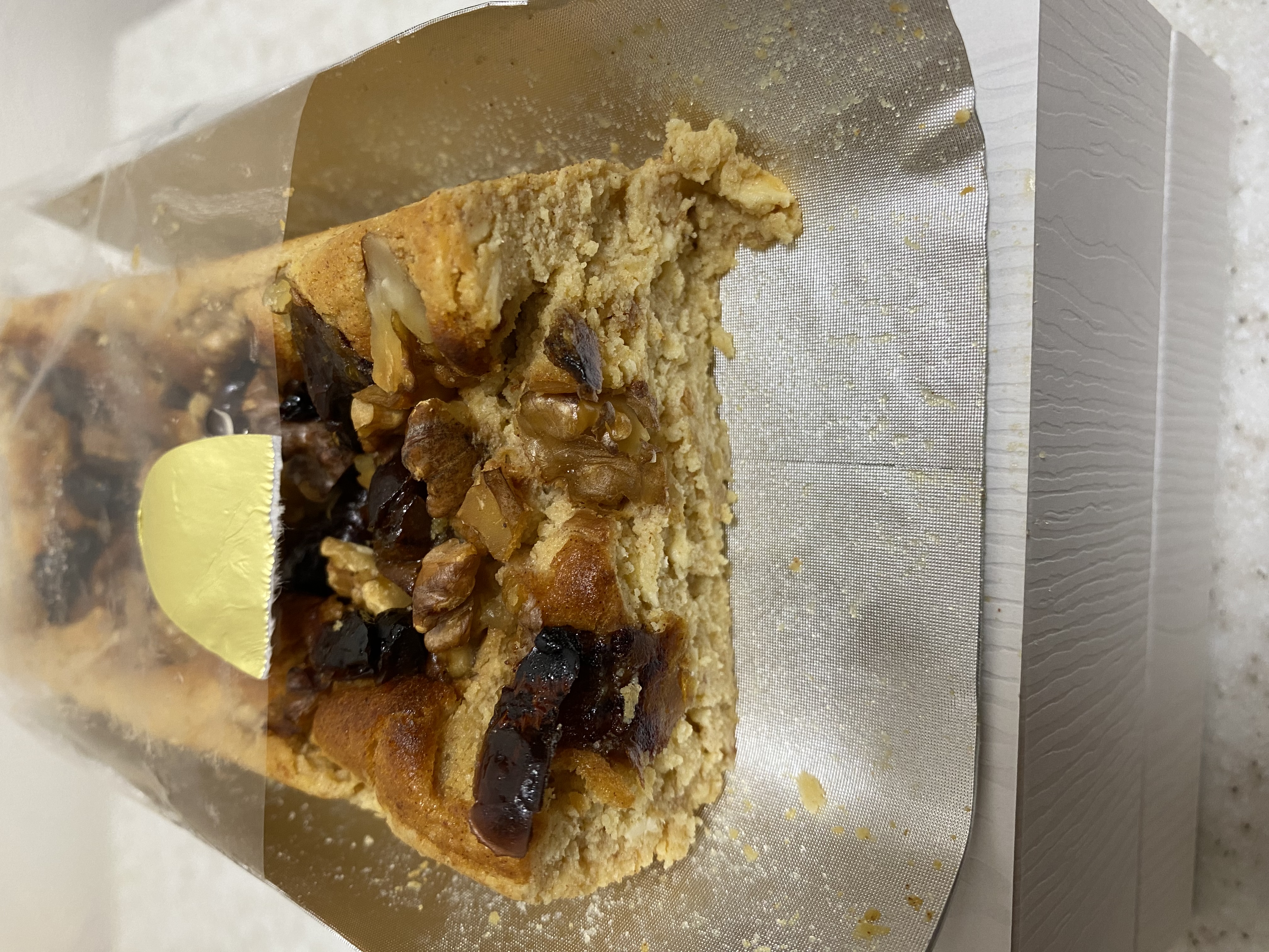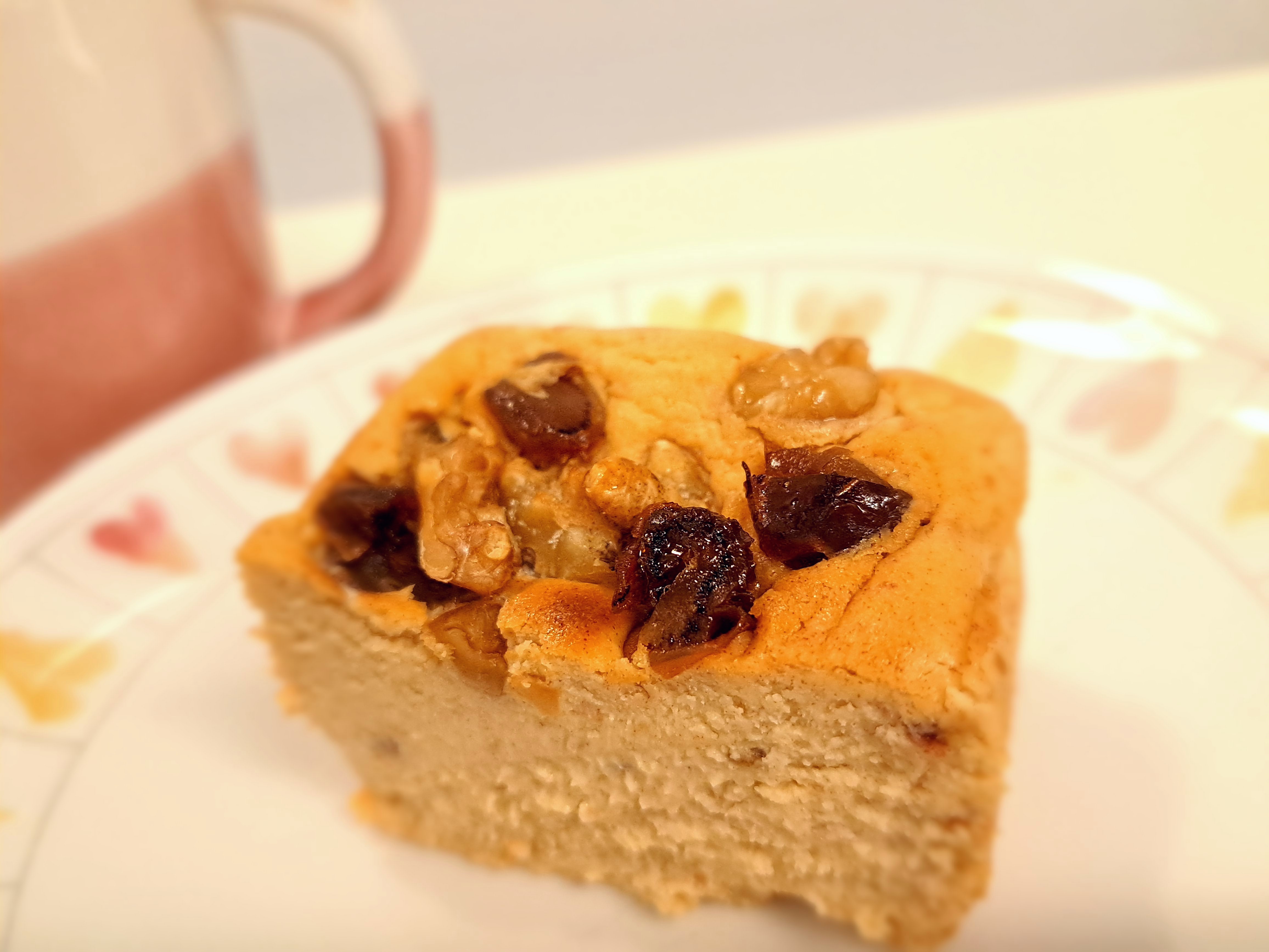 トッピングはドライデーツとくるみですが、くるみの食感が良いアクセントになっています。ドライデーツは食べたことがありませんでしたが、レーズンと似ています(レーズンが苦手な方には向かないかもしれません)。個人的には、濃厚なチーズテリーヌに甘酸っぱいドライデーツがマッチして、濃すぎず爽やかな味わいを完成させています。