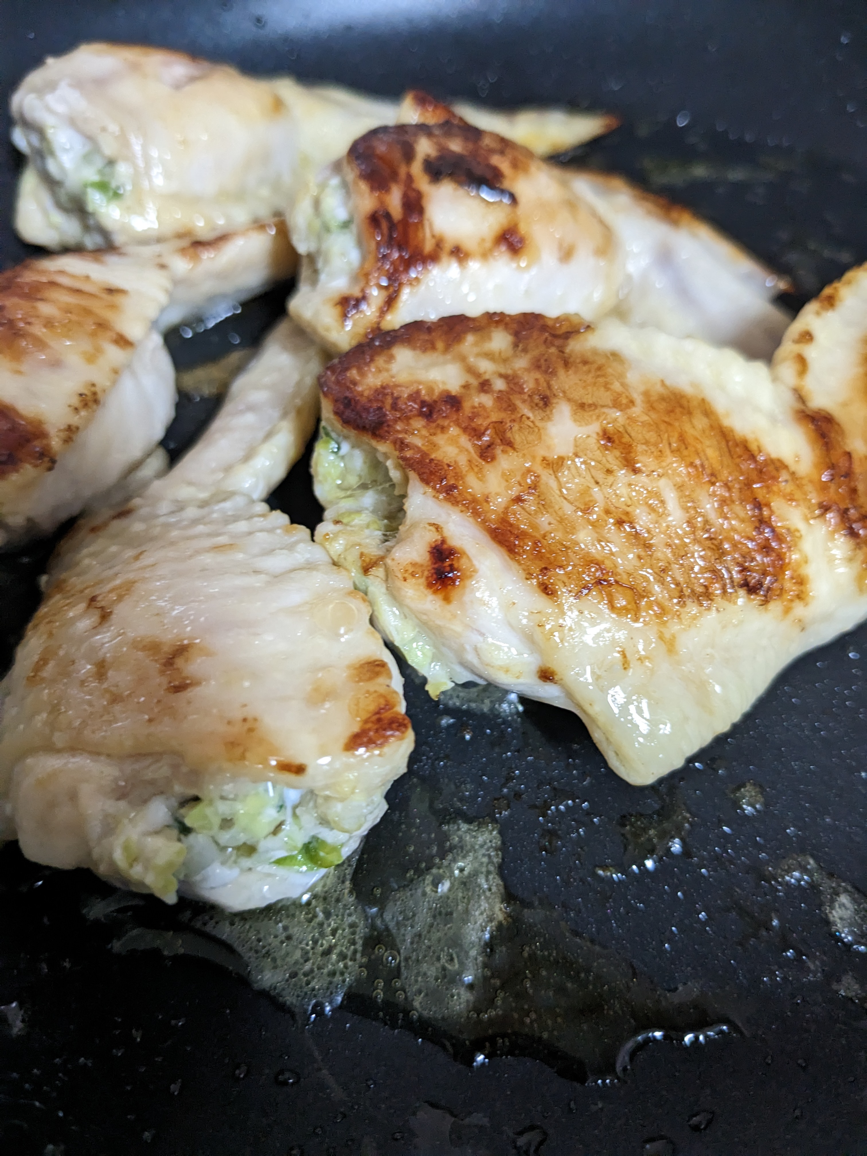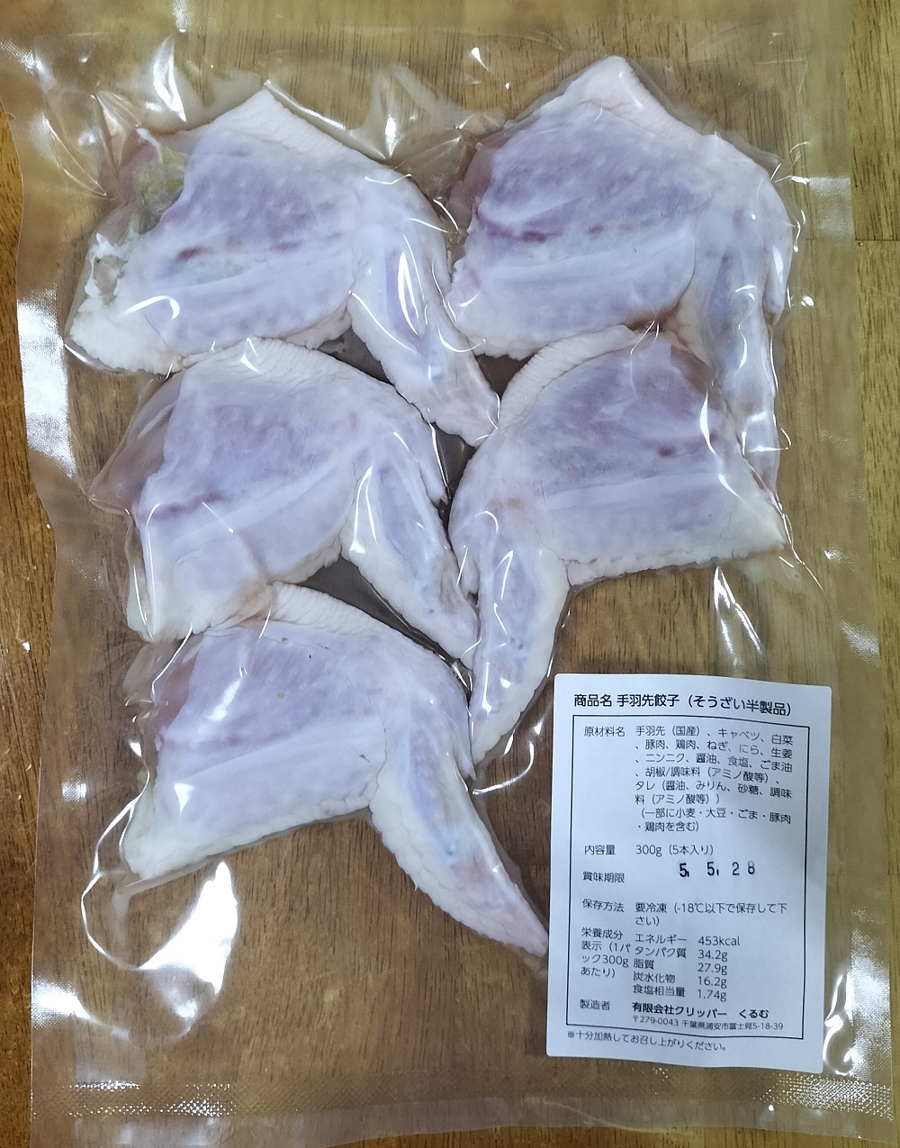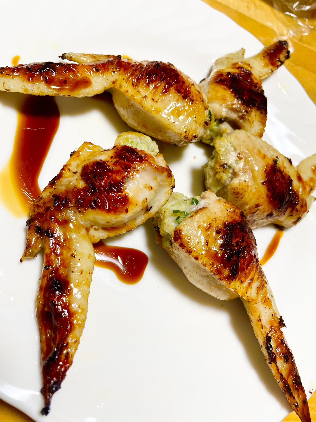 手羽先の中には餃子の具が隙間なくたっぷりと詰められており、ボリューム感があります。皮はパリッと、中はふっくらで、付属の甘辛いタレと手羽先がよく合いました。タレは焼き鳥のような感じで味がしっかりとしていますが、餃子の具の味わいもタレに負けずしっかりと存在感があります。ニラとニンニクの効いたパンチのある味わいでした。ビールにもよく合い、おつまみとしても最高です。お手軽に美味しくて珍しい手羽先餃子が楽しめるため、またぜひ宅飲みのお供として利用したいです。