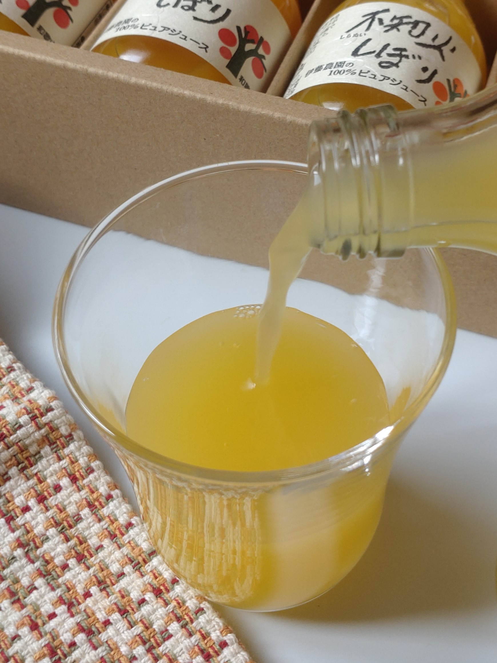 100%ストレートジュースは、みかん、セミノール、はっさく、しらぬいの4種5本(みかんが2本です!)