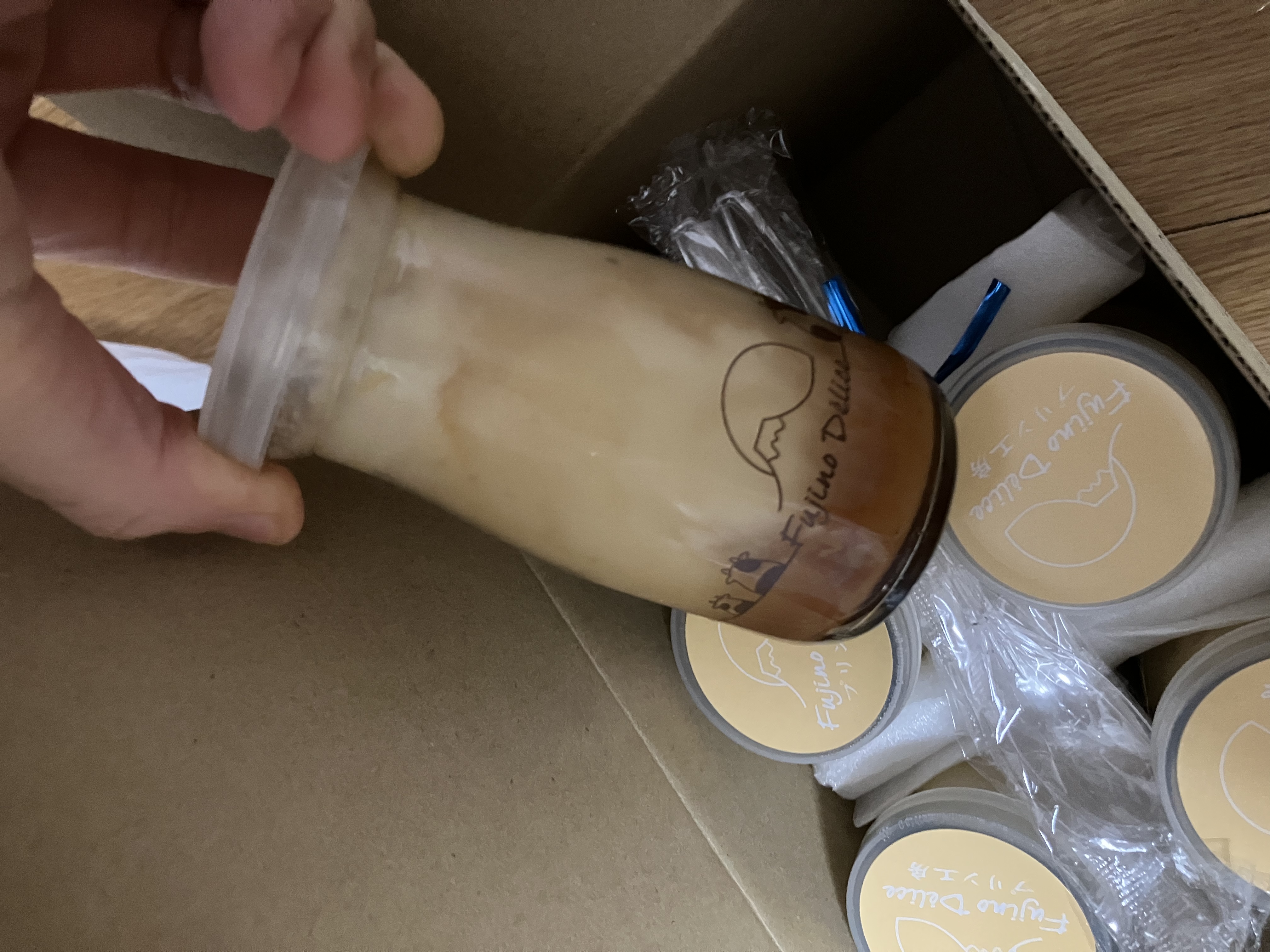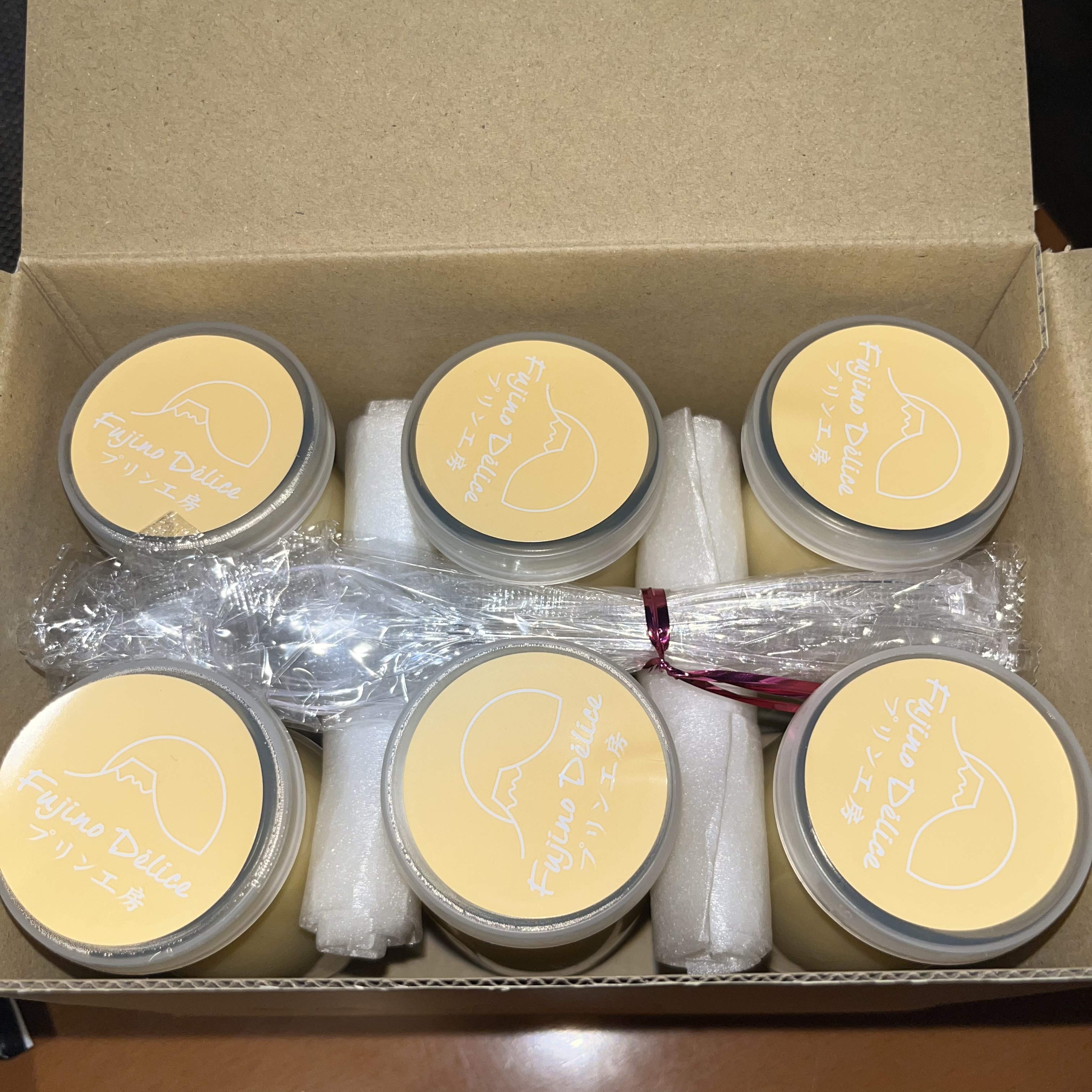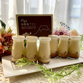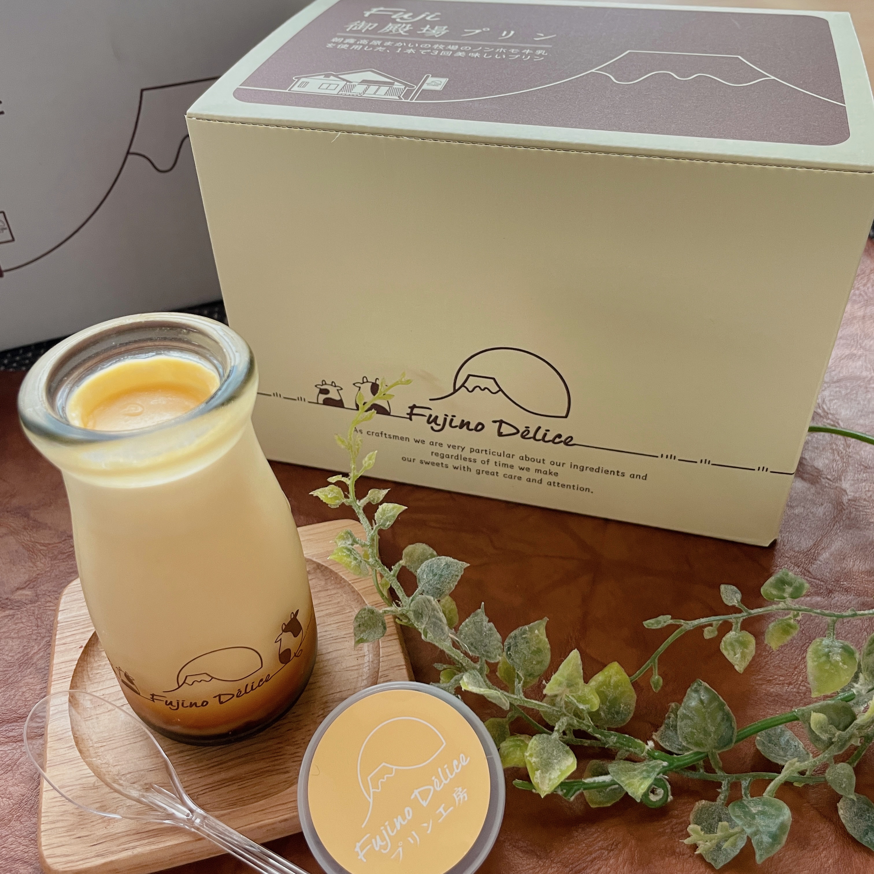 富士山嶺・御殿場で生まれたこだわりのご当地「プリン」です。原材料にこだわり、牛乳は朝霧高原まかいの牧場のノンホモ牛乳、卵は地元御殿場の養鶏場の卵、砂糖は北海道産の甜菜糖を使用しています。小さな牛乳瓶で焼き上ているので、細長く少し食べづらいように感じますが、間口が小さいので、脂肪の層が上部に浮いて焼きあがります。まず一口目はその脂肪層の濃いところ、次に真ん中の層へと進みだんだんと味が変わっていきます。そして最後にカラメルソースと合わせて食べる、1本で3度味が変わるプリンです。。専用ボックスに入って届くので、手土産スイーツとしてもおすすめです。