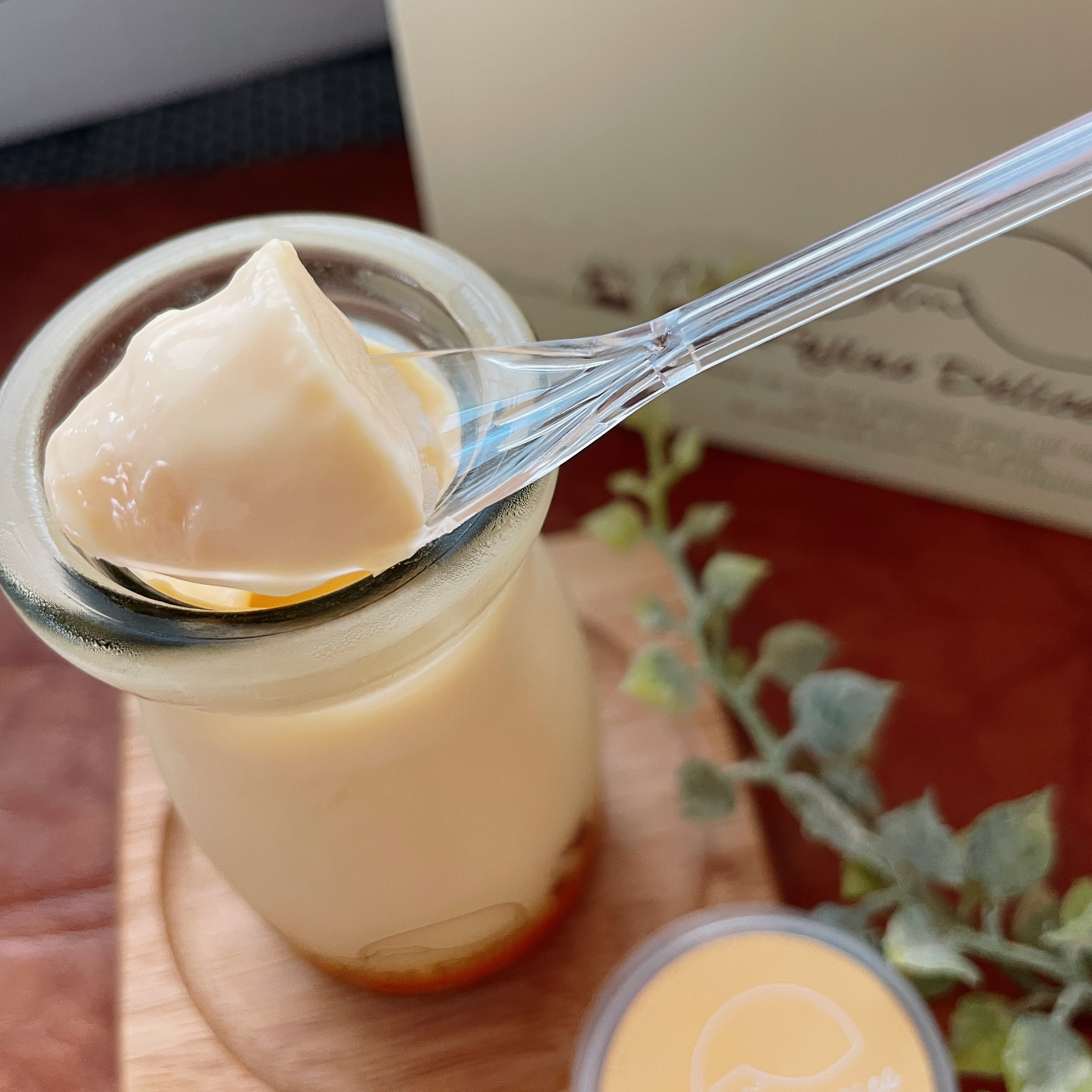 プリンは縦長の瓶に入ってるので、長いスプーンが一緒に入っていて、とっても親切!