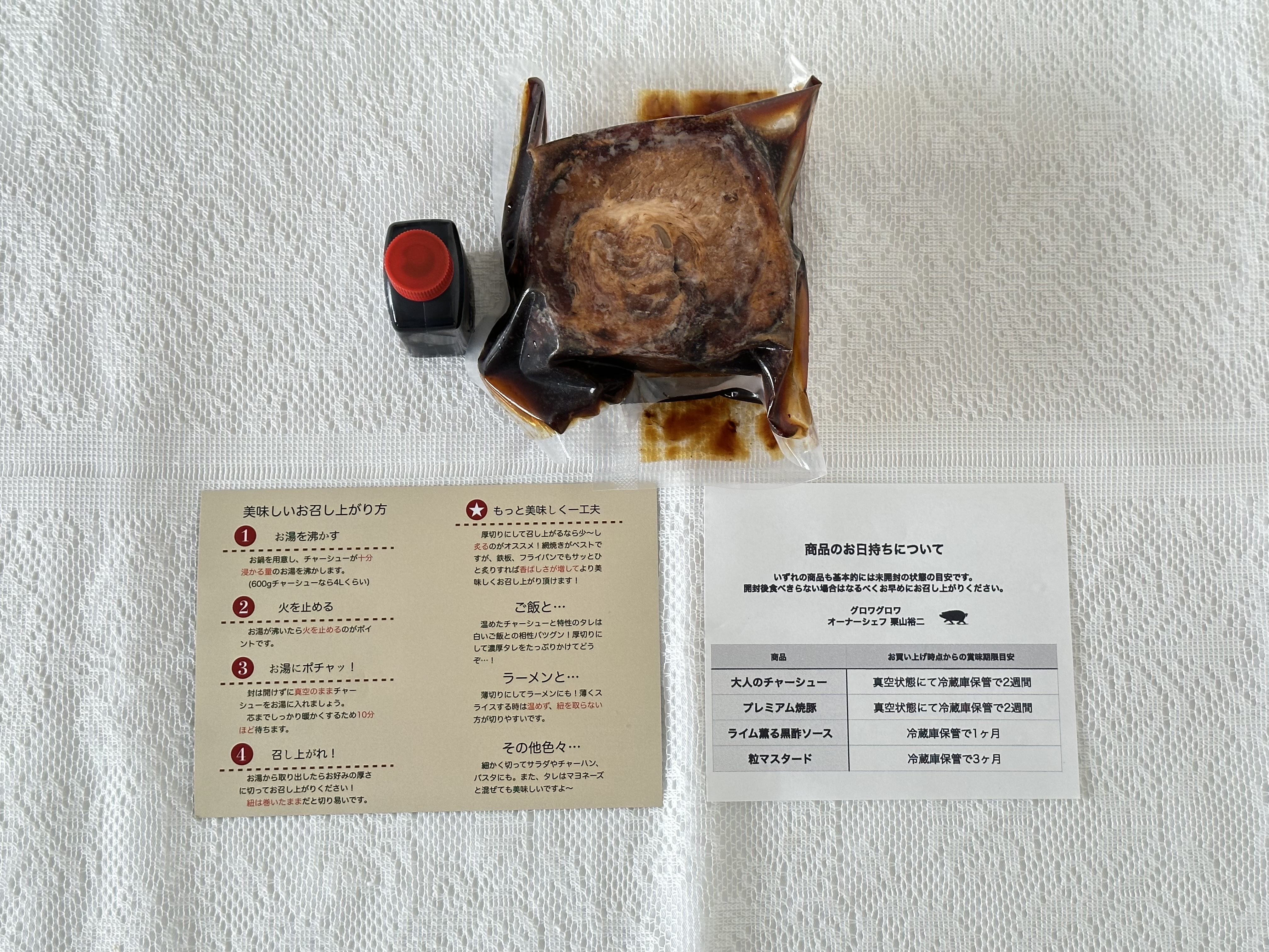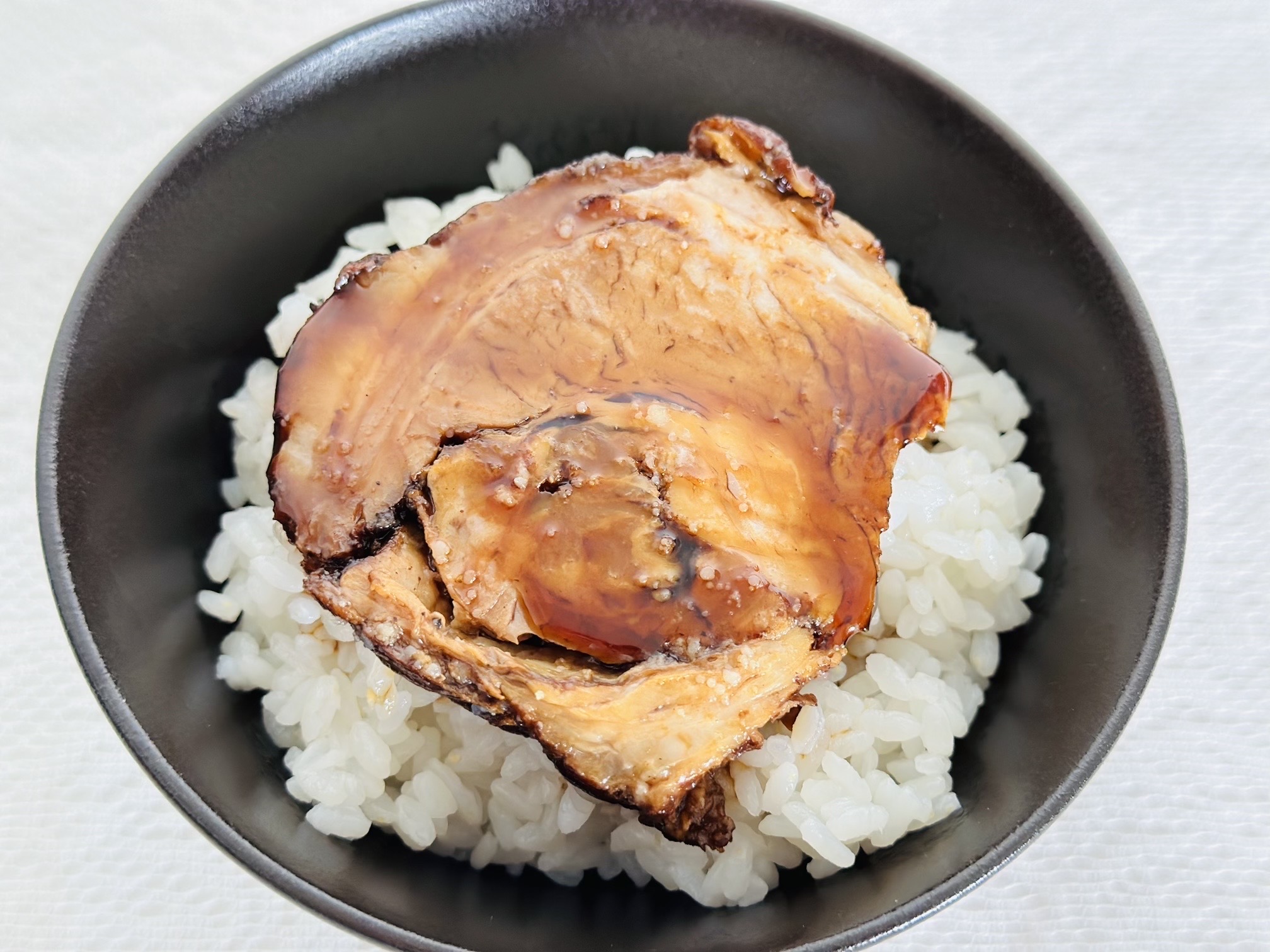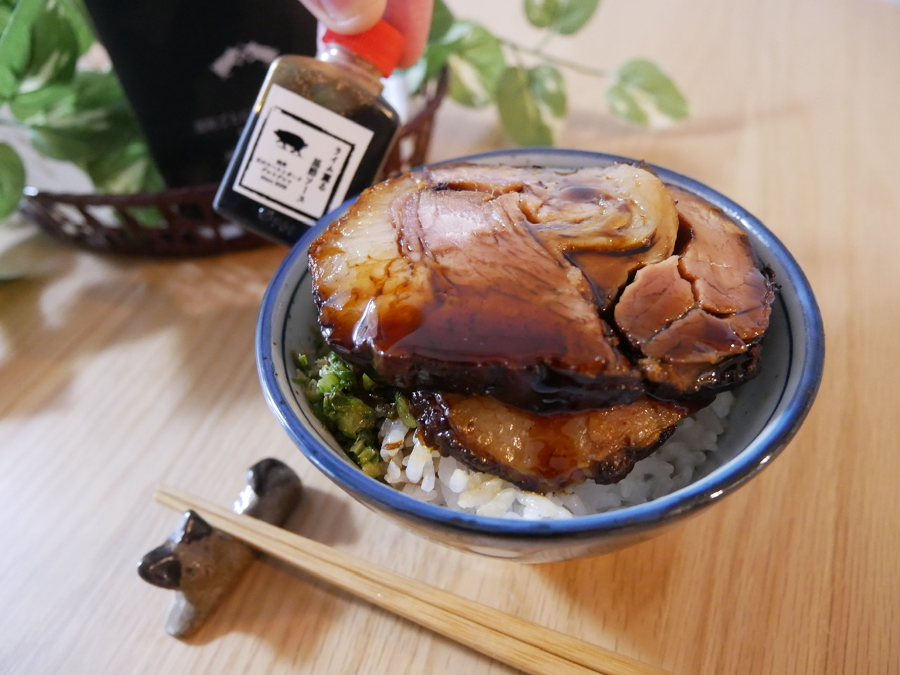 従来の甘辛醤油という印象とは全く違う、独特の酸味と甘みが絶妙です。バルサミコ酢が使われているため、コクが深く、火入れもこだわりがあり、お肉の引き締まった箇所とトロトロの箇所が楽しめて、食べるともう一口と止まらない美味しさでした。ライムをきかせた黒酢ソースをかけると旨みがぐっと引き立つのも驚きます。大人のためのチャーシューというイメージ通りの味でした。チャーシュー丼で楽しみましたが、たれも染み込んでおいしくてとんでもなくご飯が進みました。ラーメンやサラダにもアレンジしてみたくなりました。