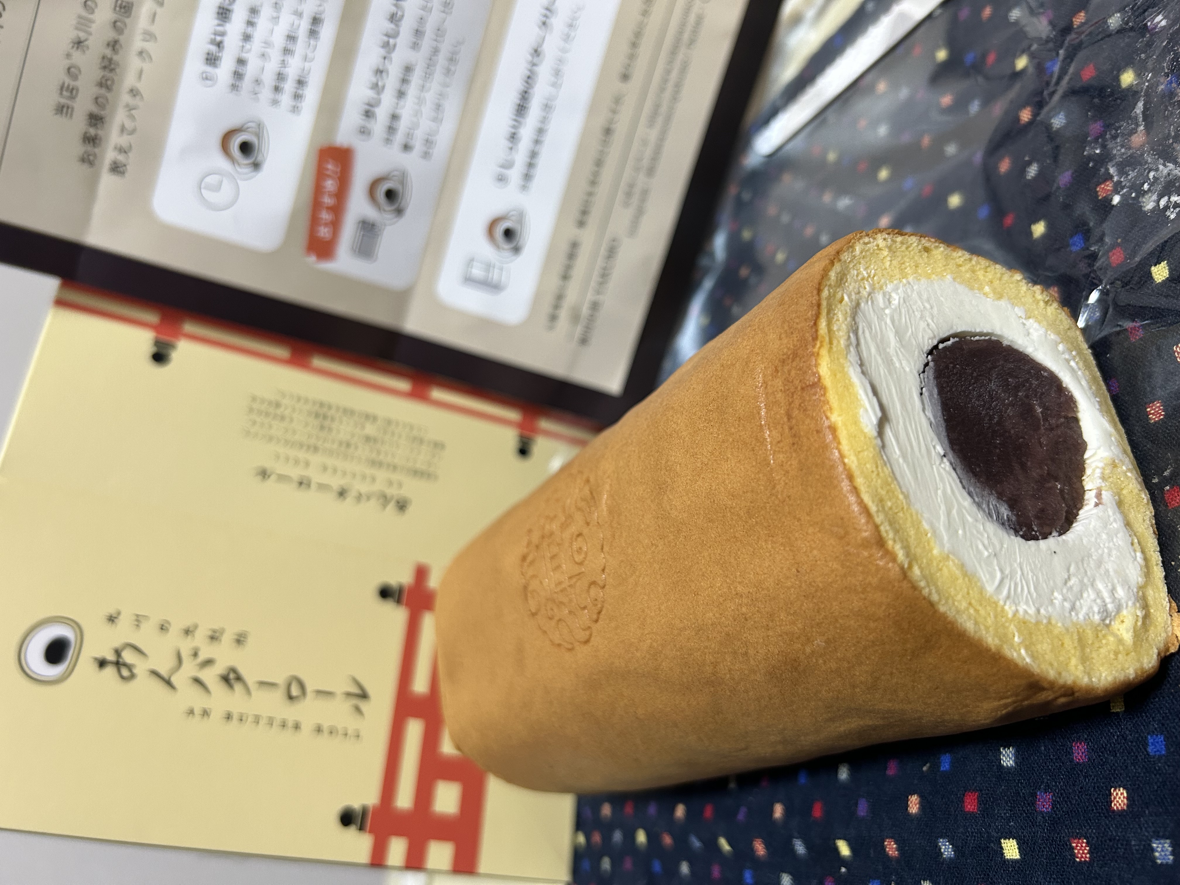 どっしりとした見た目の餡子とバタークリームは、最高コラボでした。ロールケーキの美味しい食べ方の説明書も同封されており、絵柄も文面もとてもわかりやすかったです。3パターンの食べ方の中で、おすすめレンジ500W10秒は、とろっとしたバターの塩味が、さらにきいて、あったかいあんことの相性が抜群でした。