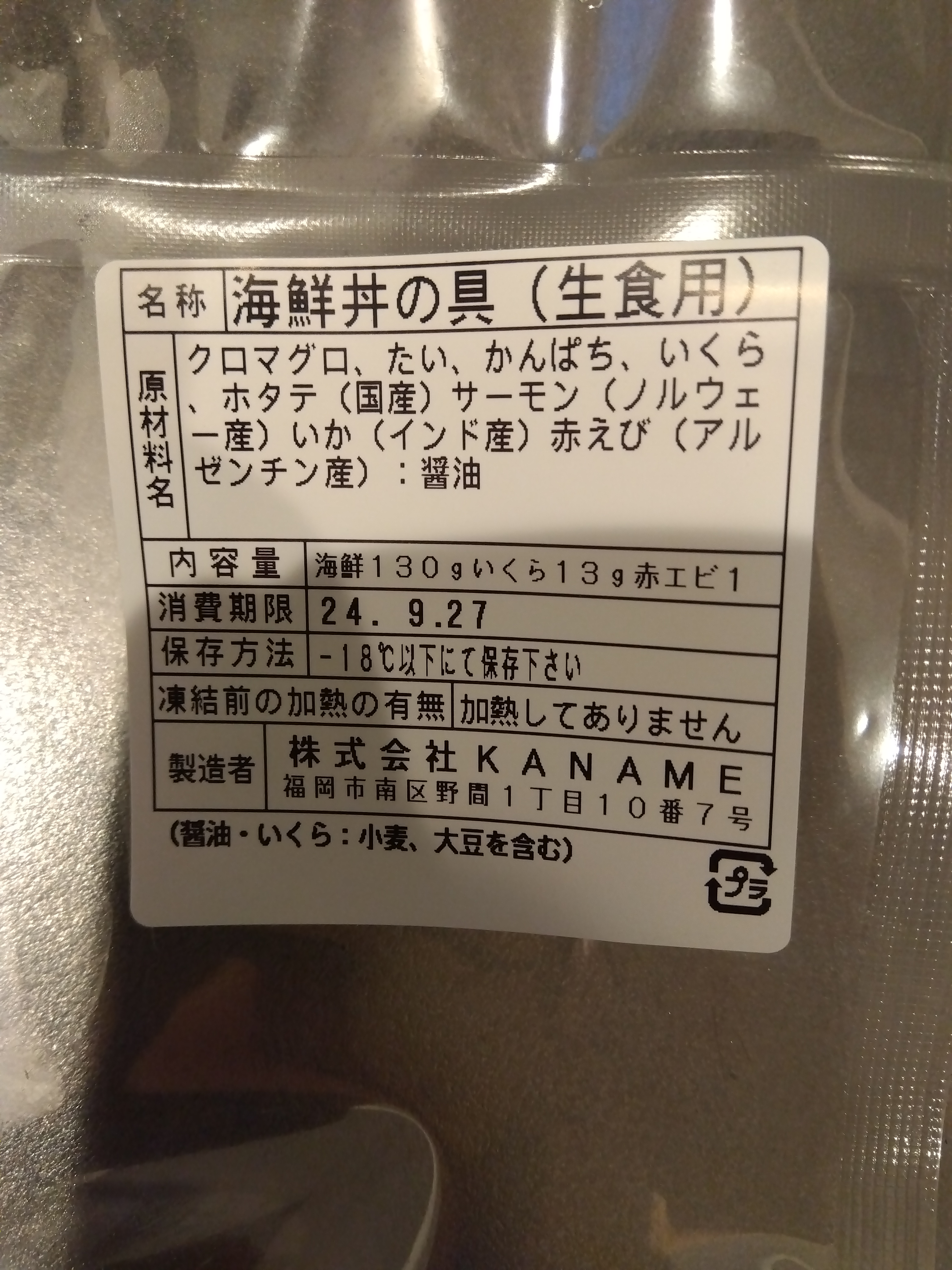 流水解凍後ご飯の上にのせるだけのお手軽な海鮮丼