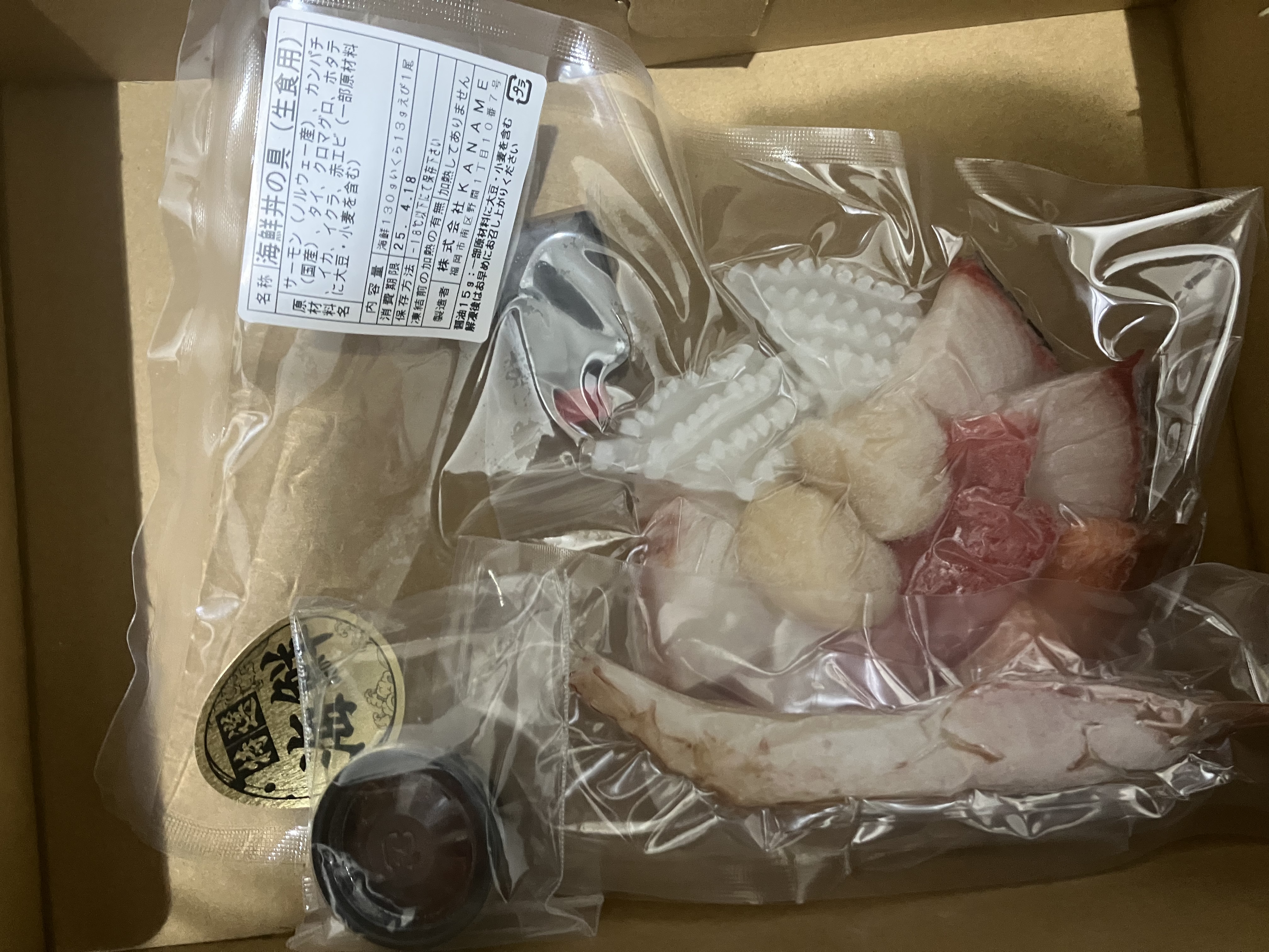 真空パックの冷凍便で届きます。
