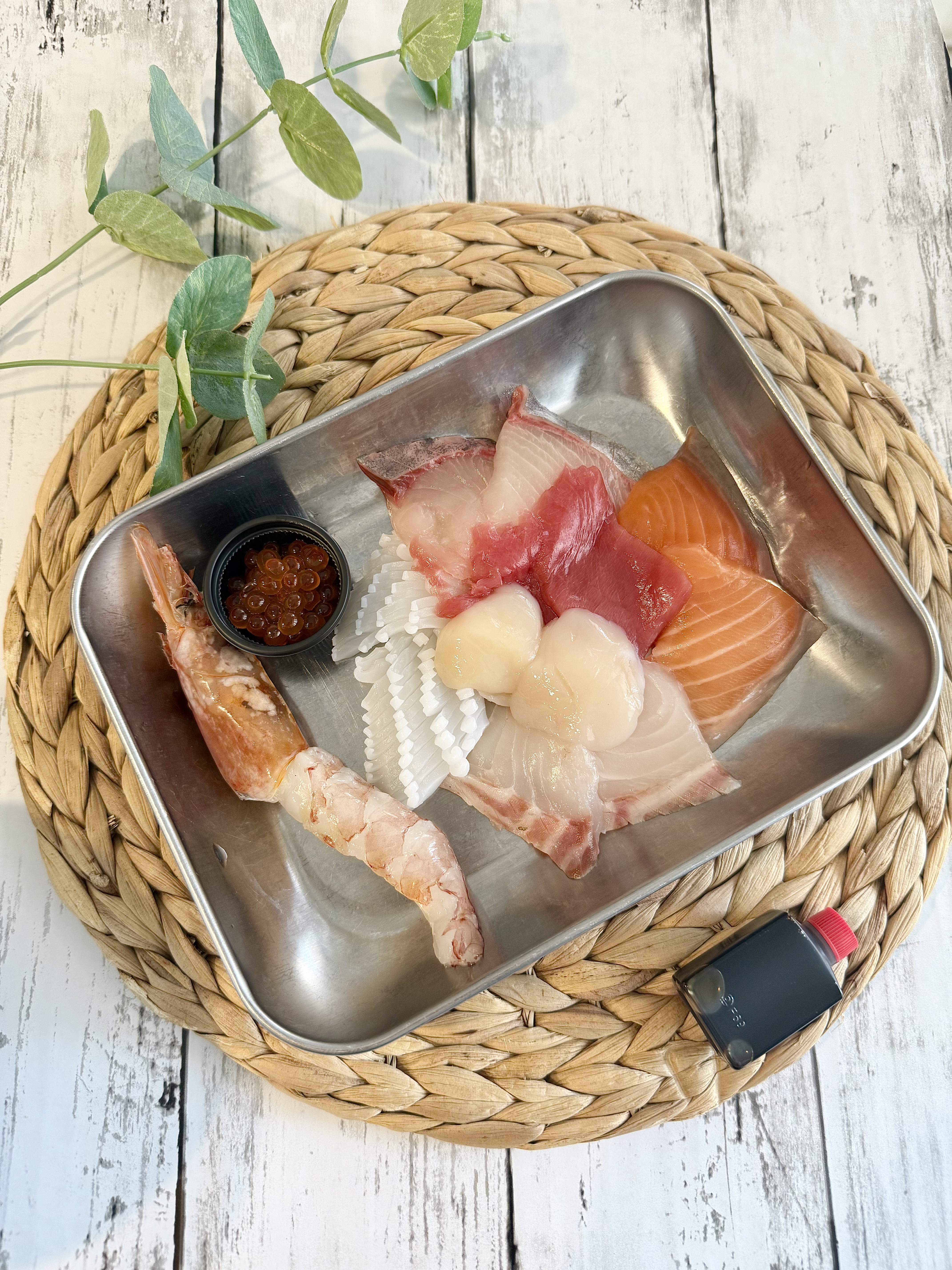 マグロ、タイ、カンパチ、イクラ、ホタテ、サーモン、イカ、赤エビの8種になります。