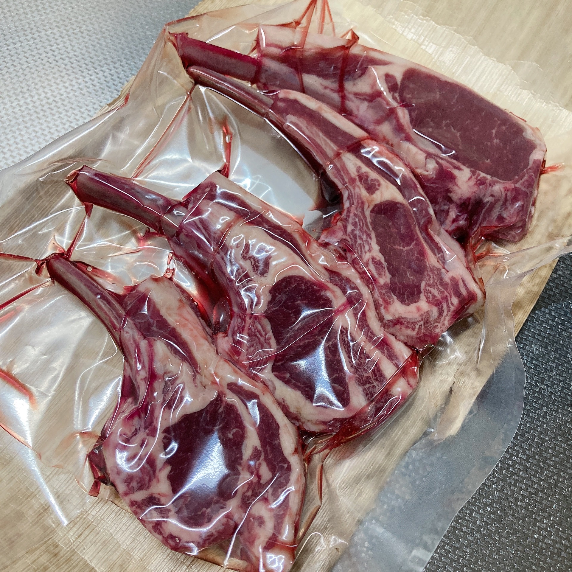 中を開けてみるとしっかりと密閉されてラムチョップが並んでいました。