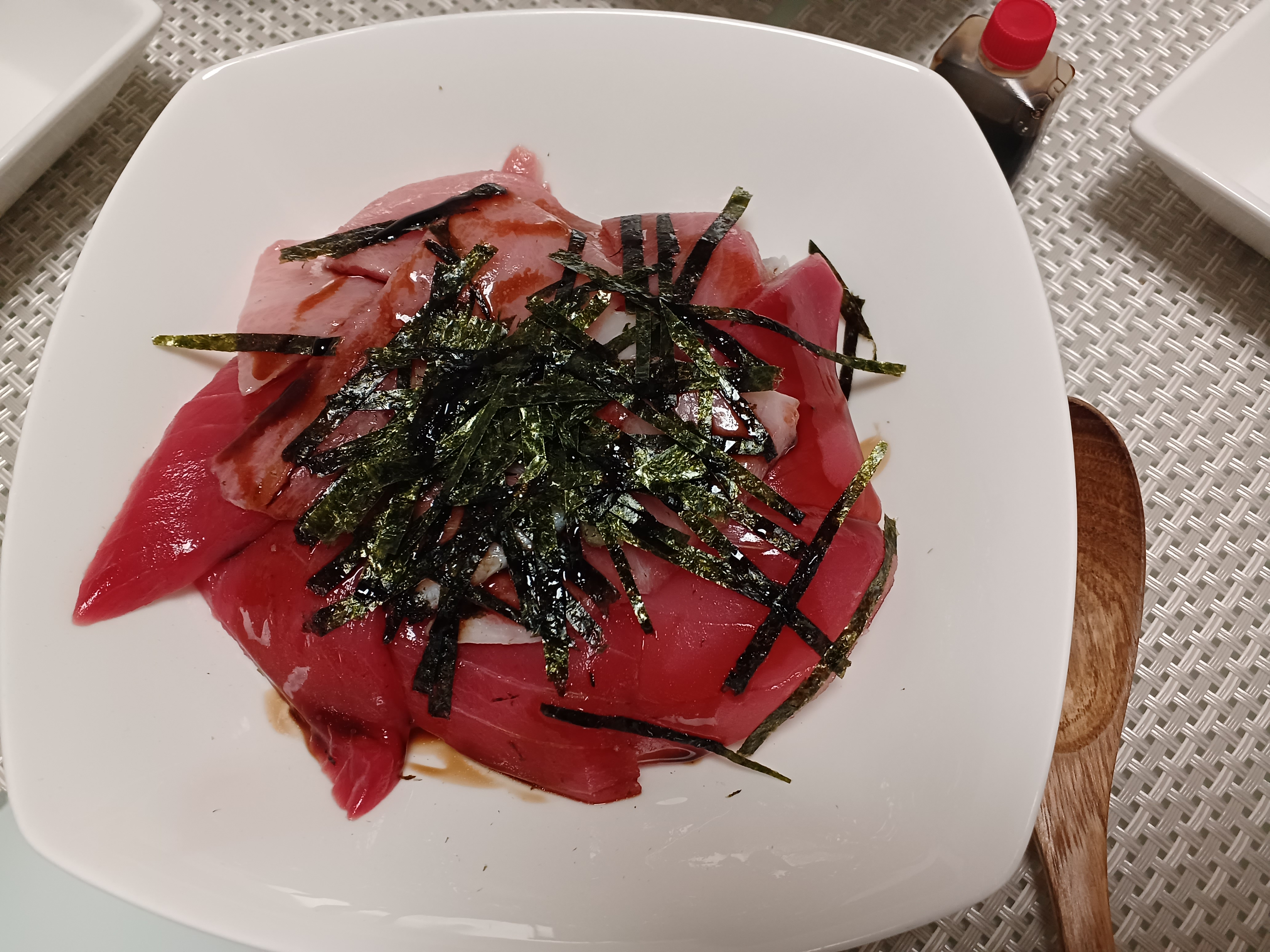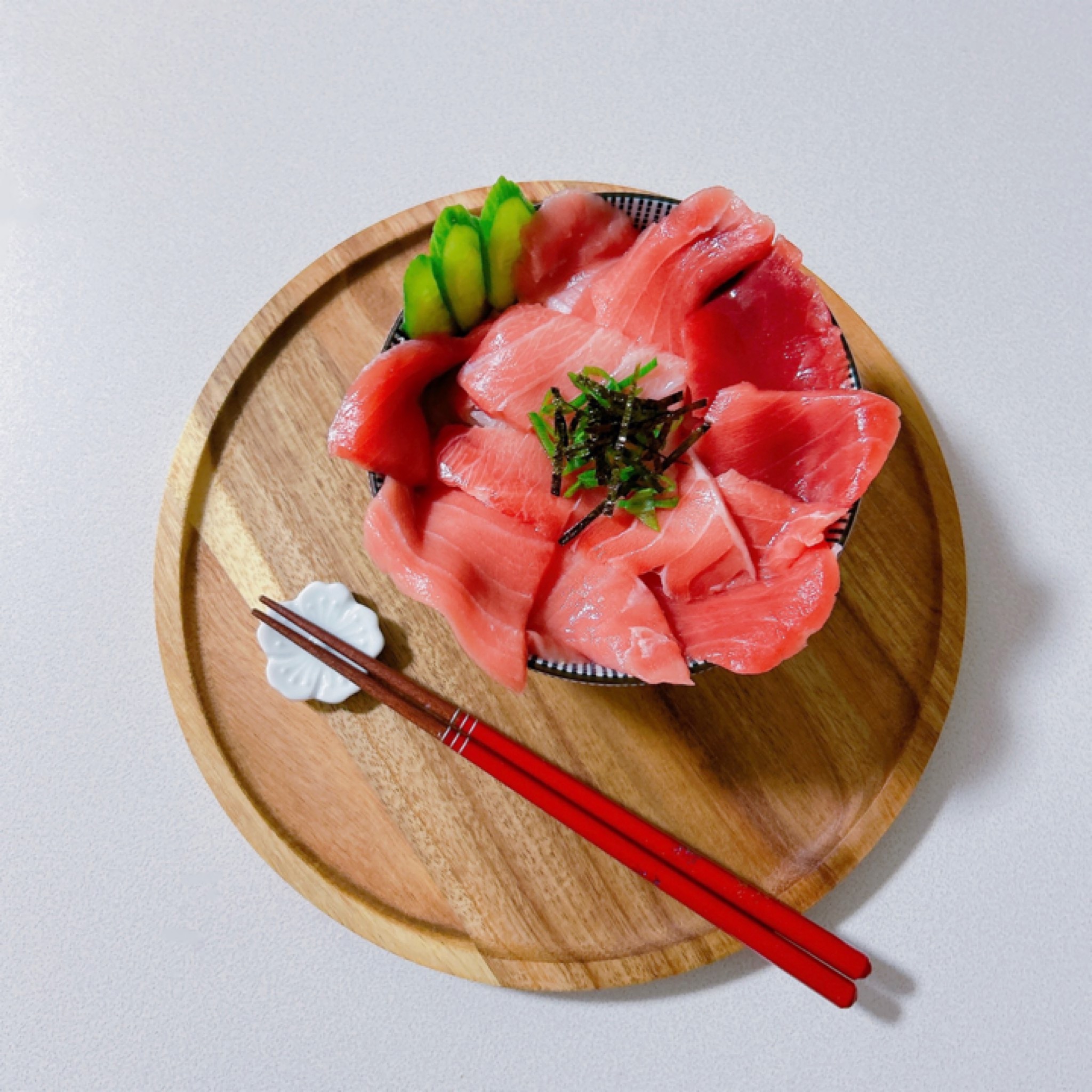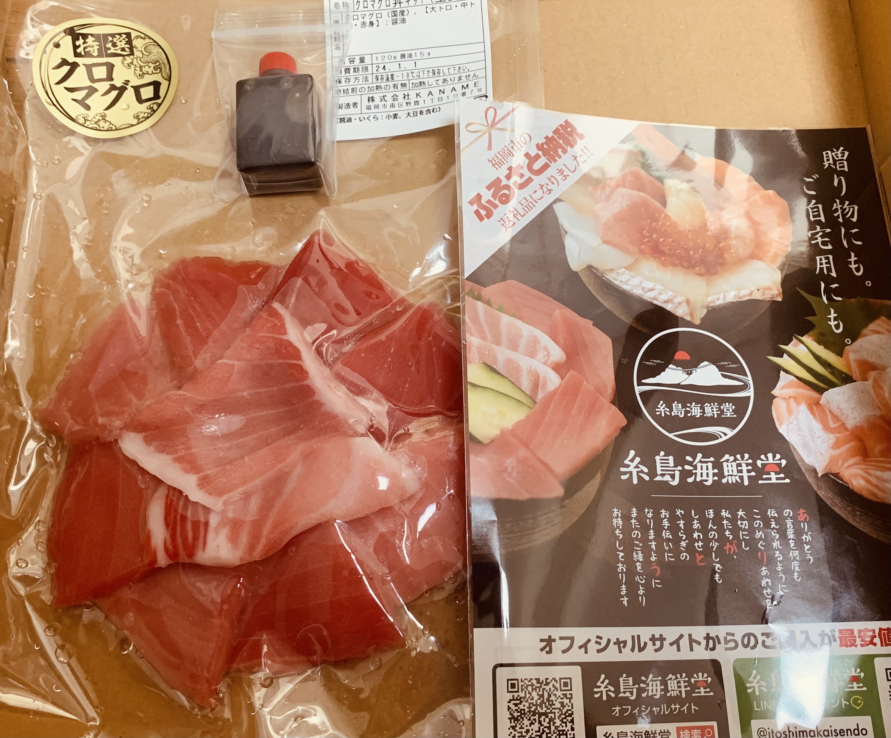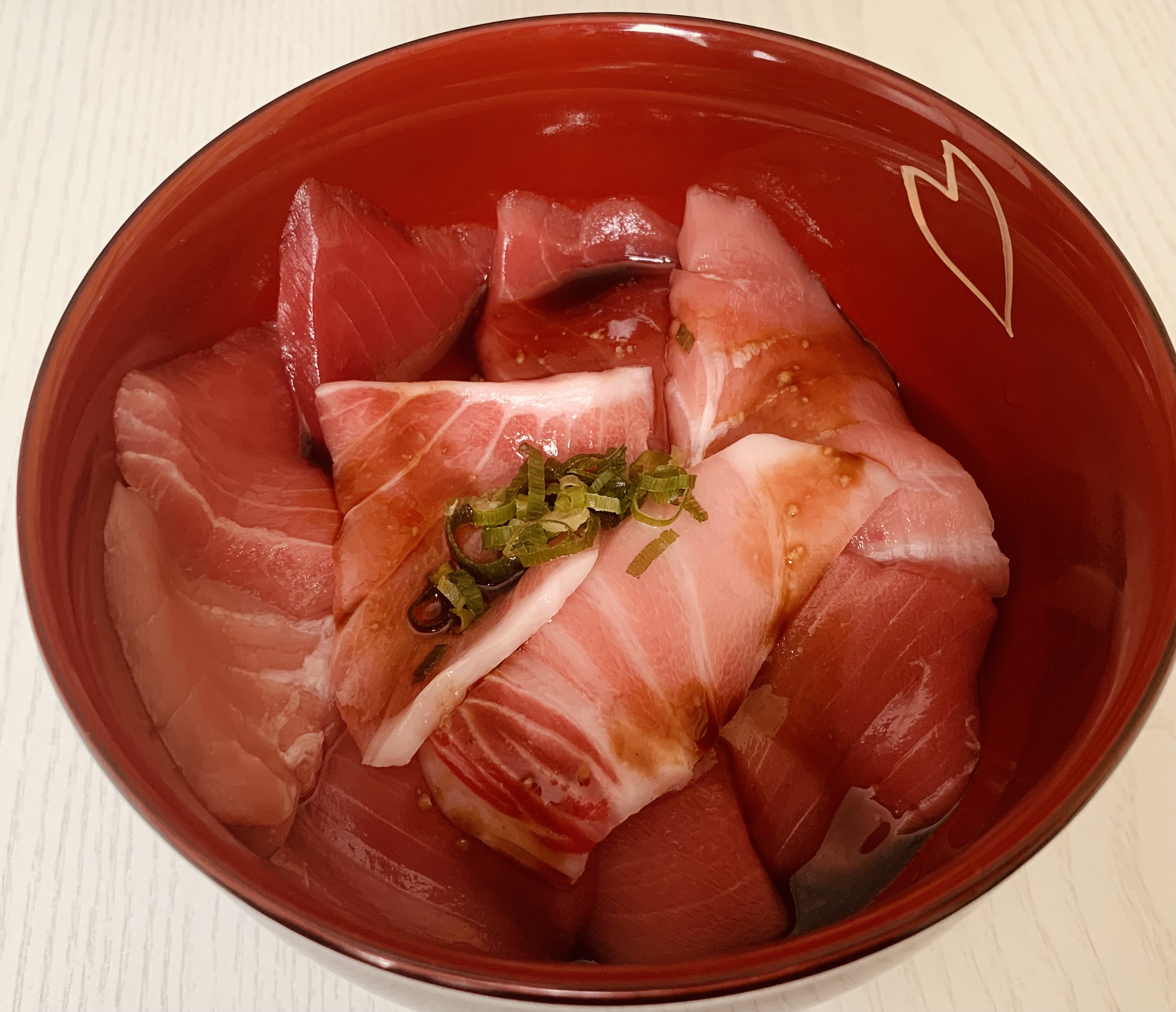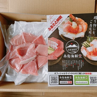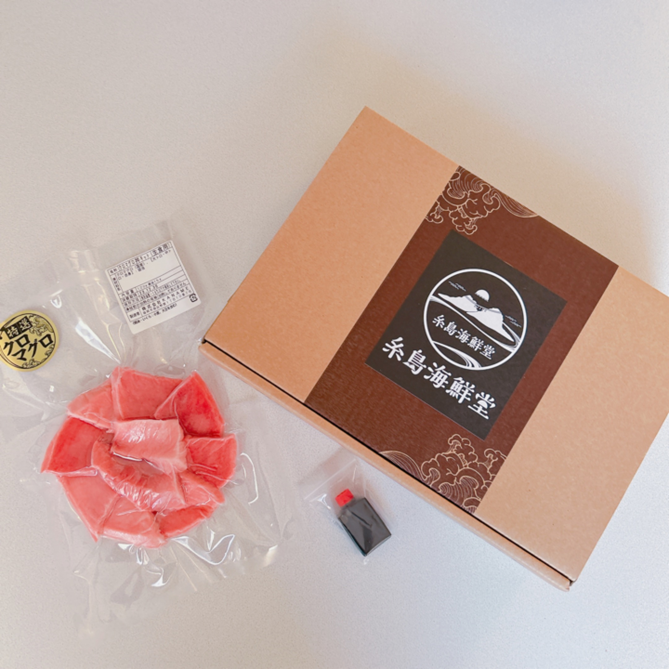 赤身、中トロ、大トロの食べ比べをこの丼の中で楽しめます。臭みのないしっとりとしたとっても美味しいクロマグロ。お店で食べるようなまあまあなお値段ですが、この味をおうちで簡単に食べられるのが嬉しいです。ちょっと甘めの醤油も添付されています。事前に見ていたお写真よりも一切れの厚さが薄いなと感じましたが、それでも大満足な一品でした。