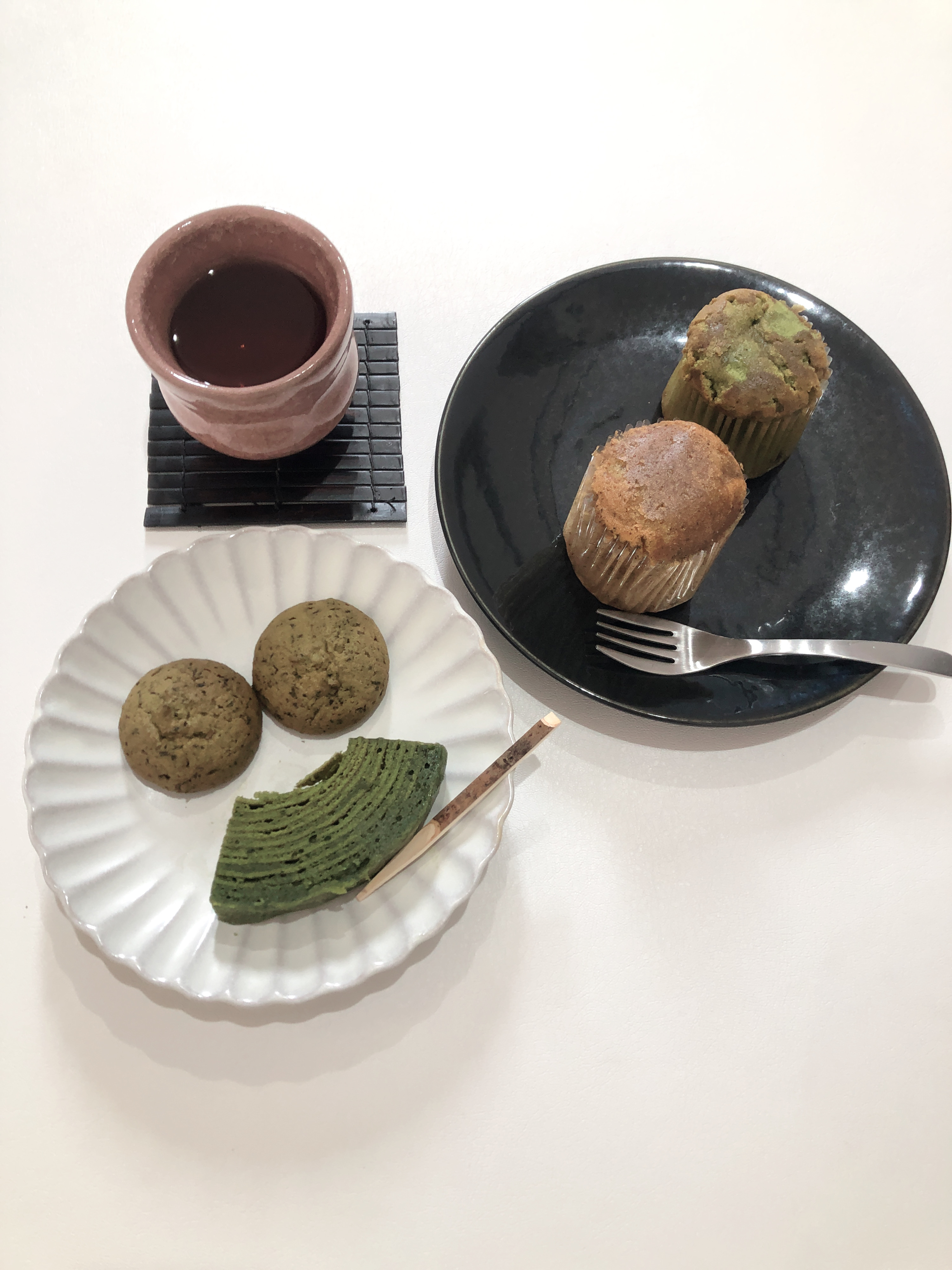 茶葉クッキー、抹茶バウムクーヘン、カップケーキ、お茶請けとして、それぞれの風味をぜひお楽しみください。