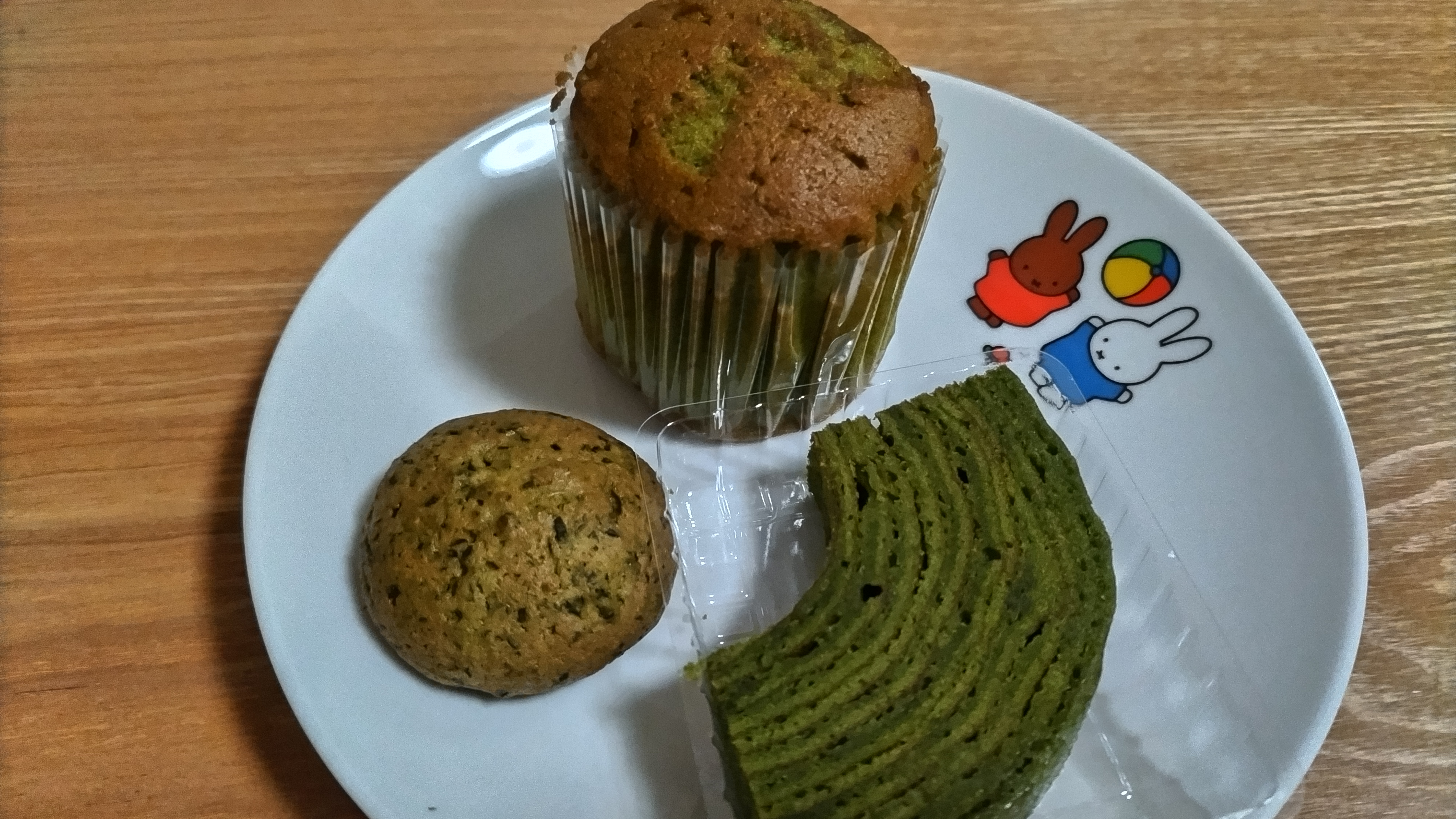 バウムクーヘンは今まで見たことのないくらい濃い緑色をしており、見るからにお茶がたっぷりと使用されているのが分かります。見た目通り濃厚な抹茶の味わいと香りがたまらない美味しさでした。