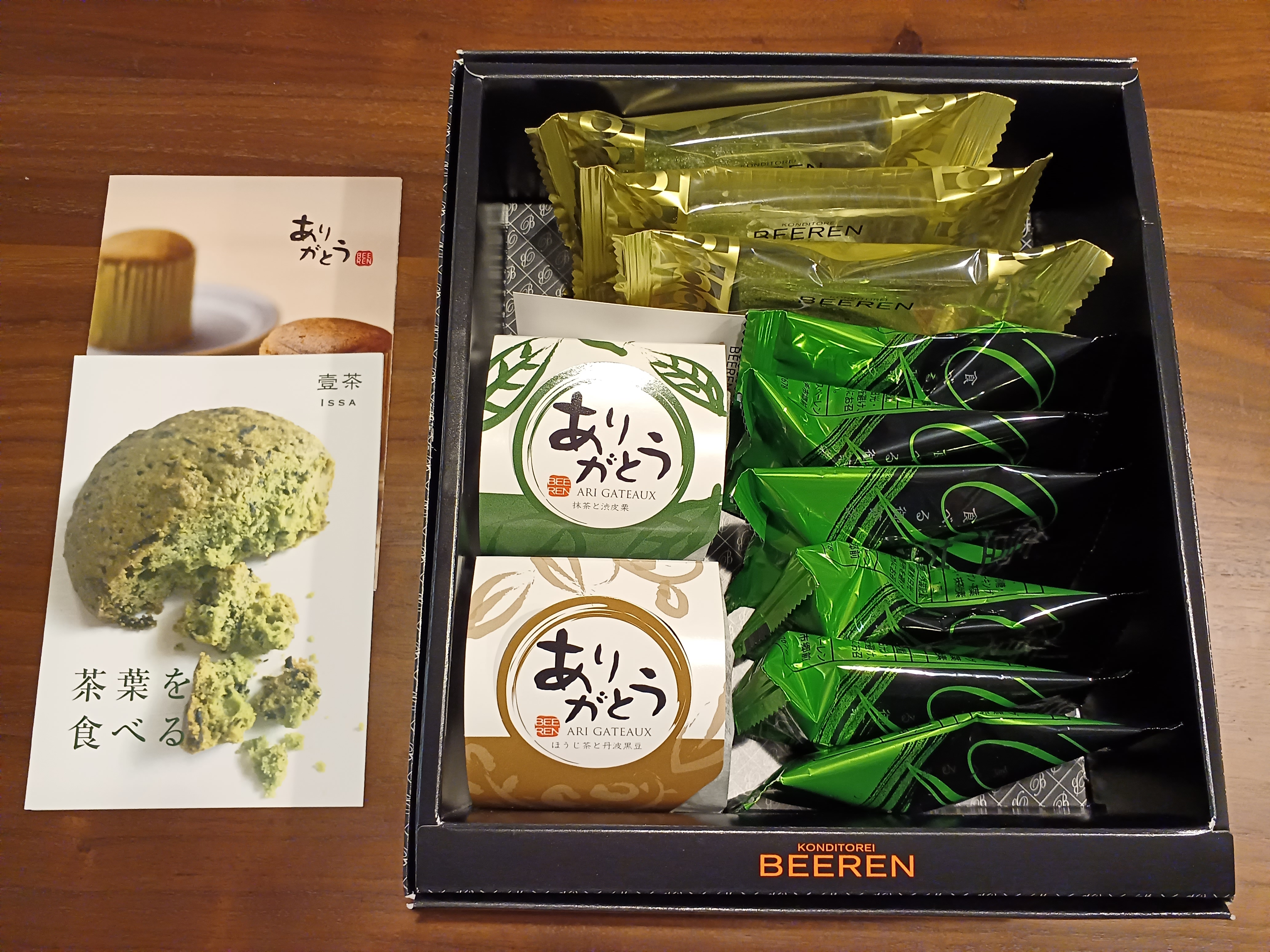 ありがとうほうじ茶とありがとう抹茶は、ふんわりとしたカップケーキです。香りはよくある紅茶のカップケーキのような強い風味ではなく、自然で優しい感じです。丹波黒豆は甘く柔らかでカップケーキの口当たりとよく馴染んでいます。渋皮栗は想像よりも大きくて贅沢感がありました。