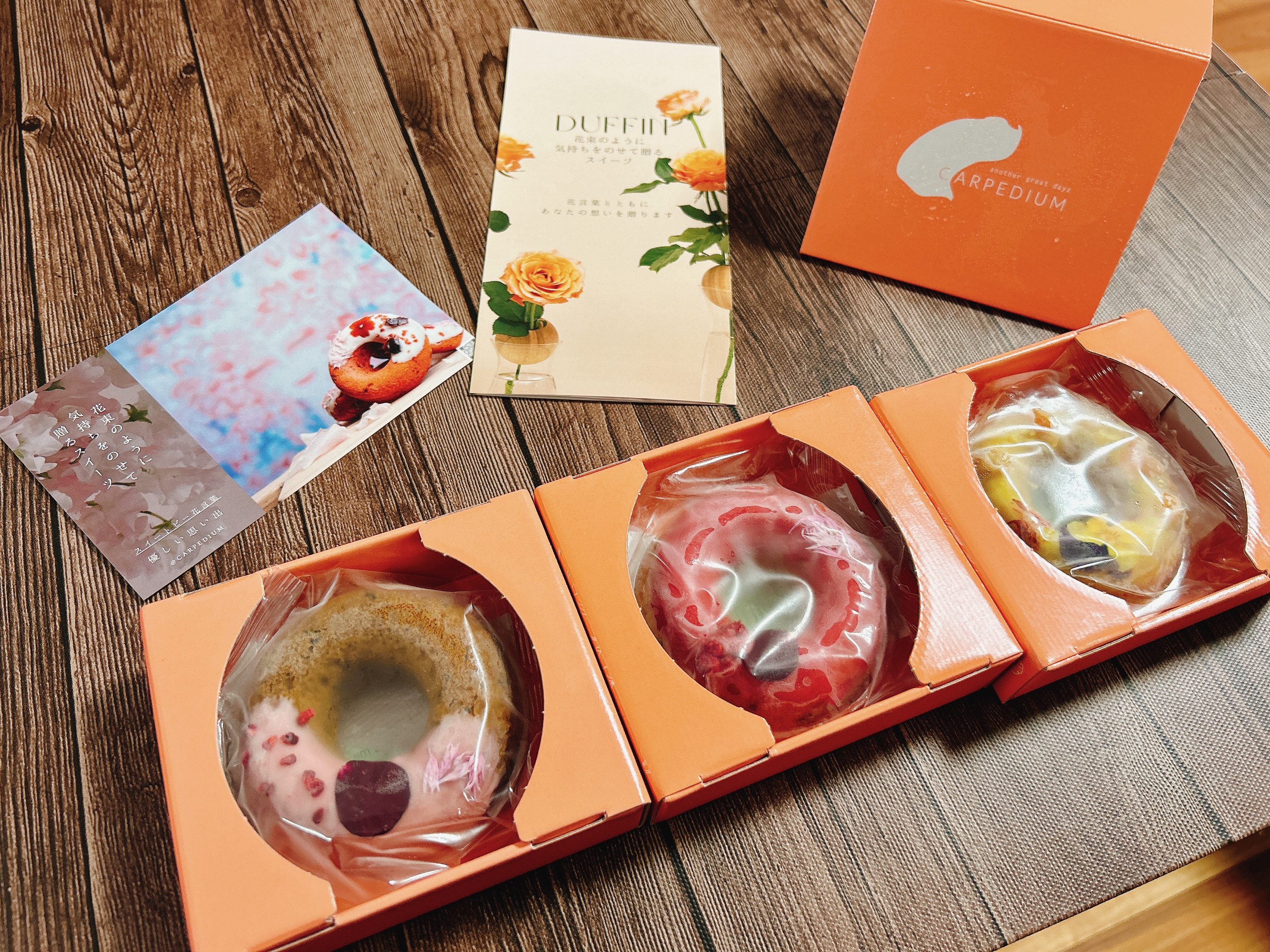 ダフィンには「食べられるお花」を使い、花言葉にちなんだ商品名を付けています。