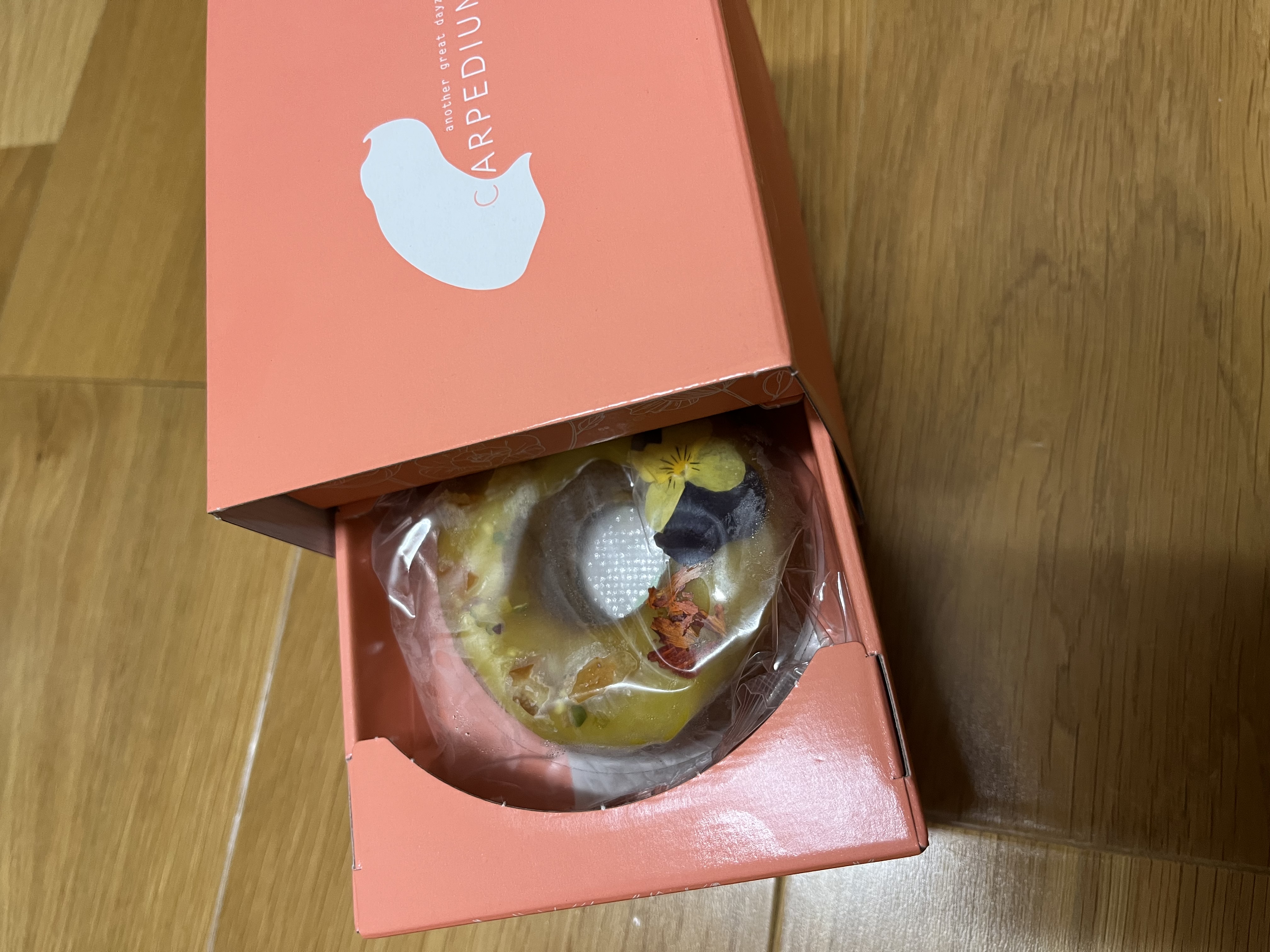 メープル&オレンジ味の『ありのままの美しさ』は、イエロー系にまとまった中にビオラの紫色が映えていて、とってもエネルギッシュできらびやかです。香ばしい生地に濃厚な甘さのソースと、ピスタチオやオレンジピールのトロピカルな風味がよく合って、満足感が高いです。