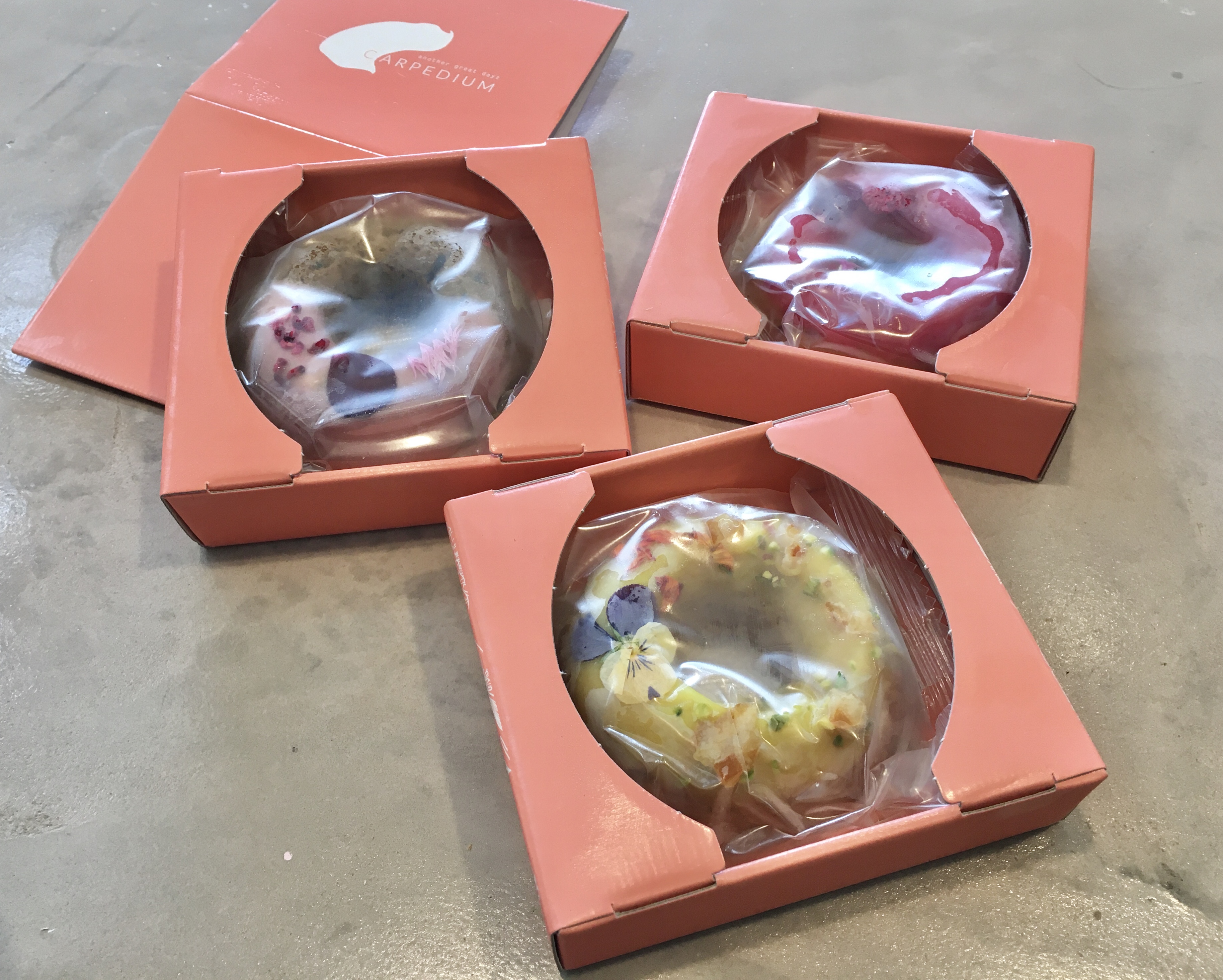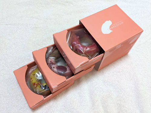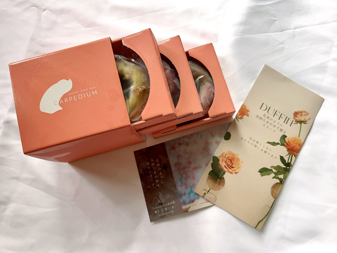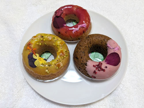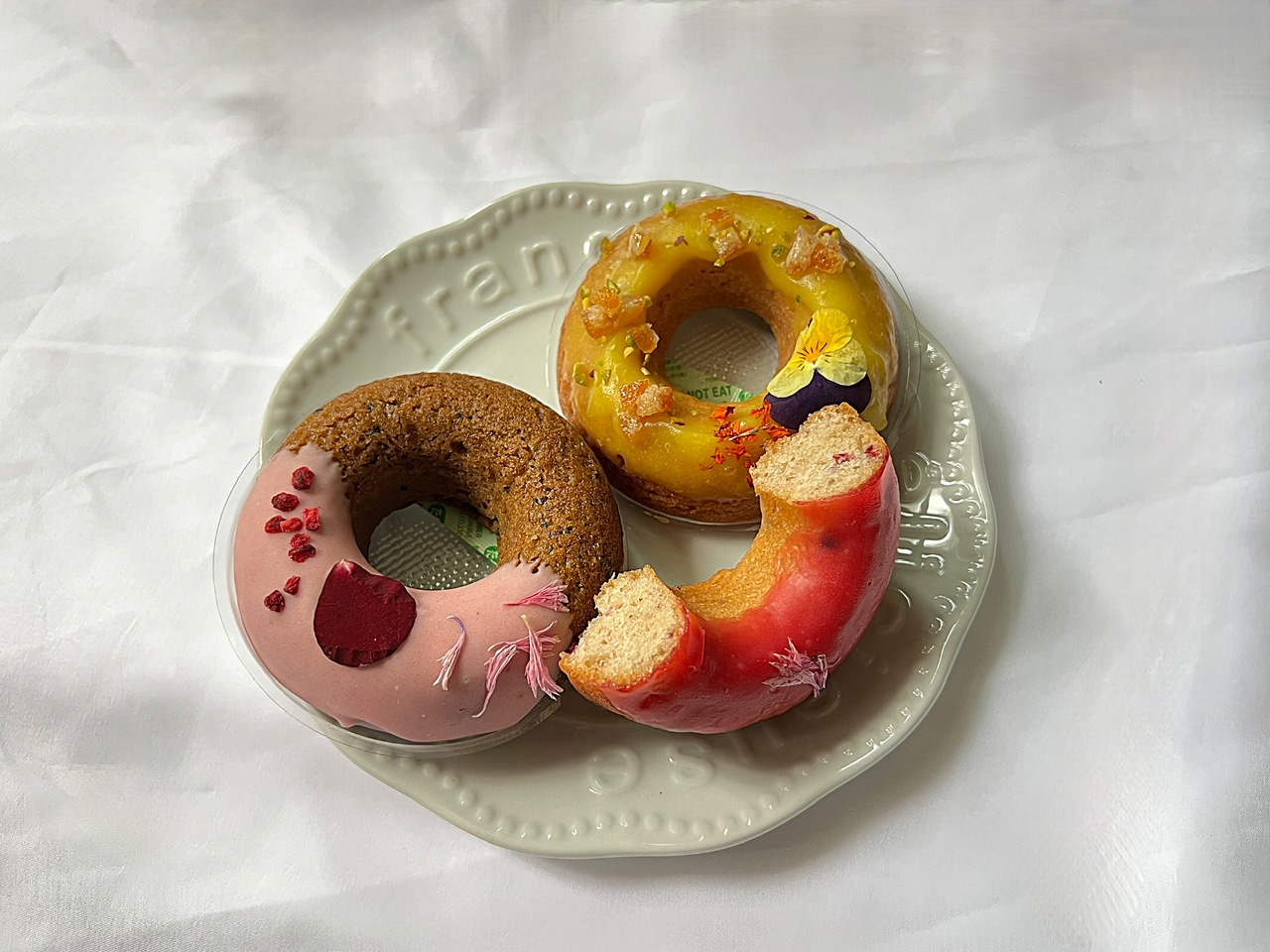 ドーナツ+マフィンのハイブリッドスイーツ「ダフィン」です。一般的な焼きドーナツとは異なり、たまごを使用せず、マフィンの混ぜ方・焼き方を取り入れています。独自の生地で焼き上げているので、外はサクサク、中はしっとり食感が特長。シーンに合わせたフレーバで、優雅な美 「洋酒&ラズベリー味」、ありのままの美しさ「メープル&オレンジ味」、柔らかな心「アールグレイ&ローズ味」の3種セット。エディブルフラワーをあしらい、見た目も華やかなので手土産スイーツとしてもおすすめです。