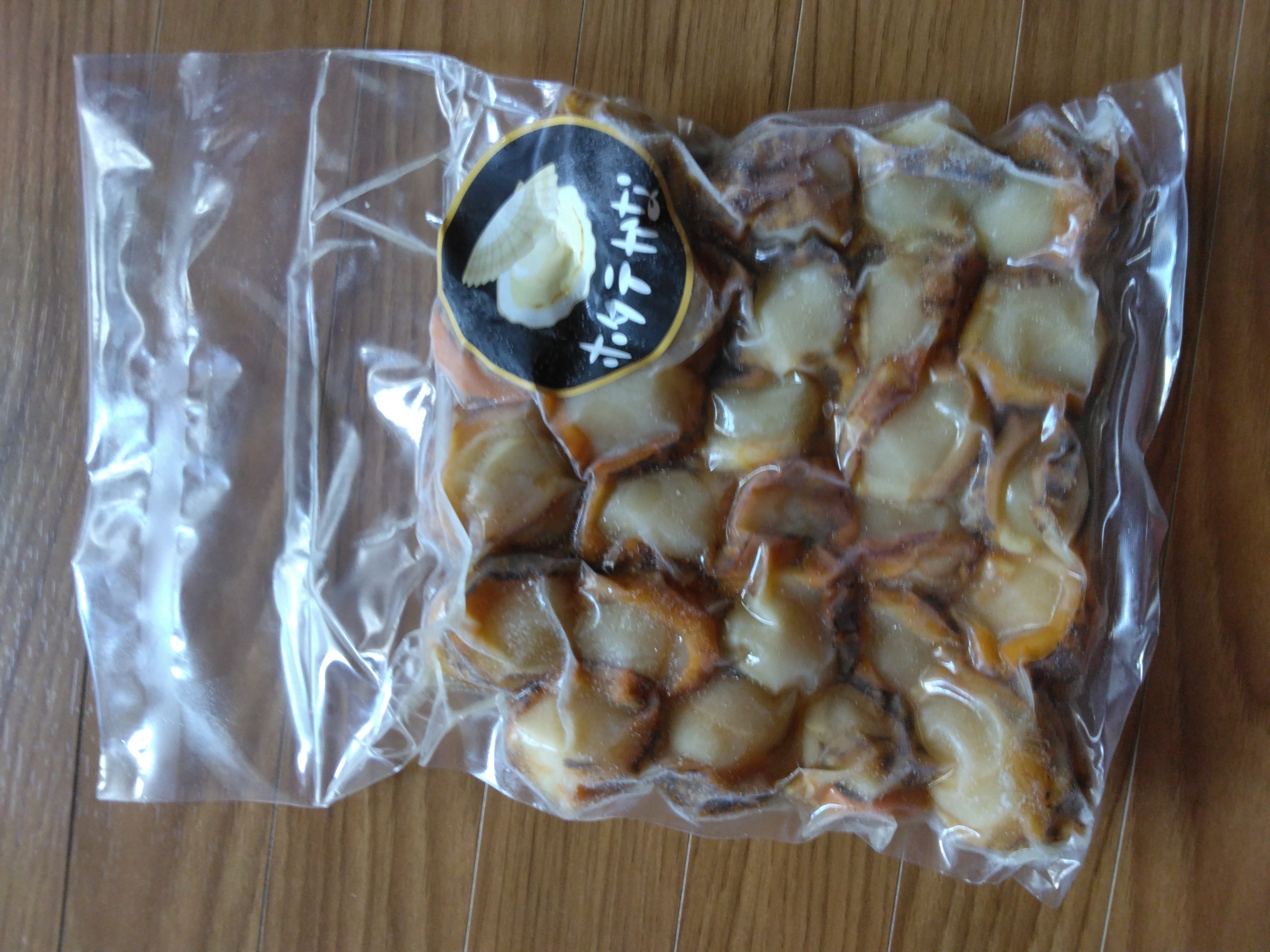 加熱済みなのでボイルされたホタテの要領で、シンプルに醤油をつけていただきます。