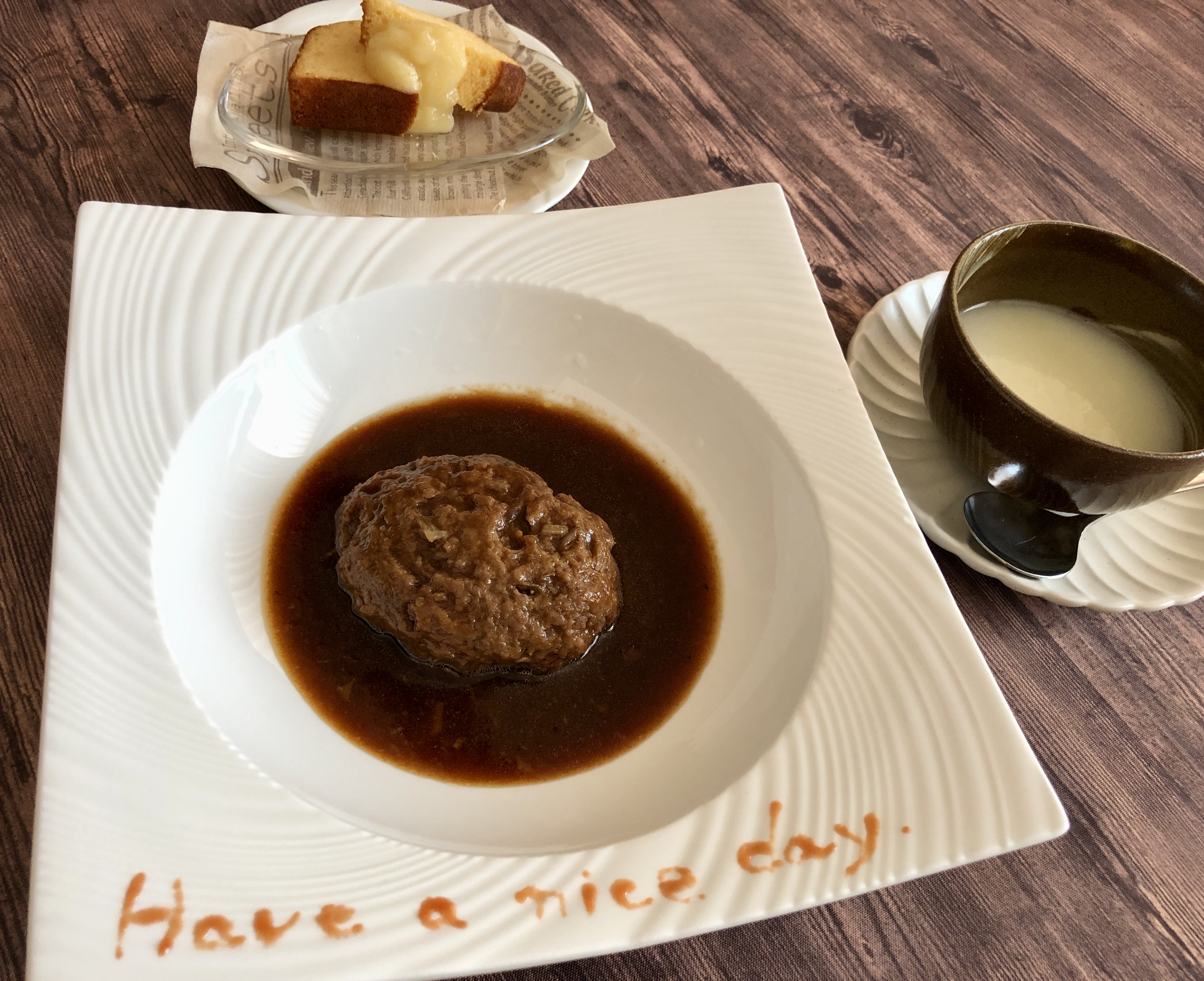 ハンバーグがとびっきりな美味しさなのは勿論、旨みがたっぷり溶け込んだ煮込みソースも絶品!!パンともご飯とも相性が良い味わいでどんどん進んじゃいます♪