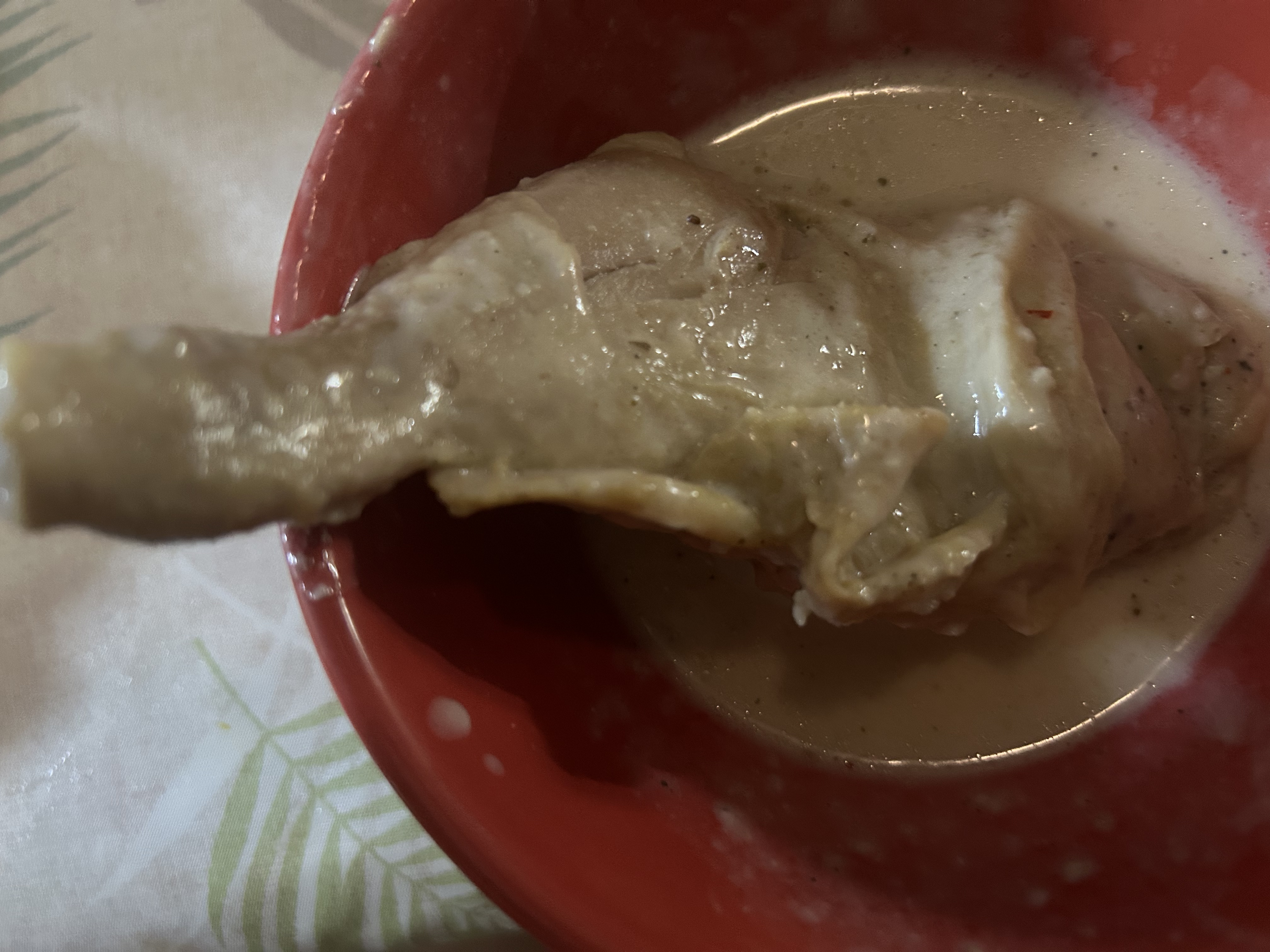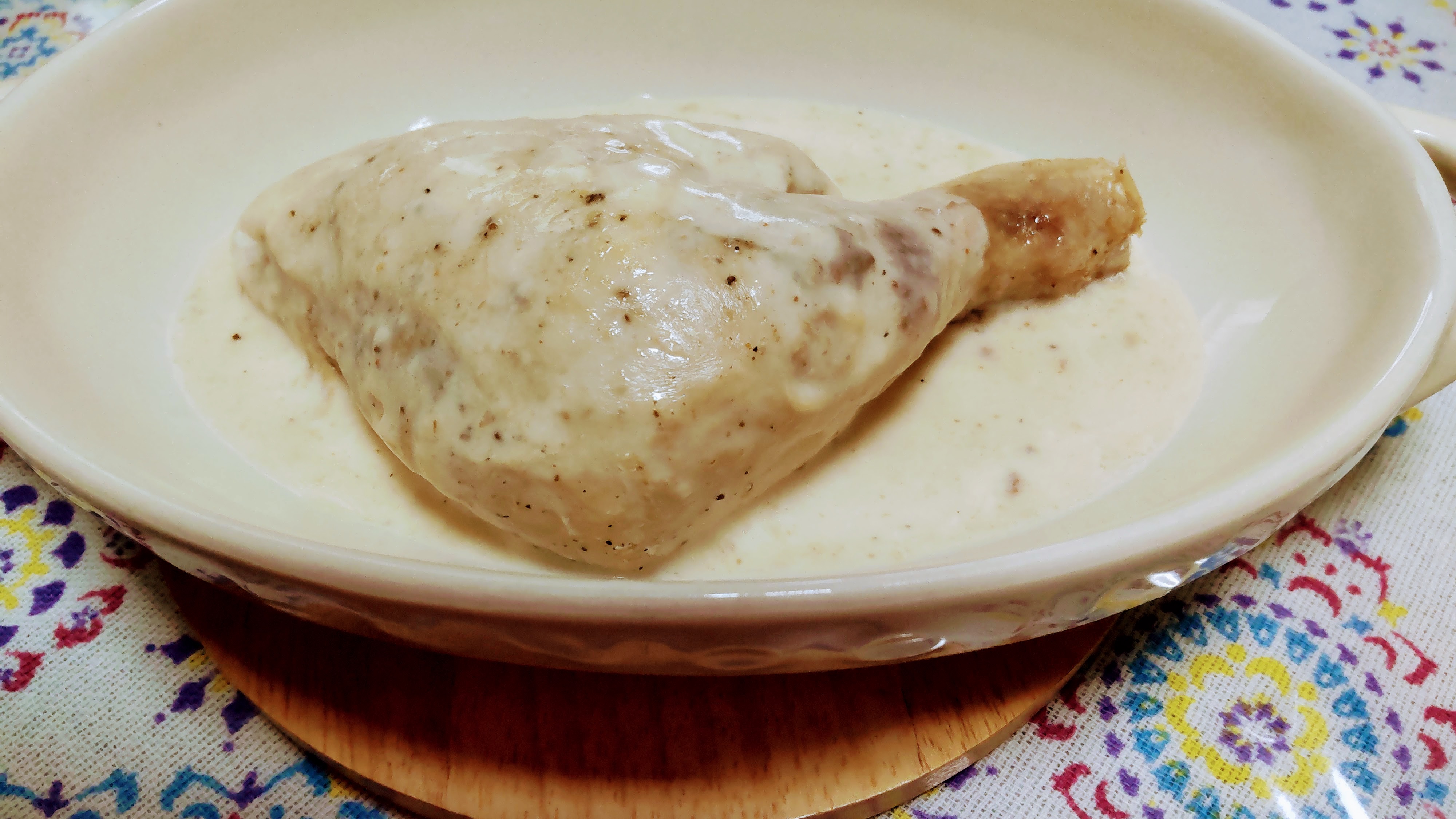◎骨付き鶏モモのフリカッセボルチーニ茸風味
