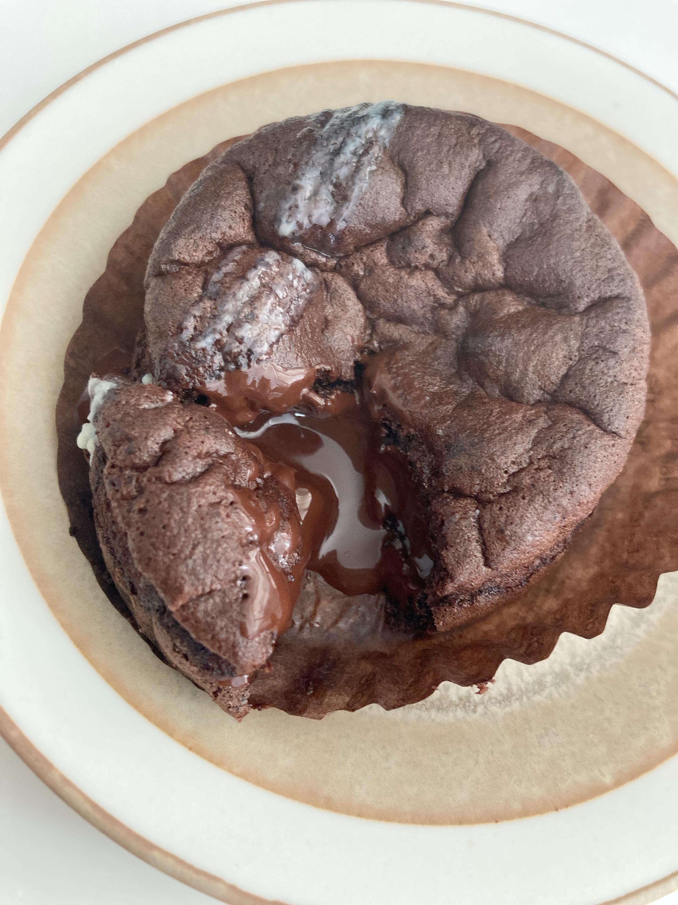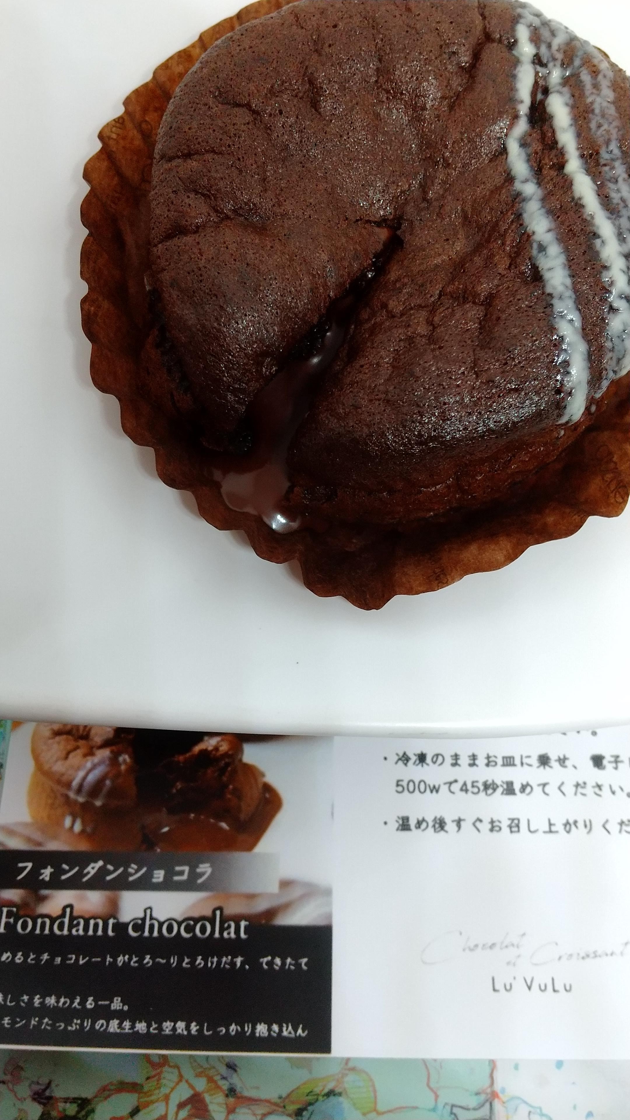 凍ったまま温めるとチョコの良い香りがして、中から甘味と香ばしい苦味の濃厚チョコレートが溶け出します。チョコレートは、たっぷりで、最後まで味わえます。