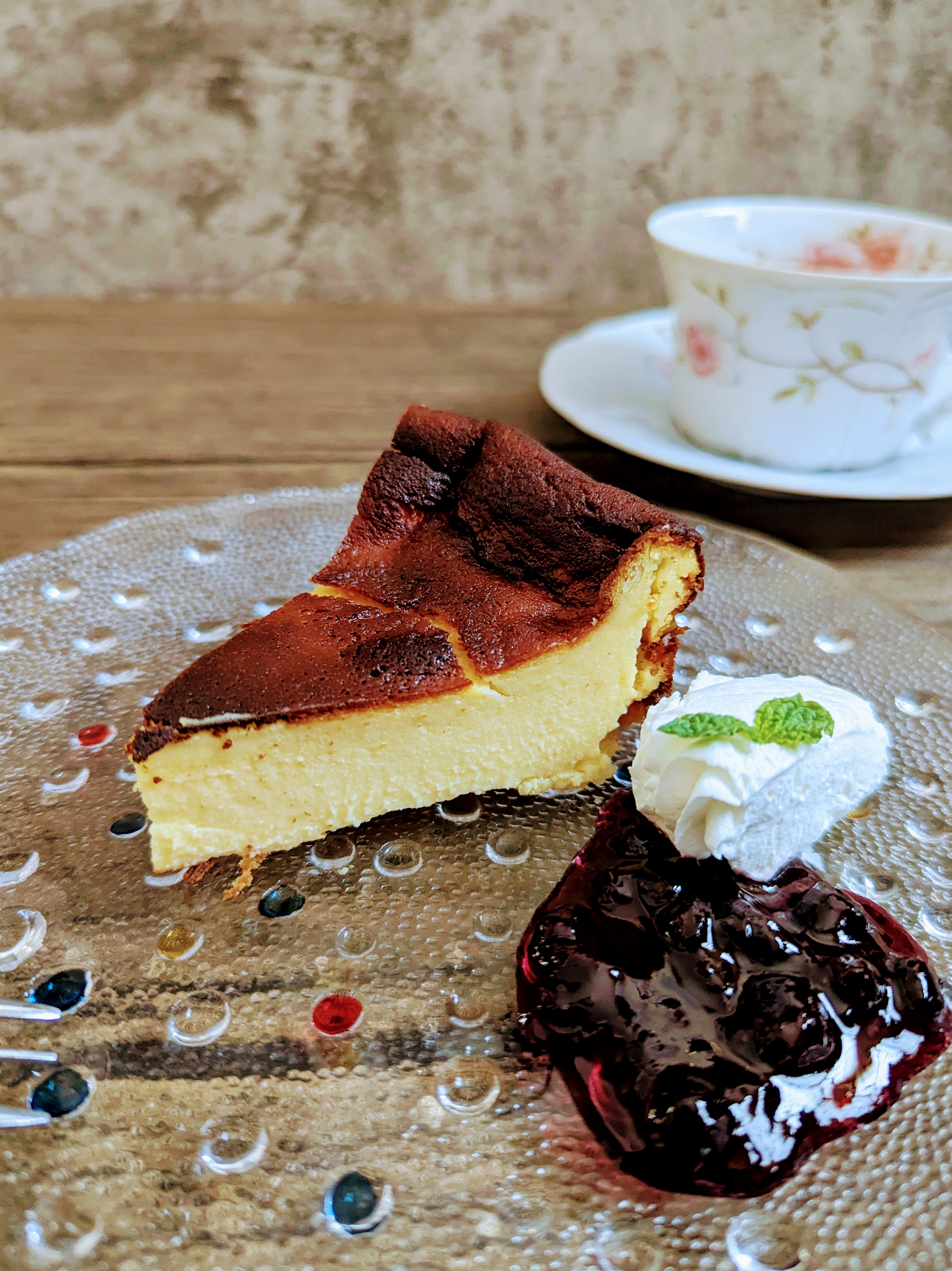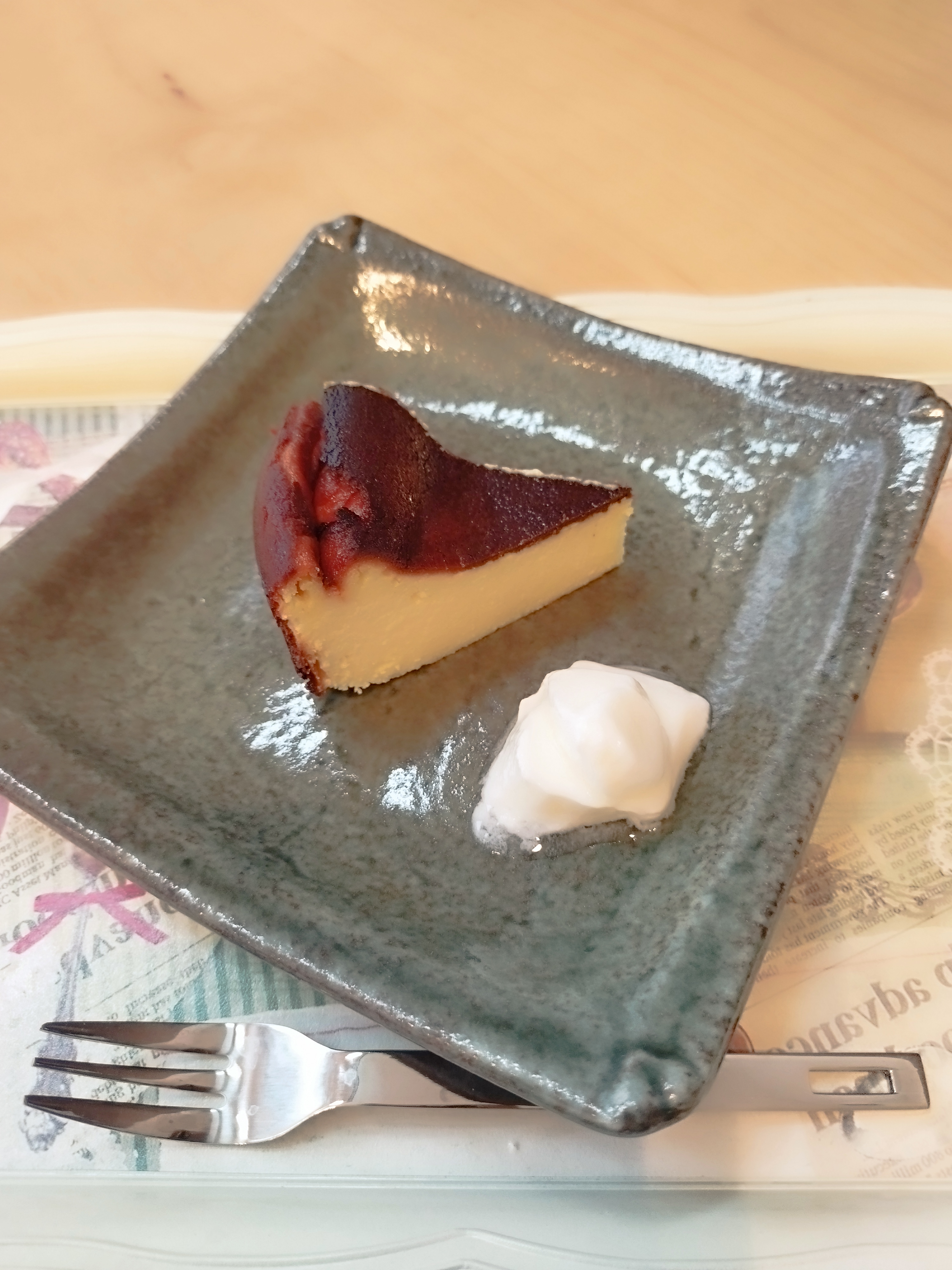 あと一つ、お塩のトッピングもいいという事で、岩塩を少々かけて食べて見ましたが、かけることによりバスクの甘さを引き立て美味しくなる感じで