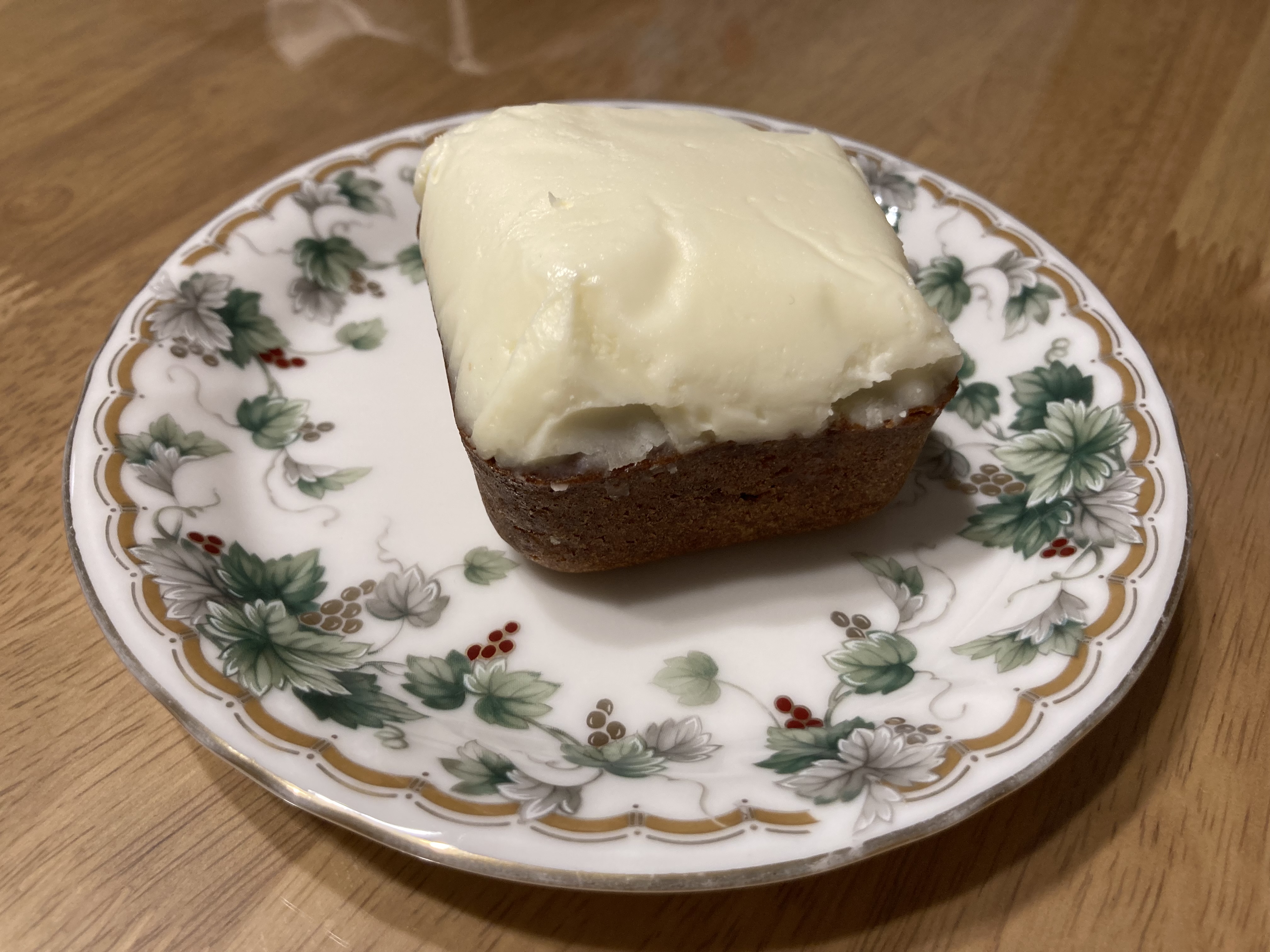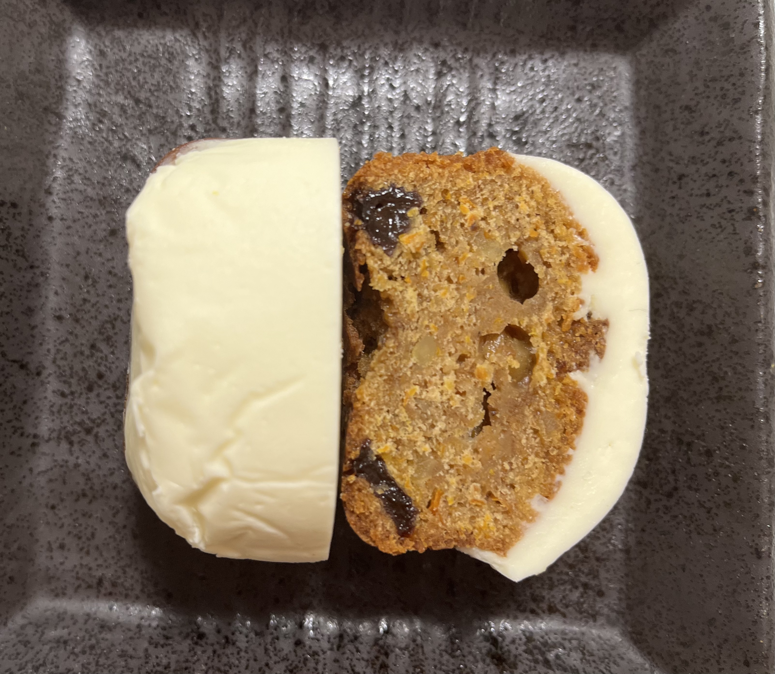 こちらのキャロットケーキは口に入れたときにスパイスの香りが口の中に広がり、大人向けなのかなと感じました。