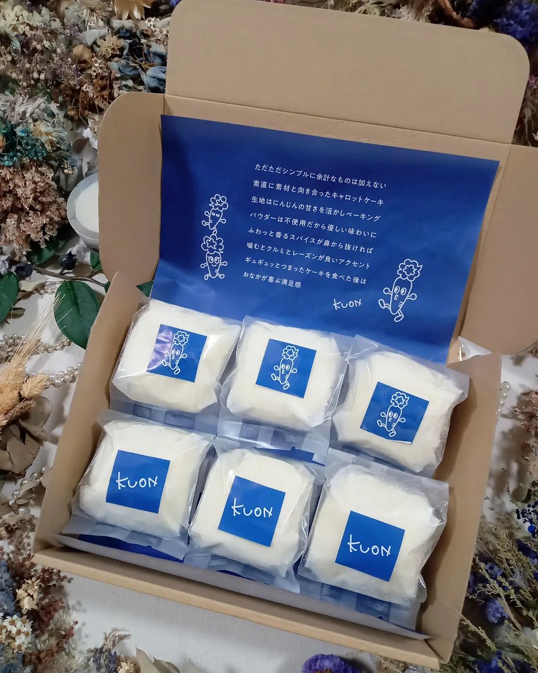 国産の人参をたっぷり使用した「キャロットケーキ」です。「キャロットケーキ」は、その名の通り、生地に粗く刻んだにんじんを混ぜ込み、にんじんの甘みを活かしたケーキです。胡桃やレーズンもたっぷり使用されていて、袋を開けた瞬間、スパイスがふわっと香ります。無添加なので安心安全でありながら食感も香りも楽しめる商品。ケーキに冠せたチーズフロスティングはバターのコクも感じられます。焼き上げた表面と、しっとりとした中の食感の違いも楽しめます。珈琲、紅茶はもちろんのこと、ギュッと詰まった食感なので肉料理や赤ワインとも相性抜群です。